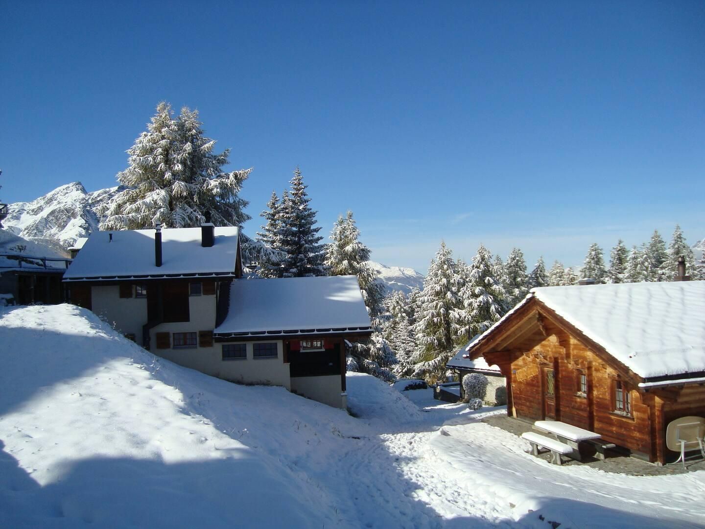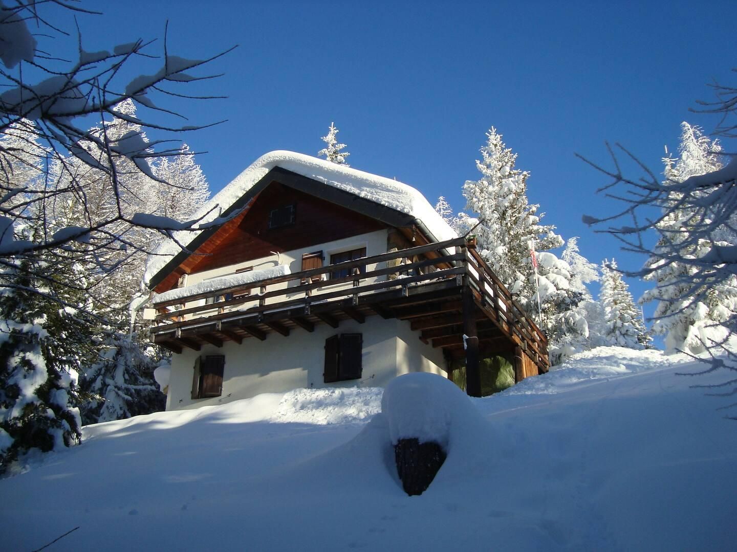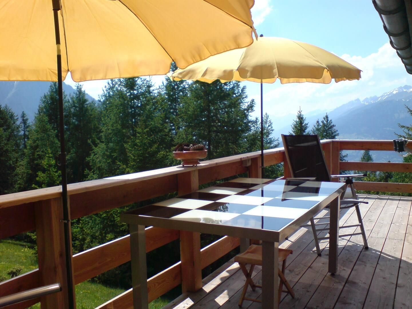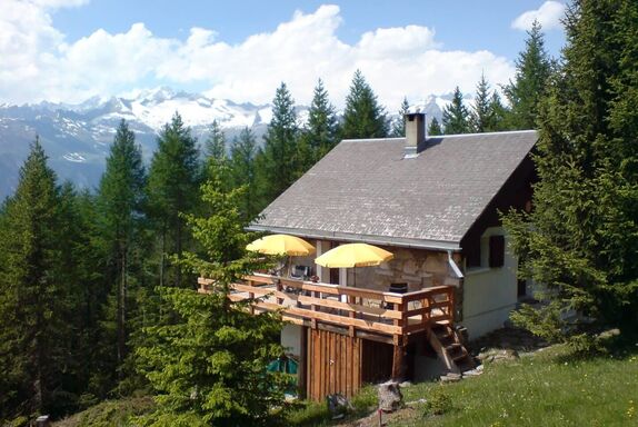 Durch seine einzigartige Lage am Rande des Waldes, umgeben von Lärche und Kiefer und mit herrlichem Blick auf das Rhonetal und die Walliser Alpen, bietet das Chalet Bergfriede eine ruhige Atmosphäre und viel Privatsphäre. Das Ferienhaus liegt in einer Waldzone direkt am Wanderweg – ideal für Naturliebhaber und Ruhesuchende. Auf der sonnigen Südseite laden ein großer Balkon sowie eine Terrasse mit Gartenmöbeln zu erholsamen Stunden in der Sonne ein.