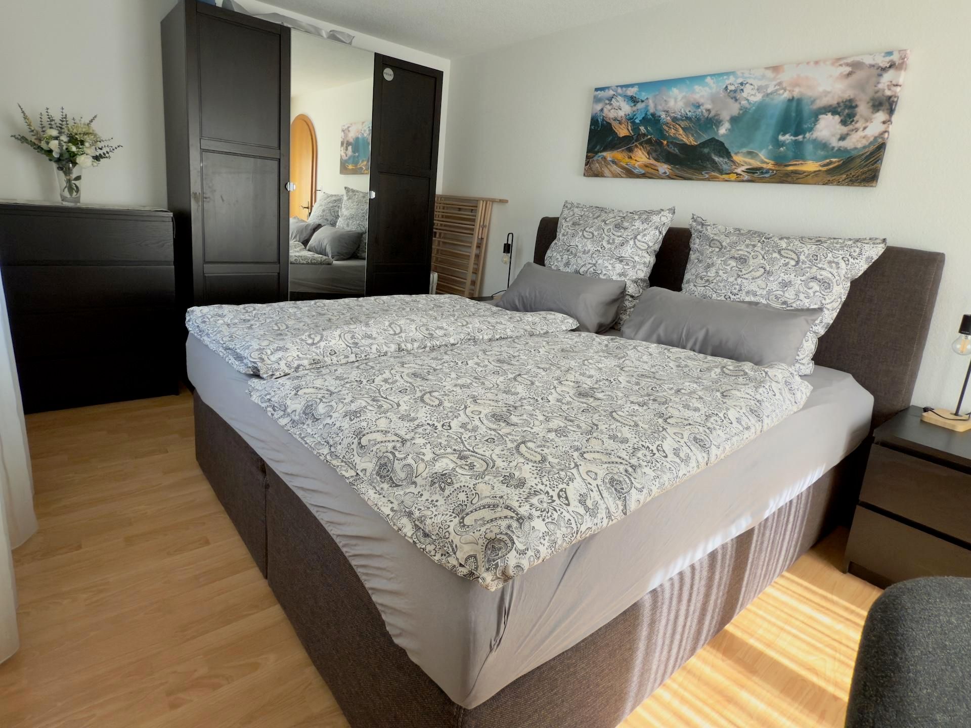 Die Ferienwohnung Cadras 14 ist eine 80m2 grosse 3.5-Zimmerwohnung im 1. Obergeschoss eines Mehrfamilienhauses. 1 Schlafzimmer mit einem Doppel-Boxspringbett (180cmx200cm) und 1 Baby/Kleinkinderbett (100cmx140cm), 1 Schlafzimmer mit einem Doppel-Boxspringbett (180cmx200cm), 1 Schlafcouch (Breite 140-160cm) im Wohnzimmer. Belegung für 5 Erwachsene und ein Kleinkind. Offene Küche mit Backofen, Kühlschrank, Induktionskochfeld, Geschirrspülmaschine, Mikrowelle und Kaffeemaschine (Nespresso). Wasserkocher, Toaster, Pürierstab, Sodastream-Sprudler. Racletteofen und Fondue Caquelon. Badewanne mit Duscharmatur und WC. Smart-TV, Blu-Ray/DVD Player, WLAN, Radio und Cheminée. Haustiere nicht erlaubt. Nichtraucherwohnung. Bettwäsche, Frottéewäsche und Küchentücher vorhanden. Balkon. Waschmaschine und Wäschetrockner, sowie Skiraum zur Mitbenutzung im Haus. Garagenstellplatz Nr.14, abstellen von Fahrrädern ebenfalls möglich, Garageneinfahrt Höhe 180cm.