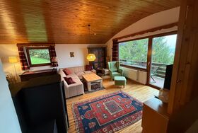 Die 100 m² große Unterkunft erstreckt sich über Erd- und Obergeschoss und bietet Platz für bis zu 6 Personen. Sie verfügt über ein Schlafzimmer mit Doppelbett, ein Schlafzimmer mit zwei Einzelbetten sowie ein Wohnzimmer mit ausziehbarer Couch und integriertem Essbereich. Große Panoramafenster bieten direkten Zugang zum Balkon mit Bergblick. Eine separate Küche mit Induktionsherd, ein Badezimmer, ein großer Garten und eine schöne Terrasse runden das Angebot ab.