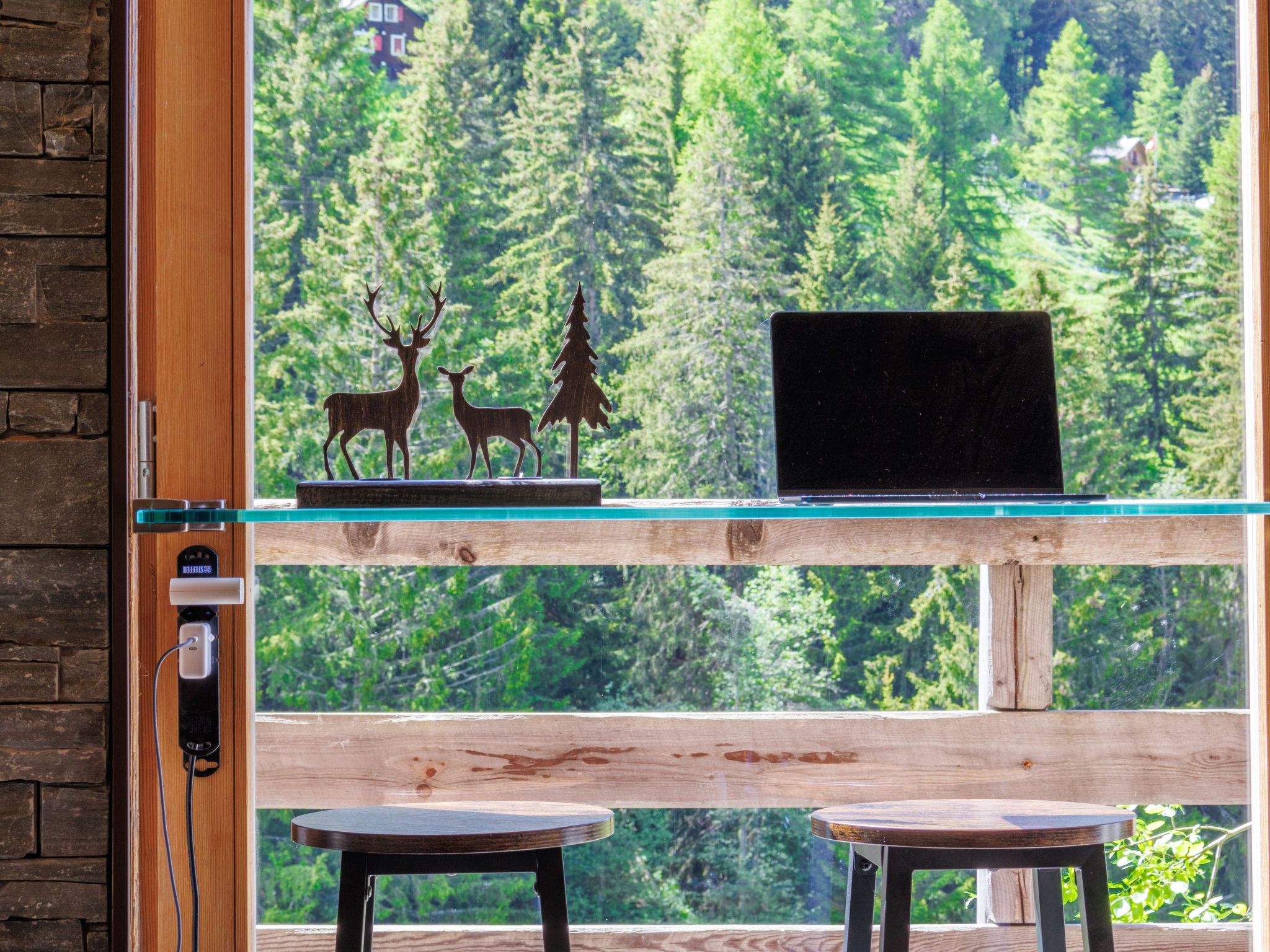 Chalet Gaea, 5-Zimmer-Chalet 140 m2 auf 3 Stockwerken, Nordostlage. Objekt geeignet für 6 Erwachsene + 3 Kinder. Teilweise abgeschrägt, sehr komfortabel und schön eingerichtet: Eingang. Wohn-/Esszimmer mit Schwedenofen und Heimkino. Ausgang zur Terrasse. Offene Küche (Backofen, Geschirrspüler, 4 Induktionskochplatten, Toaster, Wasserkocher, Mikrowelle, Tiefkühler, elektrische Kaffeemaschine, Kapseln für die Kaffeemaschine (Nespresso) extra, Racletteofen, Fondue Set (Käse)). Bad/Dusche/WC. Unteres Geschoss: 1 Zimmer mit 1 franz. Bett (180 cm, Länge 200 cm), Bad/Dusche/WC. Obergeschoss: 1 Zimmer mit 1 Bett (90 cm, Länge 200 cm), 1 franz. Bett (160 cm, Länge 200 cm). (Leiter) abgeschrägte, offene kleine Galerie, Deckenhöhe 120 - 145 cm mit 1 Bett (90 cm, Länge 200 cm). 1 Zimmer, ohne Schrank mit 1 Doppeldiwanbett (140 cm, Länge 200 cm). Dachgeschoss: (Leiter) abgeschrägte, offene Galerie, Deckenhöhe 48 - 135 cm mit 1 Bett (90 cm, Länge 200 cm). Grosse Terrasse. Terrassenmöbel, Gartengrill, Liegestühle. Sehr schöne Sicht auf die Berge. Zur Verfügung: Waschmaschine, Wäschetrockner, Haartrockner. Internet (WLAN, gratis). Parkplatz (3 Autos). Bitte beachten: nicht geeignet für Kinder unter 8 Jahren. Nichtraucher-Unterkunft. Anstelle eines abgeschlossenen Schlafzimmers befinden sich manche Schlafplätze in einem offenen Bereich (Galerie, Nische etc.).