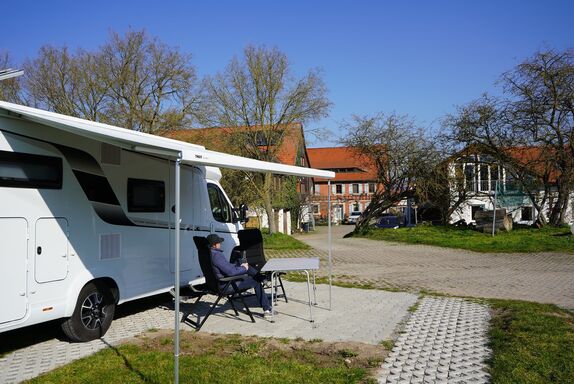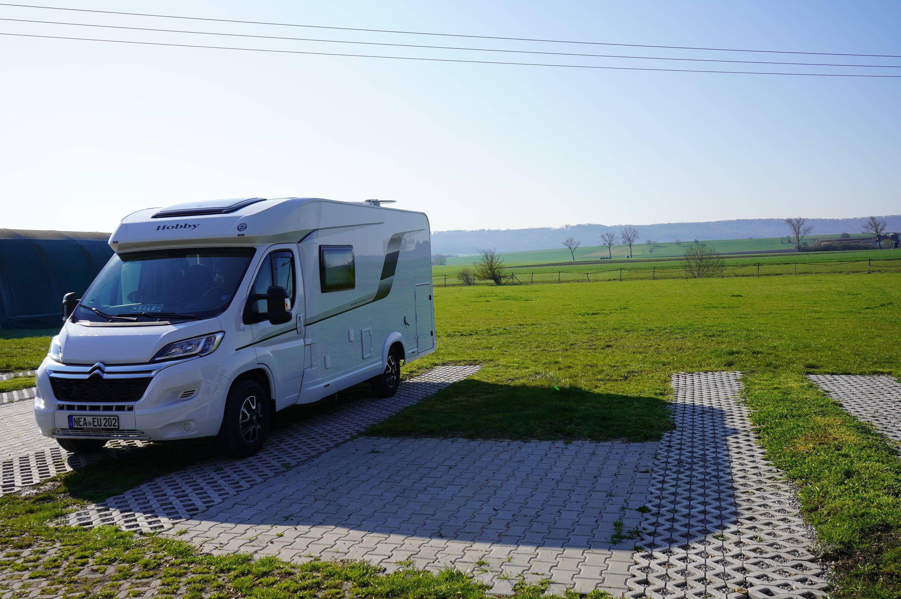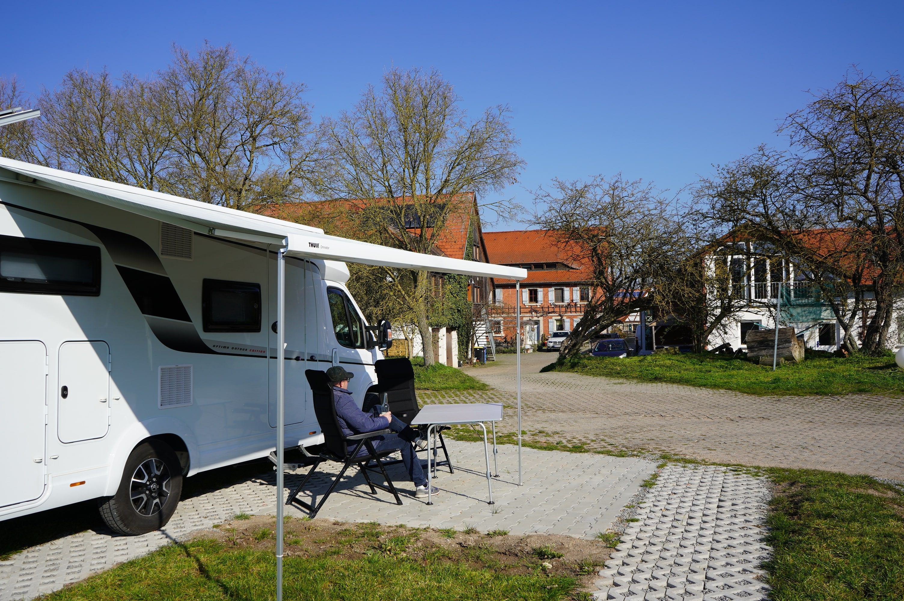 Unsere 3 Wohnmobilstellplätze befinden sich auf der Wiese hinter dem Hof. Der Untergrund ist befestigt und ein Stromanschluss ist vorhanden. Sie können gerne die öffentlichen WC`s am Hof benutzen.