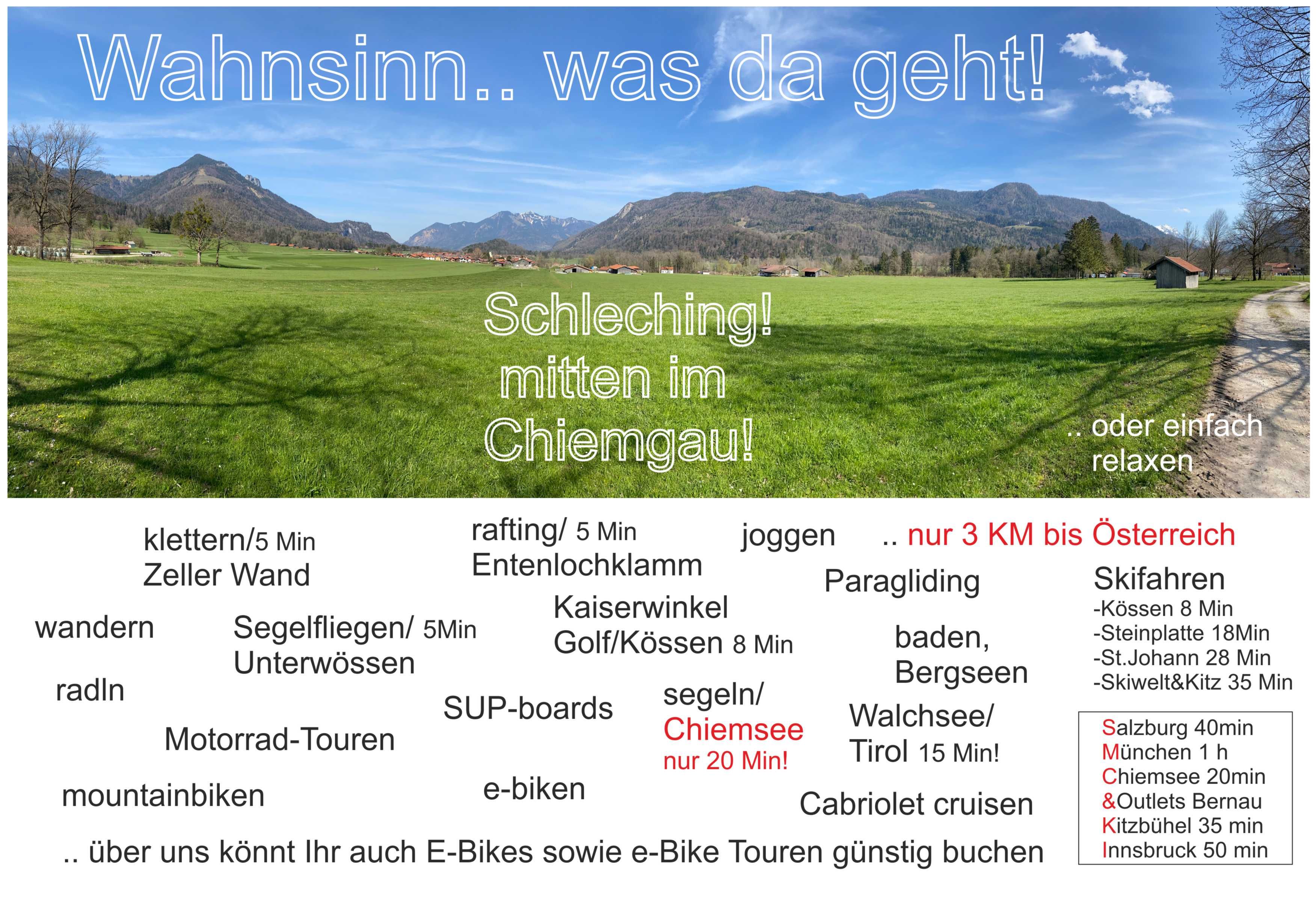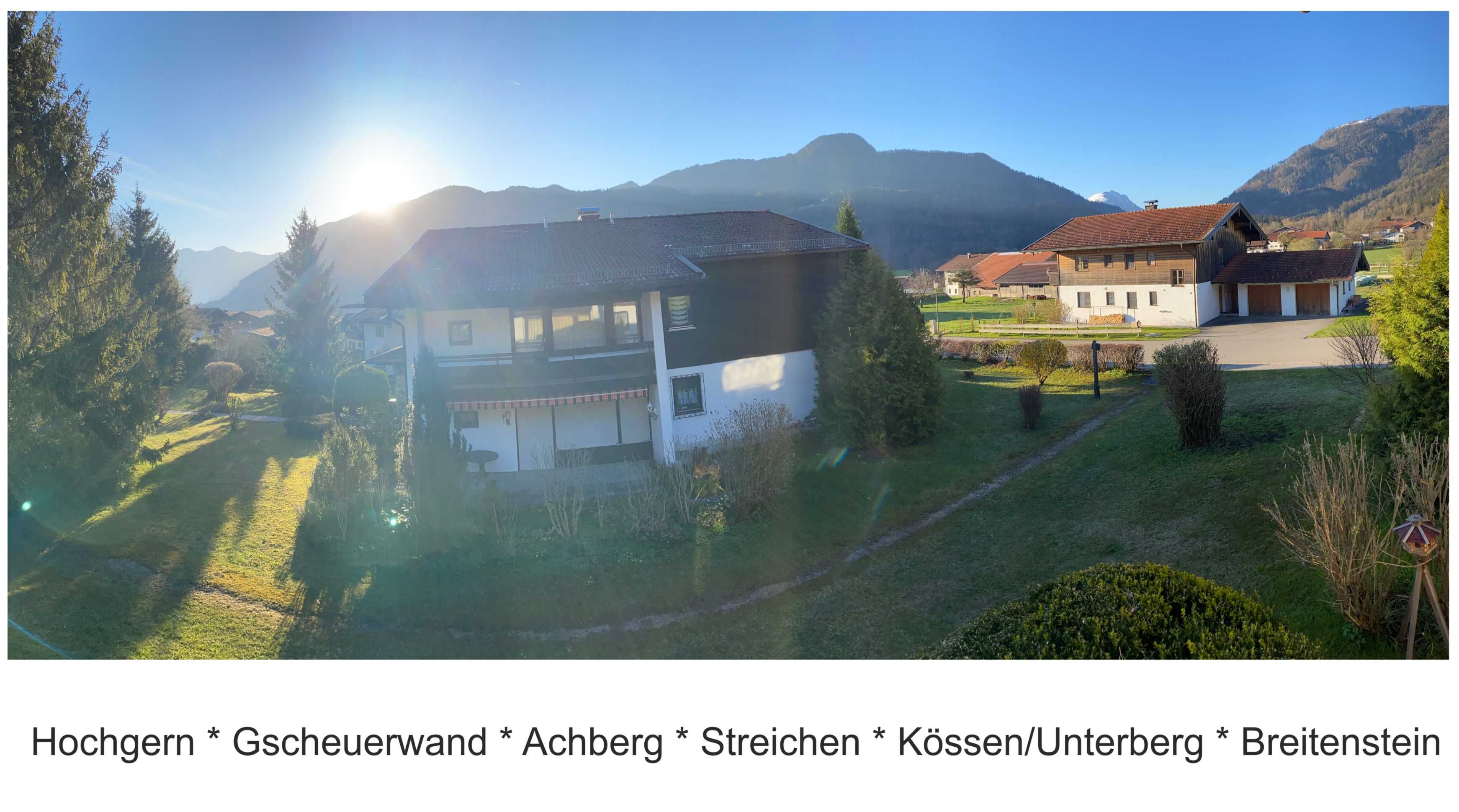 Neuwertige Ferienwohnungen mit Traumaussicht ins Achental, moderne, geschmackvolle Einrichtungen, attraktive Bäder, hochwertige Elektro-Ausstattung mit TV/DVD/Hifi für Wohn und Schlafzimmer (1 Kind). Geräumige Balkone mit Streichenblick. Entspannen Sie bei absoluter Ruhe und geniessen Sie zahlreiche Freizeitaktivitäten in der Natur direkt vor der Haustür.