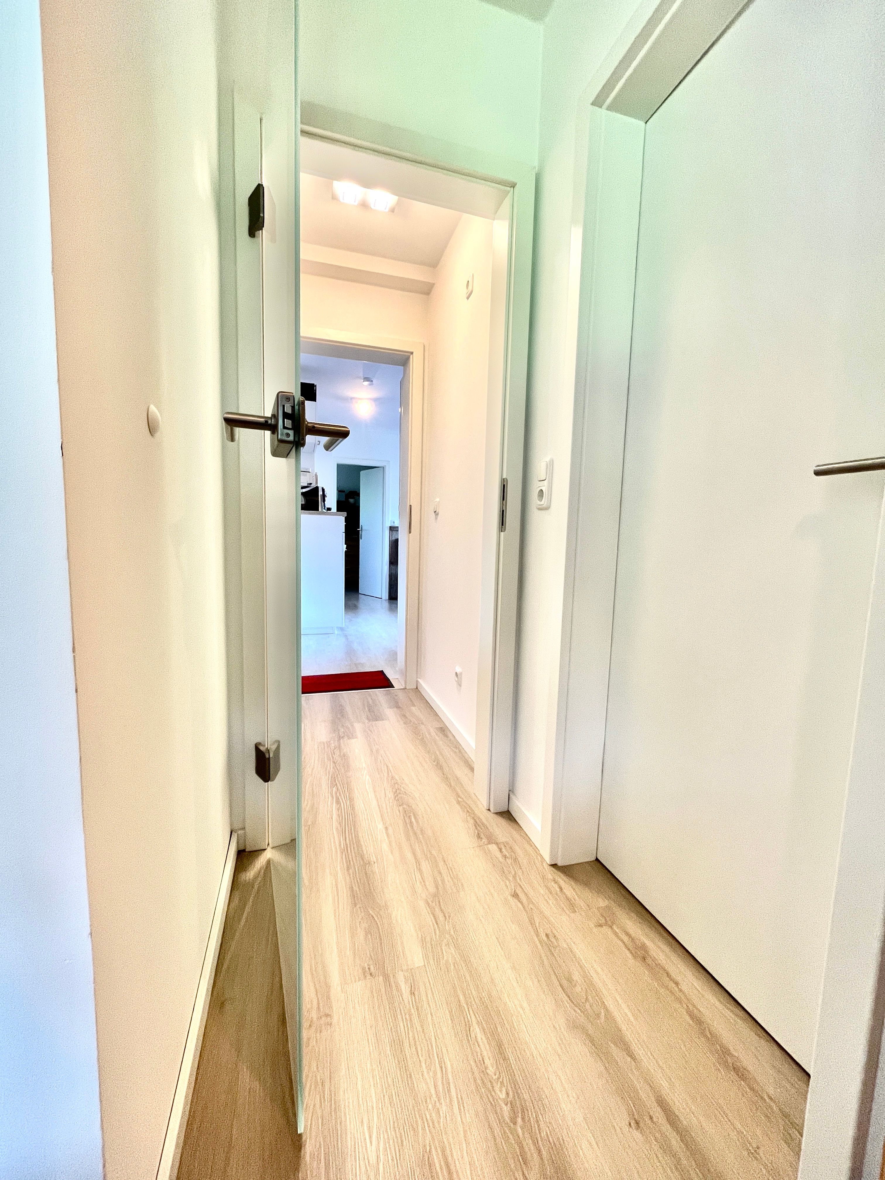 Diese ideale Kombination ist für 2 Familien oder eine Familie mit mehr Raumbedarf sehr gut kombinierbar. Die Zwischentür mit kleinem Flur ist schallgeschützt, so hat jede Wohnung Ruhe und Entspannung.