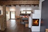 Die moderne Küchenzeile lässt auch bei Profi-Köchen keine Wünsche offen. Neben einem Induktions-Kochfeld gibt es einen Backofen, einen Kühl- und Gefrierschrank sowie allerhand Elektrogeräte. Der große Esstisch mit Eckbank am Ofen bietet allen Gästen ausreichend Platz. Aus dem Wohnbereich gelangt man auf die möblierte Terrasse, welche einen traumhaften Ausblick auf die umliegende Bergwelt bietet.