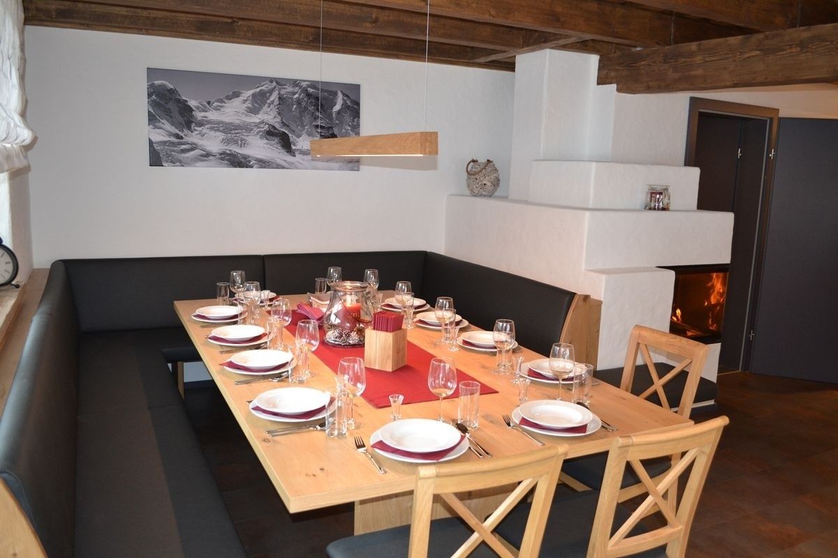 großer Esstisch mit Ofenbank