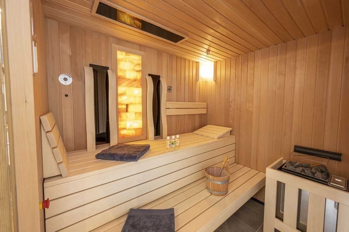 Nach einem erlebnisreichen Urlaubstag finden die Gäste im Wellnessbadezimmer die nötige Erholung. Aus der Sauna bietet sich ebenfalls ein toller Blick auf die Berge Österreichs. Eine bodentiefe Dusche und eine große Eck-Badewanne sind ebenfalls vorhanden.