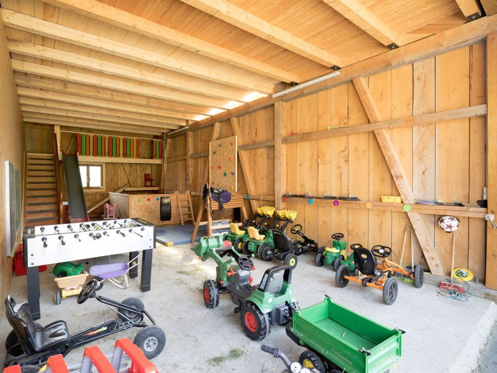 Während Sie sich erholen und die Ruhe genießen, können ihre Kinder Tischtennis, Tischfußball oder auf dem Spielplatz und in der Spielscheune spielen, Riesentrampolin hüpfen, Katzen streicheln, Hasen, Meerschweinchen, Minischweine und Ziegen füttern und abends bei der Stallrunde unsere Mutterkühe mit Kälbchen versorgen. In unserem Schwimmteich können sie sich nach einer anstrengenden Wanderung erfrischen und entspannen. Oder Sie lassen die Seele in unserem Wellnessbereich mitfinnischer Sauna, Infrarot-Wärmekabine,Fußbad und Ruhebereich baumeln.
