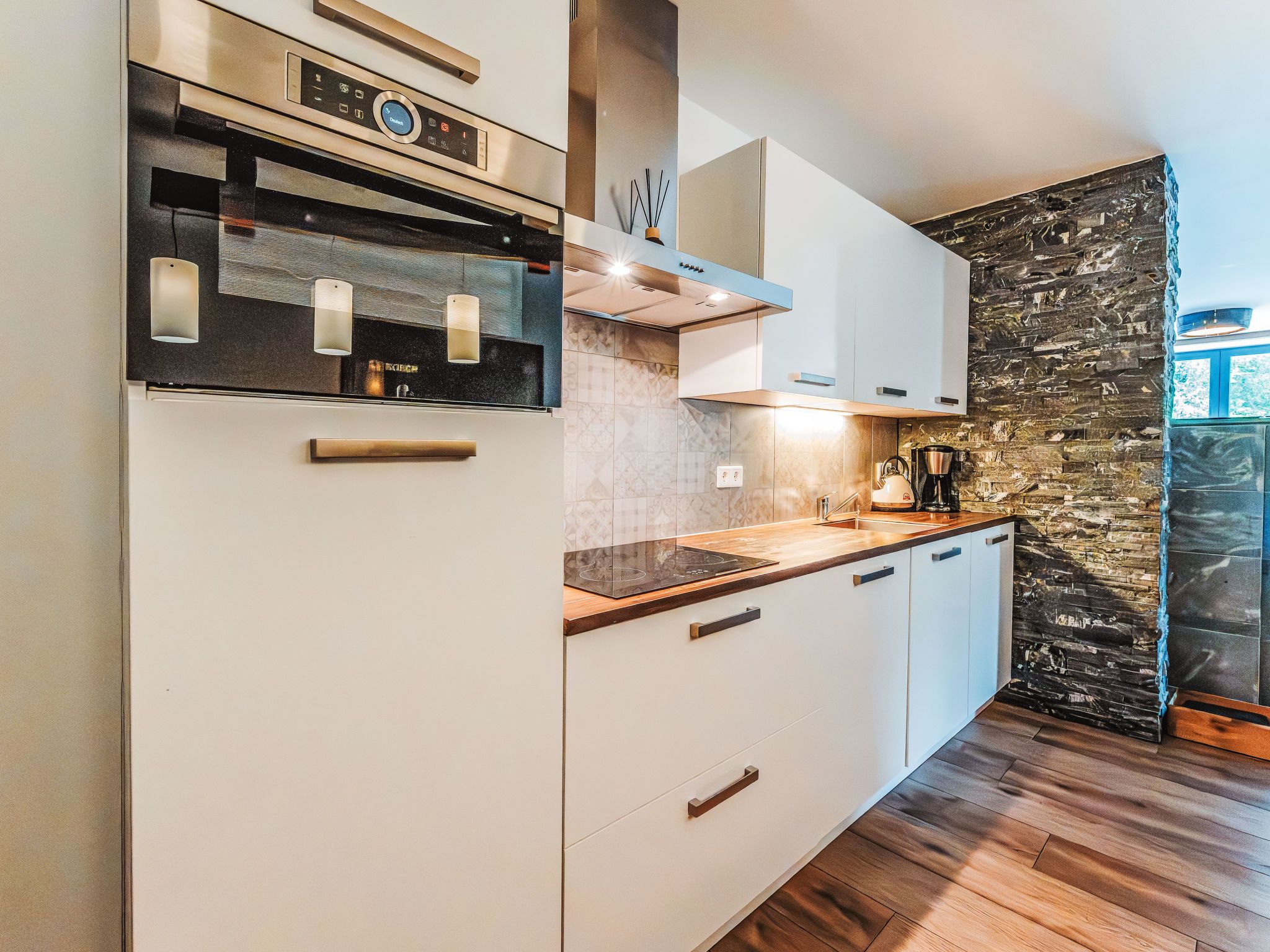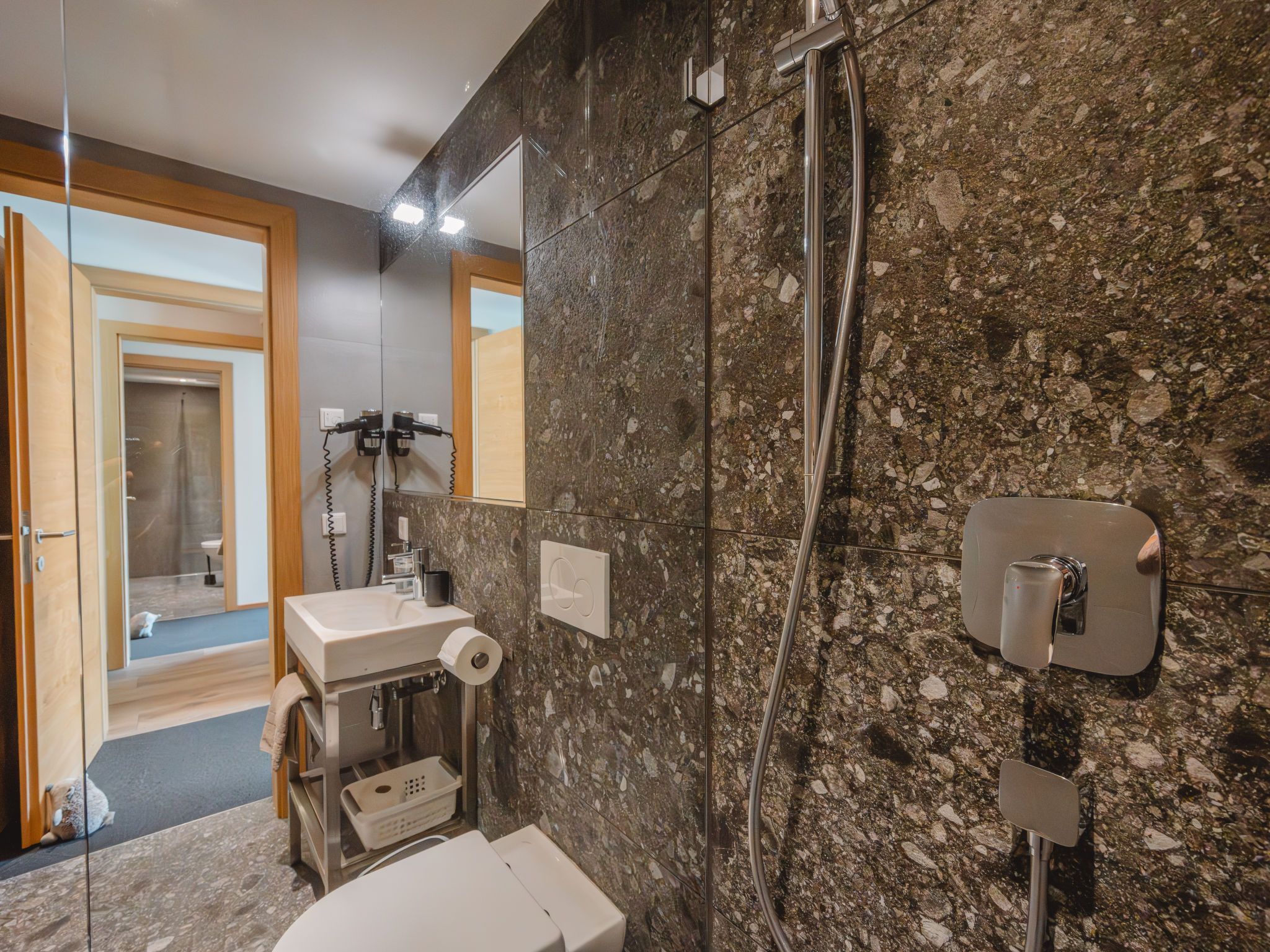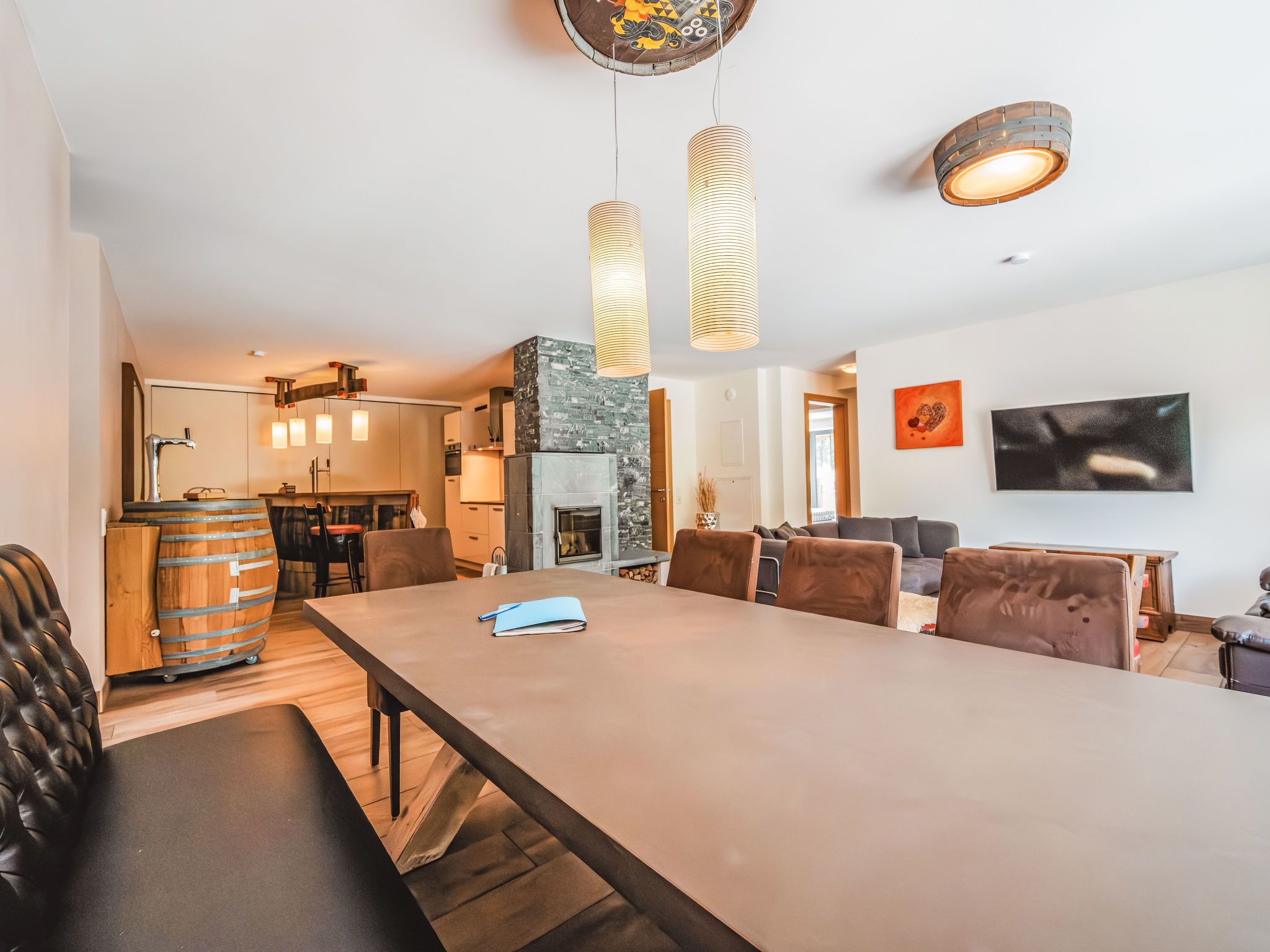 Fassl 1, 5-Zimmer-Wohnung 138 m2. Modern und luxuriös eingerichtet: Eingang. Wohn-/Esszimmer mit Schwedenofen, Esstisch, Essecke, Bar, Sat-TV und Kabel-TV. Ausgang zur Terrasse. 4 Doppelzimmer, jedes Zimmer mit Dusche/WC und E-Heizung. Grosse, offene Küche (Backofen, Geschirrspüler, 4 Induktionskochplatten, Toaster, Wasserkocher, elektrische Kaffeemaschine, Kombinationsmikrowelle). Fussbodenheizung. Natursteinboden. Grosse Terrasse. Terrassenmöbel, Gartengrill. Sehr schöne Sicht auf die Landschaft. Zur Verfügung: Internet (WLAN). Bitte beachten: Nichtraucher-Unterkunft. Sommerkarte inklusive! Hervorragend ausgestattet! Jedes Doppelzimmer hat ein eigenes Bad.