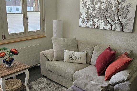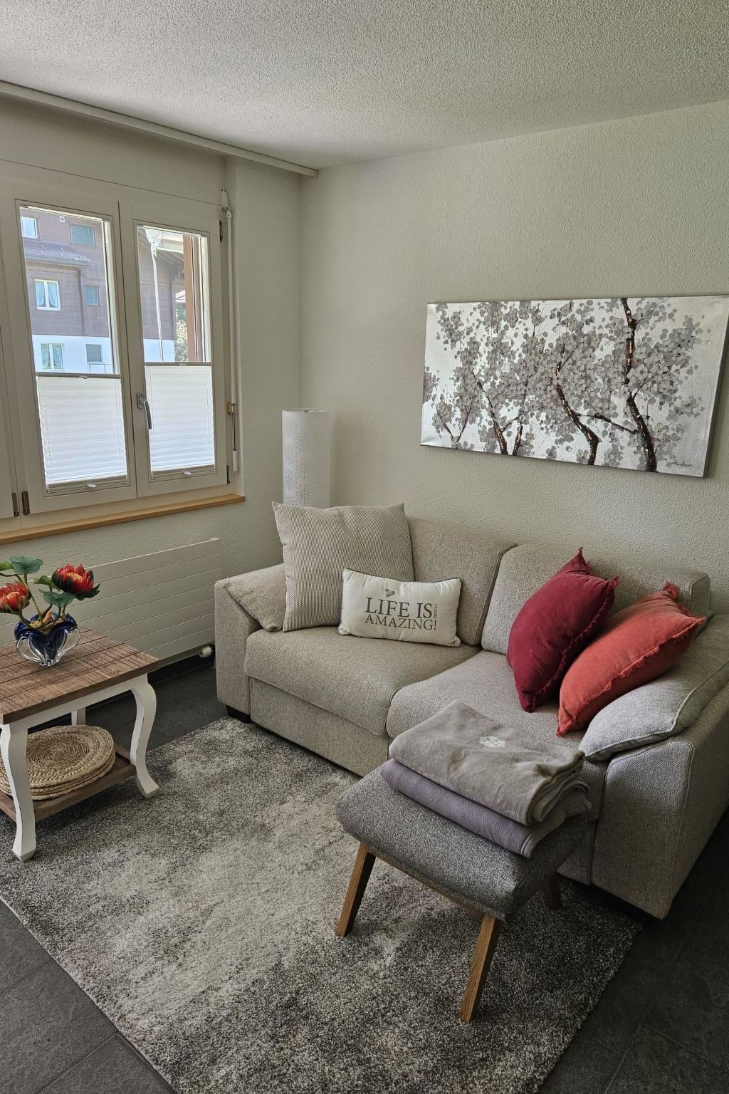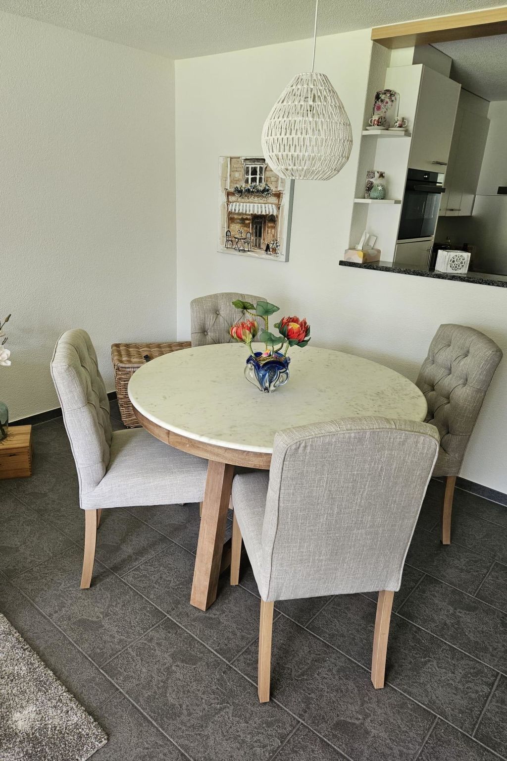 45 m2. Weitere Angaben des Anbieters: 2 1/2 Zimmer-Wohnung in Mehrfamilienhaus. Ruhige Lage mit grosser Terrasse mit Südlage und schöner Aussicht. Sehr gut gelegen, 150m von der Metsch-Talstation, direkt neben der Langlaufloipe und Anschluss an öffentliche Verkehrsmittel. Moderne und schön eingerichtete Ferienwohnung, geeignet für 2 Personen, der Esstisch ist für 4 Personen geeignet. Im Wohnzimmer ist ein Bettsofa und SAT-TV mit Radio. Die Küche ist mit einem Geschirrspüler und einer Nespresso-Maschine ausgestattet. Die Kapseln zur Kaffeemaschine müssen selber mitgenommen werden. Das 160 x 200cm grosse Doppelbett im Schlafzimmer ist mit zwei Einzelmatratzen aussgestattet. Das Badezimmer ist mit einer Badewanne mit Duschvorhang und WC eingerichtet. Die Wohnung verfügt über eine grosse Terrasse mit Gartentisch für 4 Personen. Das Rauchen auf der Terrasse ist gestattet Alle Nebenkosten wie Elektrizität, Heizung, Autoabstellplatz, Küchen- und Bettwäsche sind im Preis inbegriffen. Selber mitzunehmen sind Frottier- und Badetücher.