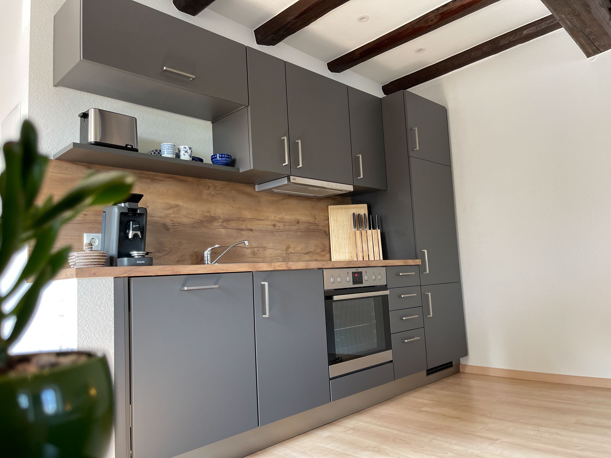 Dieses stilvolle neu sanierte 1-Raum-Apartment bietet auf 28 Quadratmetern alles, was man für einen angenehmen Aufenthalt zu zweit braucht. Der offene Wohnbereich ist mit einem gemütlichen Doppelbett ausgestattet und lädt mit Mainblick zum Entspannen ein. Eine neue und hochwertig ausgestattete moderne Küchenzeile ermöglicht die Zubereitung kleiner Mahlzeiten, während der Esstisch mit zwei Stühlen einen idealen Platz zum gemeinsamen Essen oder Arbeiten bietet. Das Badezimmer verfügt über eine komfortable begehbare Dusche und rundet das durchdachte Raumkonzept ab. Hell, funktional und geschmackvoll eingerichtet – das Apartment ist perfekt für Paare oder alle, die Wert auf stilvolles Wohnen auf kleinem Raum legen.