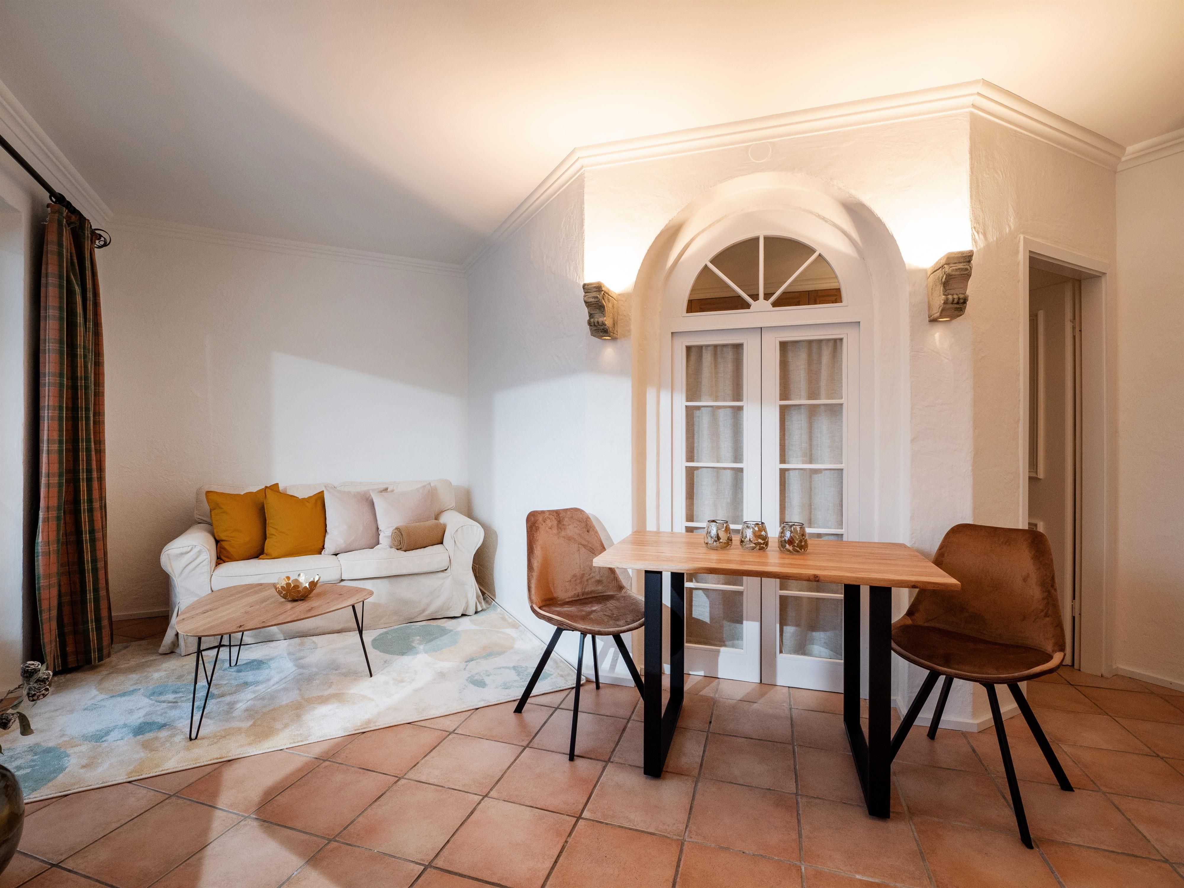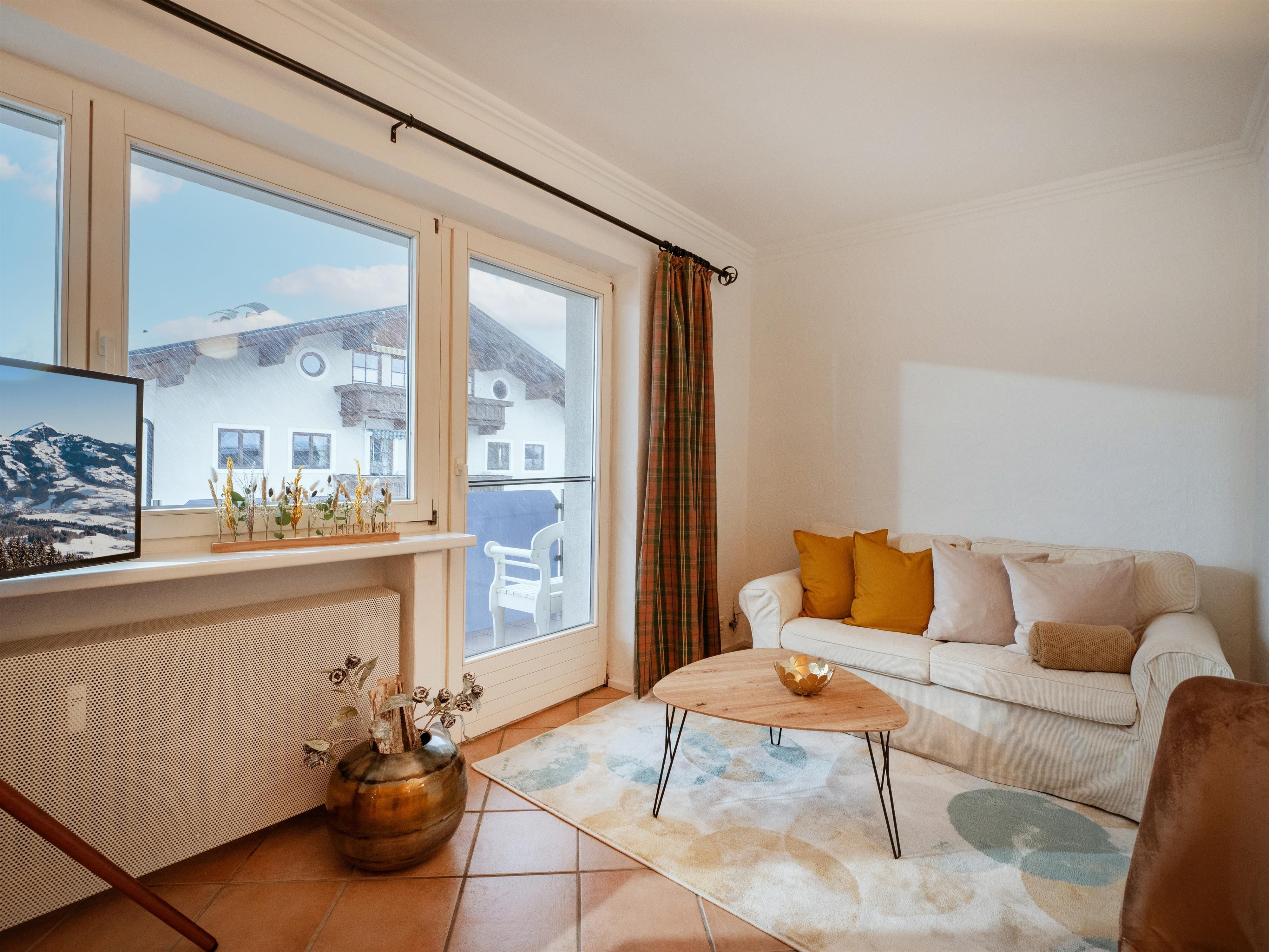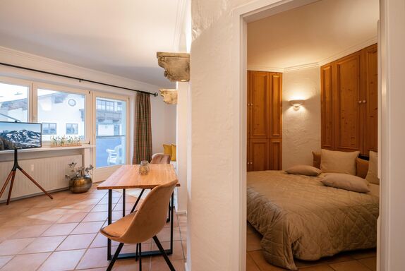 Die ca. 42 m² großen Ferienwohnung mit großem Balkon im 2. Stock bietet Platz für 2 Personen. Es befindet sich eine Einbauküche mit Essecke, komplett eingerichtet mit Herd, Backofen, Kühlschrank, Kaffeemaschine, Wasserkocher, Toaster, etc. Weiters verfügt die Ferienwohnung über 1 Schlafzimmer mit Doppelbett (Kinderreisebett auf Anfrage möglich), Wohnzimmer mit Couch und TV und einem eigenen Badezimmer mit Dusche und WC. Ein kostenfreier Parkplatz steht am Gebäude.