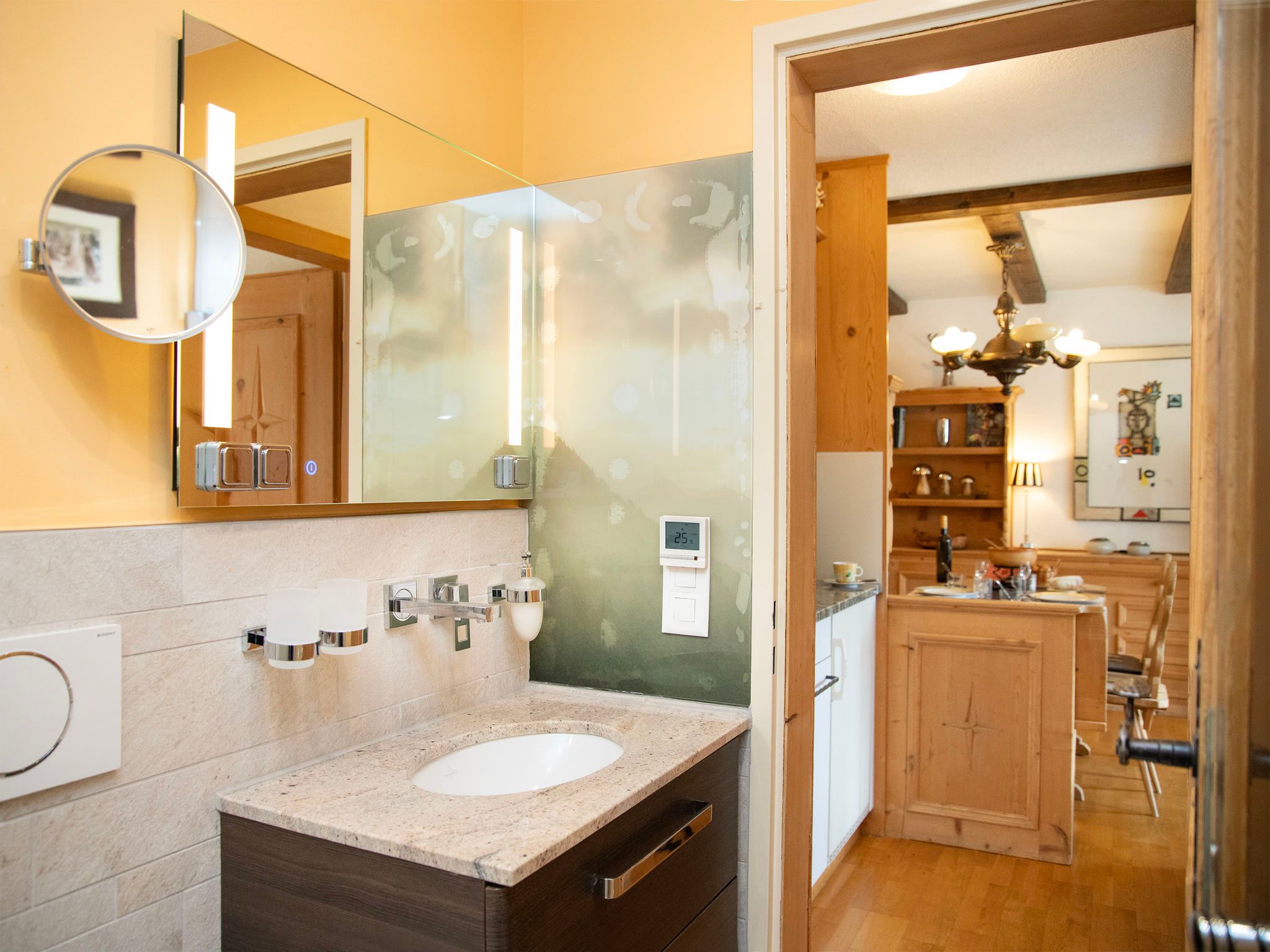 La Siala Apt.2, 2-Zimmer-Wohnung 40 m2, im Erdgeschoss. Komfortabel und gemütlich eingerichtet: Wohn-/Esszimmer mit 1 Doppeldiwanbett und Kabel-TV (Flachbildschirm). Ausgang zum Gartensitzplatz. 1 Doppelzimmer. Kochnische (Geschirrspüler, 2 Glaskeramikplatten, elektrische Kaffeemaschine, Kapseln für die Kaffeemaschine (Nespresso) extra). Dusche/WC. Gartensitzplatz 20 m2, Südlage. Terrassenmöbel. Schöne Sicht auf die Berge, das Tal und die Landschaft. Zur Verfügung: Haartrockner. Internet (WLAN, gratis). Bitte beachten: Nichtraucher-Unterkunft. Maximal 1 Haustier/Hund erlaubt.