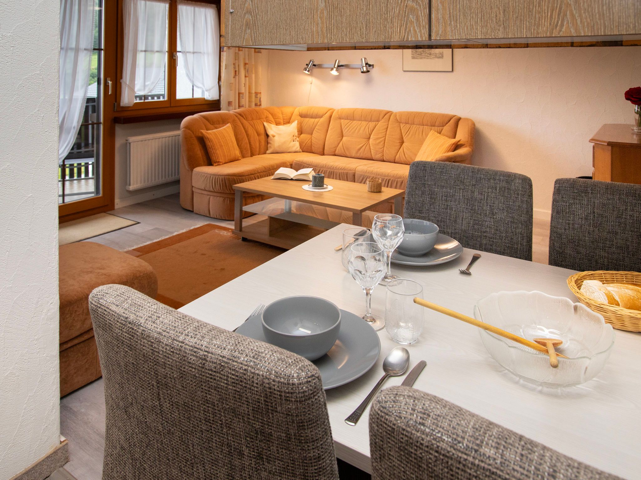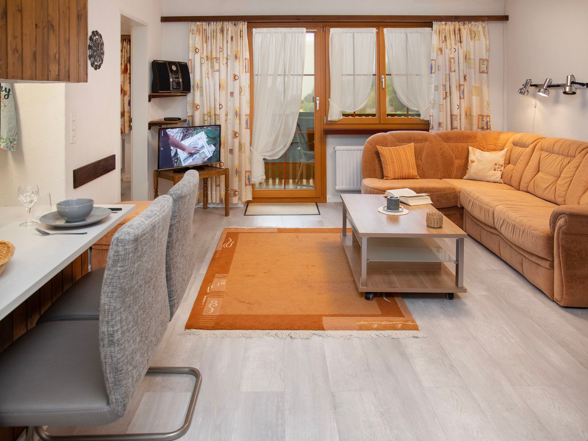 La Siala Apt.37, 2-Zimmer-Wohnung 34 m2 im 2. Stock. Komfortabel und gemütlich eingerichtet: Wohn-/Esszimmer mit 1 Diwanbett und Kabel-TV (Flachbildschirm). Ausgang zum Balkon. 1 Doppelzimmer. Kochnische (2 Glaskeramikplatten, elektrische Kaffeemaschine). Bad/WC. Balkon 8 m2, Südlage. Balkonmöbel. Schöne Sicht auf die Berge, das Tal und die Landschaft. Zur Verfügung: Haartrockner. Internet (WLAN, gratis). Bitte beachten: Nichtraucher-Unterkunft.