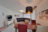 Modernes Apartment mit 2 Schlafzimmern im Haus Dominic A. Beide Schlafzimmer (eines mit einem Doppelbett, eines mit 2 Einzelbetten) teilen sich ein Badezimmer mit Badewanne und WC. Der grosse Wohn- & Essbereich mit integrierter Küche ist der perfekte Ort zum Entspannen. Im Wohnzimmer befindet sich zudem eine Schlafcouch auf der 2 weitere Personen übernachten können. Auch besitzt das Apartment einen Balkon. Skiraum und kostenloses WIFI sind vorhanden.