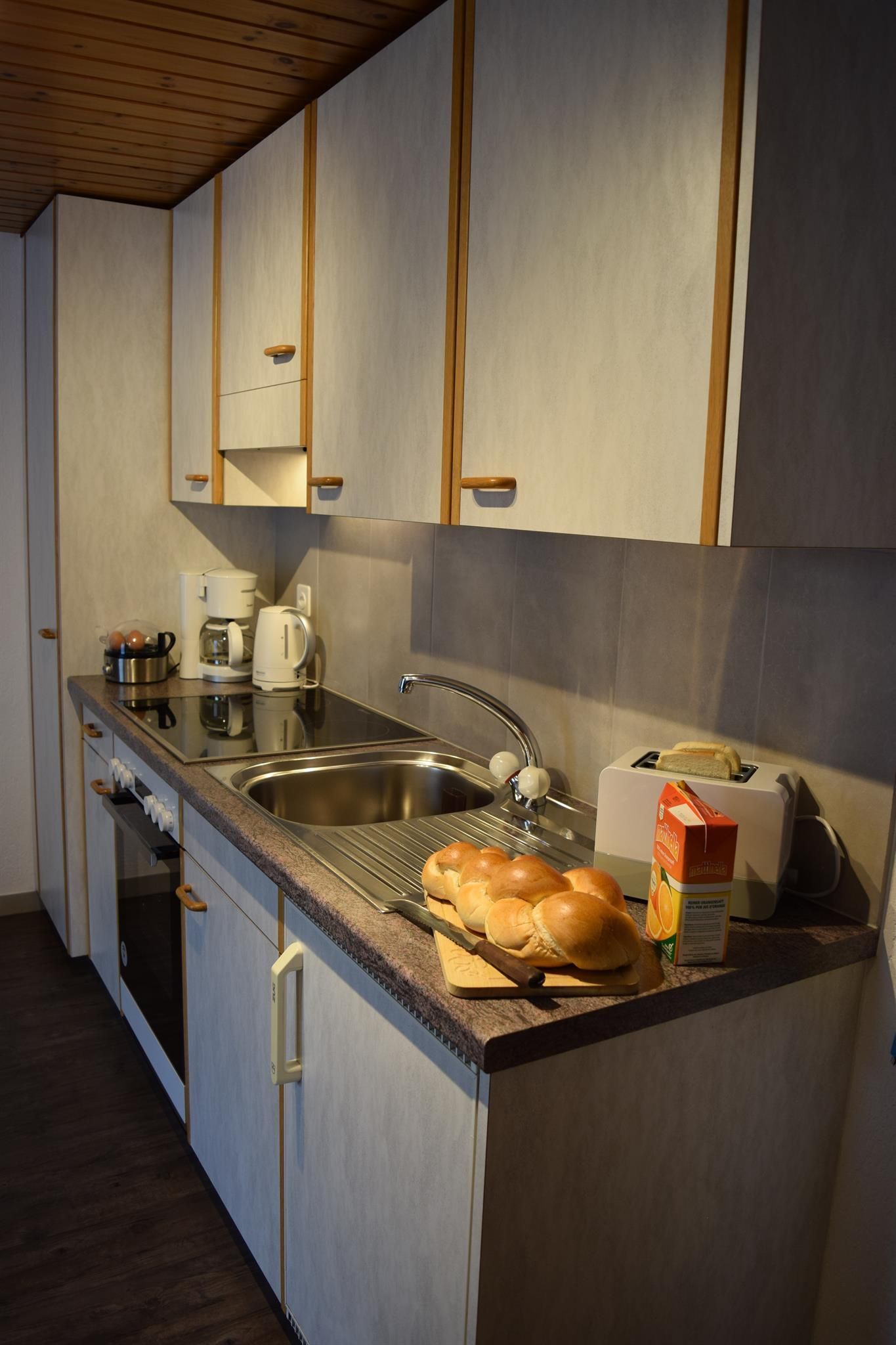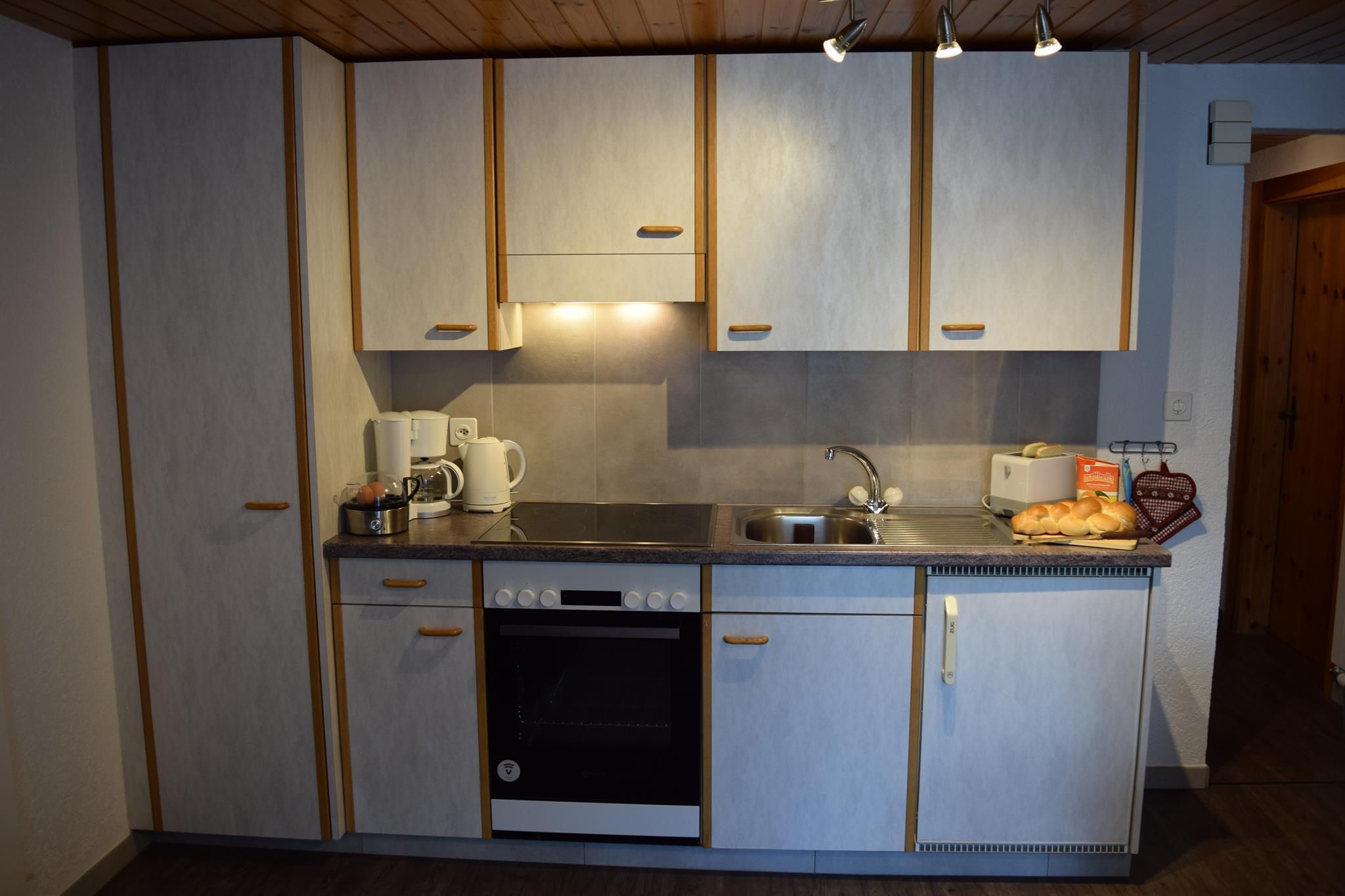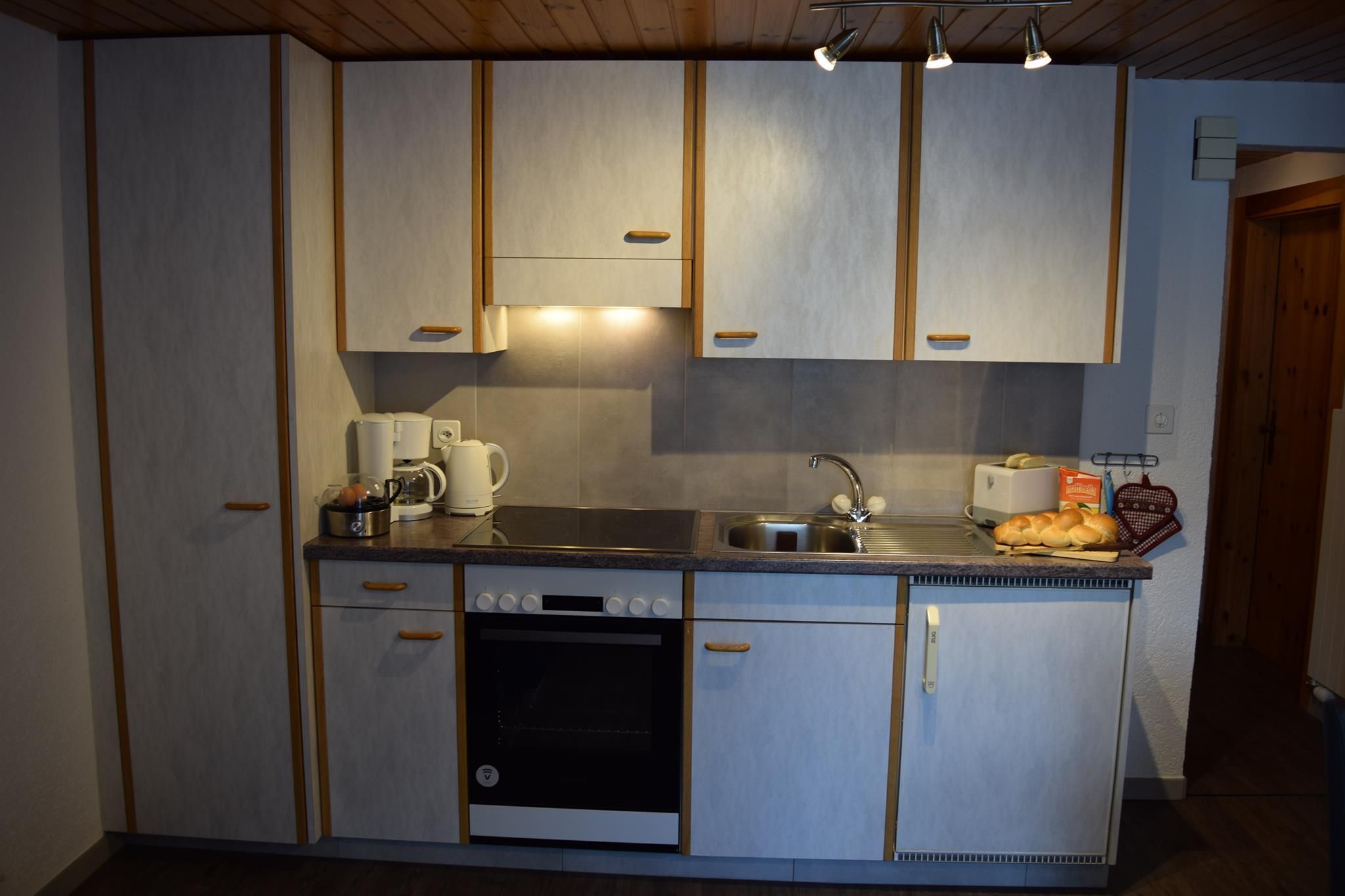 Die Wohnung ist sehr gemütlich eingerichtet. In der Küche finden Sie neben dem nötigen Koch- und Essgeschirr, ein Glaskeramik-Elektrokochfeld mit 4 Platten, einen Backofen, einen Kühlschrank mit kleinem Gefrierfach, eine Kaffeemaschine (Nespresso-Kapseln ebenfalls bei uns erhältlich), einen Wasserkocher, einen Eierkocher, einen Toaster und ein Käsefondue-Set. Die Betten sind bei Ihrer Ankunft frisch bezogen, die Bade- und Küchentücher liegen für Sie bereit und sind ebenfalls im Preis inbegriffen. Die wunderschöne Aussicht auf unsere einzigartige Bergwelt, welche Sie von ihrer Terrasse aus geniessen dürfen, wird Ihnen ganz bestimmt für lange Zeit in positiver Erinnerung bleiben.
