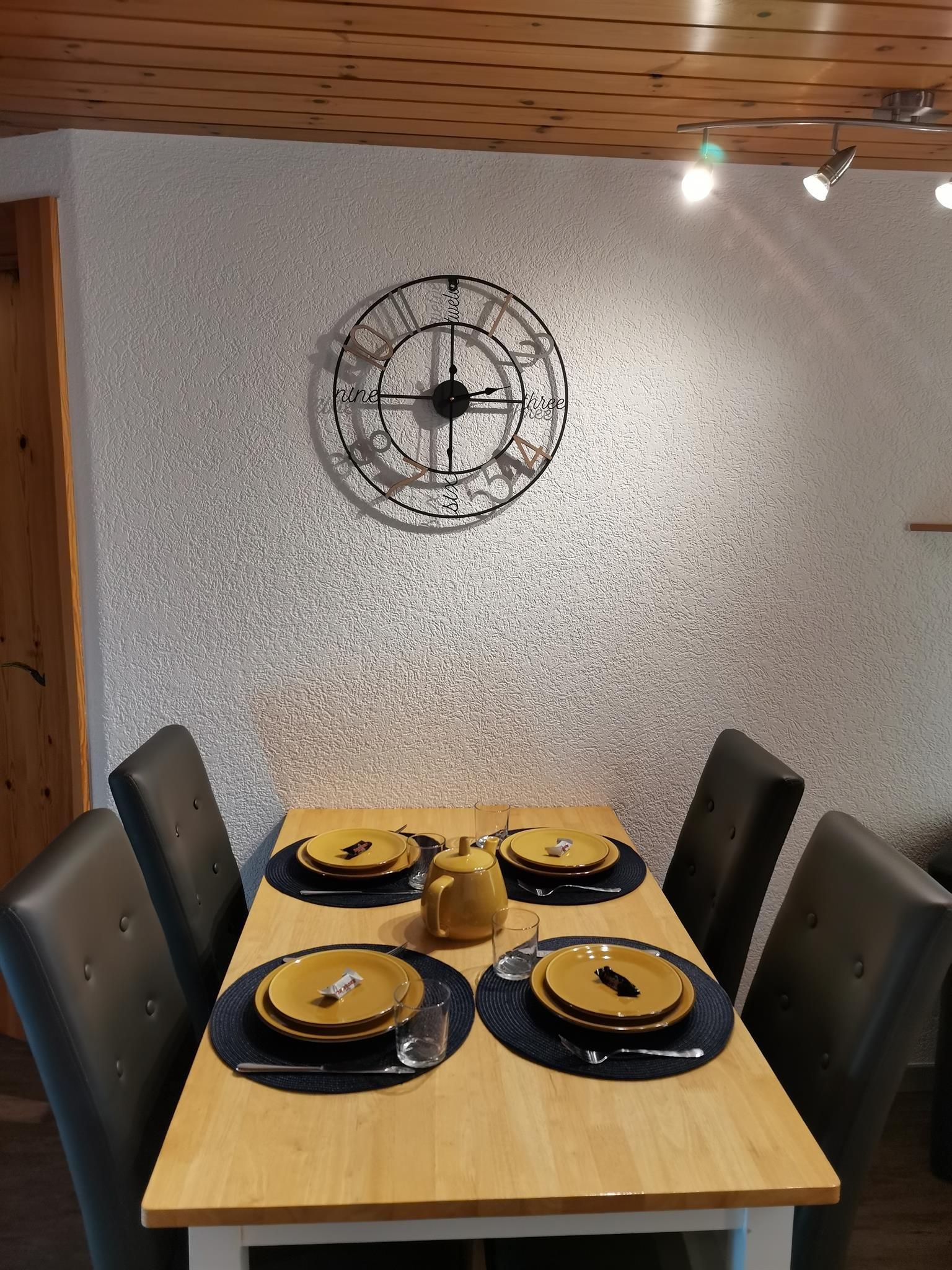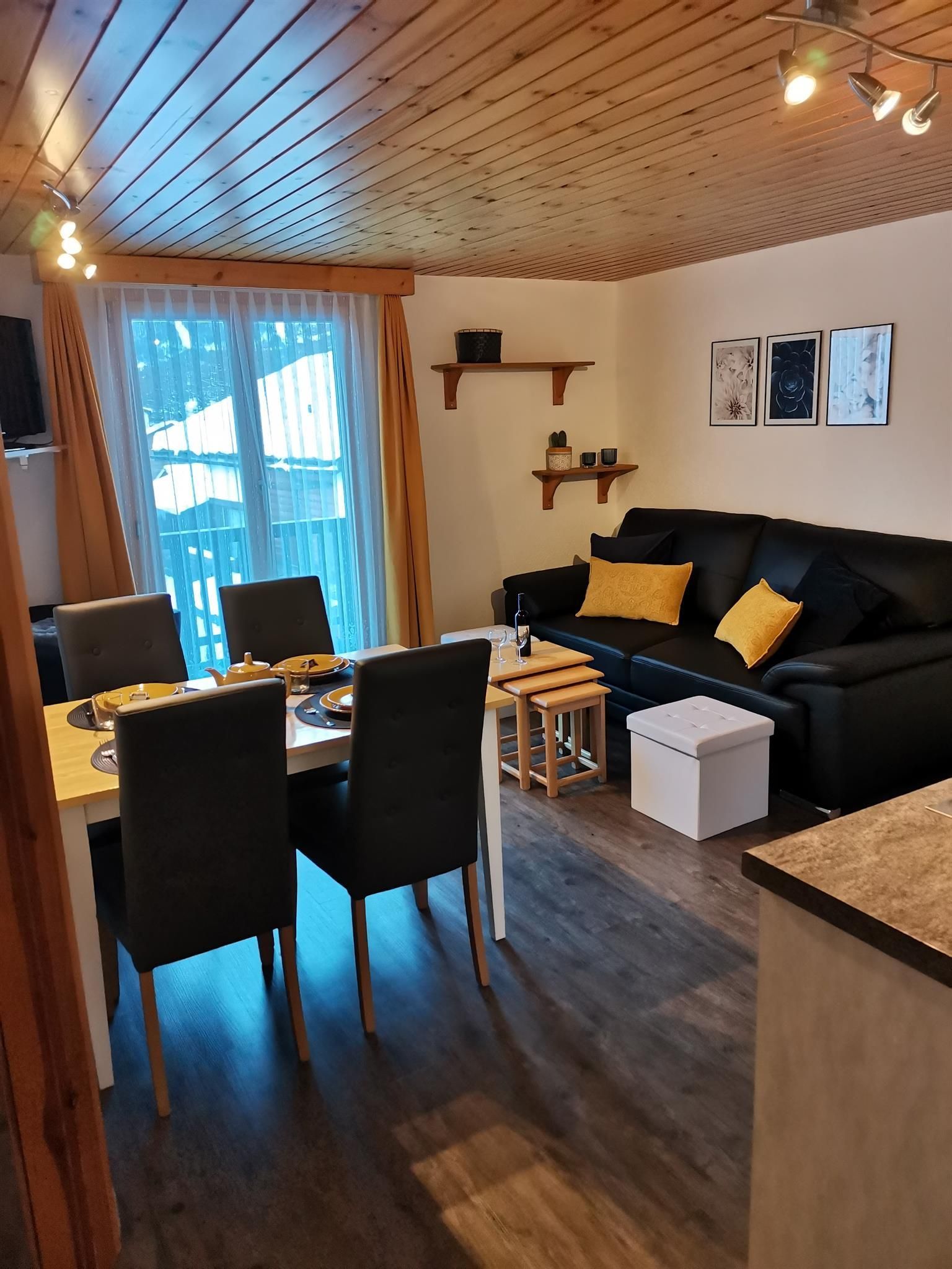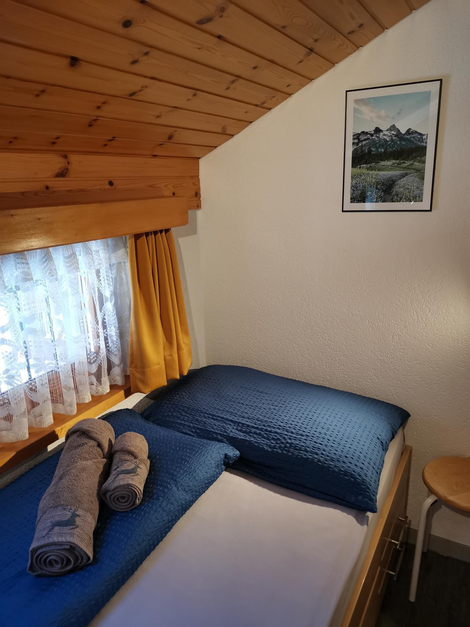 Die Wohnung ist sehr gemütlich eingerichtet. In der Küche finden Sie neben dem nötigen Koch- und Essgeschirr, ein Glaskeramik-Elektrokochfeld mit 4 Platten, einen Backofen, einen Kühlschrank mit kleinem Gefrierfach, eine Kaffeemaschine (Nespresso-Kapseln ebenfalls bei uns erhältlich), einen Wasserkocher, einen Eierkocher, einen Toaster und ein Käsefondue-Set. Die Betten sind bei Ihrer Ankunft frisch bezogen, die Bade- und Küchentücher liegen für Sie bereit und sind ebenfalls im Preis inbegriffen. Die wunderschöne Aussicht auf unsere einzigartige Bergwelt, welche Sie von ihrer Terrasse aus geniessen dürfen, wird Ihnen ganz bestimmt für lange Zeit in positiver Erinnerung bleiben.