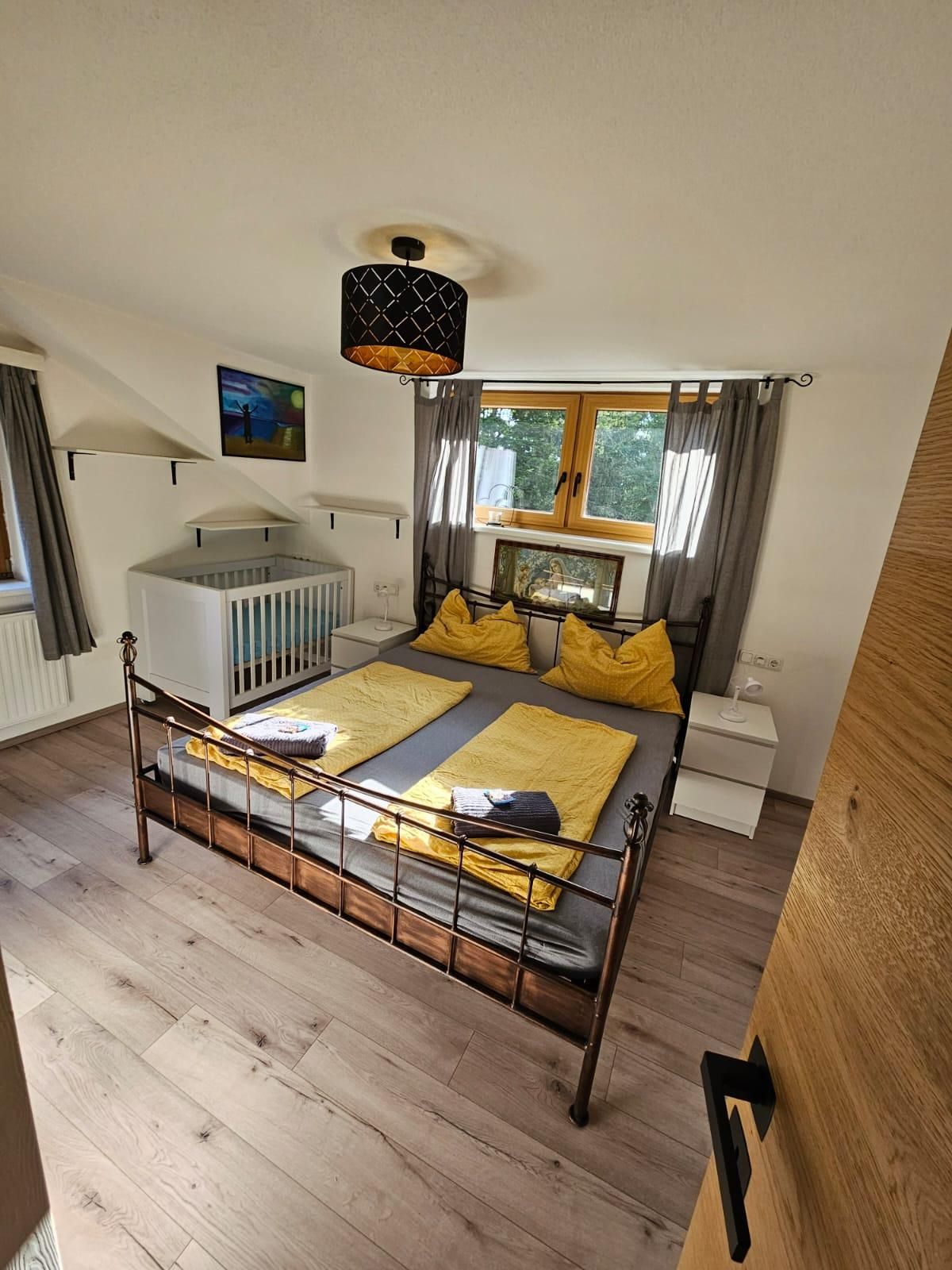 Sucht ihr einen Ort zum Durchatmen, Auftanken und Zusammensein? Unsere liebevoll eingerichtete Familienwohnung bietet euch genau das – Ruhe, Natur und Raum für echte Verbindung. Für bis zu 4 Erwachsene + Gitterbett • Zwei gemütliche Schlafzimmer • Großes, helles Wohnzimmer – ideal für Spieleabende oder ruhige Lesestunden • Voll ausgestattete Küche – für Frühstück mit Bergblick oder ein gemeinsames Abendessen • Terrasse mit Ausblick ins Grüne • Eigener Eingang & Self Check-in – ganz entspannt ankommen • WLAN & Parkplatz inklusive • Besonders familienfreundlich • Ruhige Lage • Viel Platz zum Entspannen • Wanderwege direkt vor der Tür • Gitterbett auf Wunsch bereitgestellt • Top-Lage für Naturliebhaber & Aktive • Nur 5 Min. zum Gleinkersee – perfekt zum Schwimmen & Bootfahren • 10 Min. zur Wurzeralm & Hinterstoder – für Wanderfreunde & Skifans • 15 Min. zu weiteren Badeseen und zum Golfplatz • Ob ihr einfach nur die Seele baumeln lassen oder jeden Tag ein neues Abenteuer erleben wollt – bei uns seid ihr richtig. Wir freuen uns, euch willkommen zu heißen! Herzlich, Katharina, Christoph, Simon und Sophie