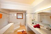 3-Zimmer-Wohnung, 4-8 Personen, ca. 83 m², Vorraum mit Garderobe, Küchenblock mit Geschirrspüler, Wohn-/Schlafraum (Doppelcouch + Einzelbett) mit Esstisch, Kachelofen und Eckcouch, 1 Schlafzimmer mit Doppelbett, 1 Schlafzimmer mit Doppelbett und Einzelbett, 2 Badezimmer mit Badewanne und/oder Dusche und WC, Balkon, Radio, Sat-TV, Telefon, W-LAN, Safe