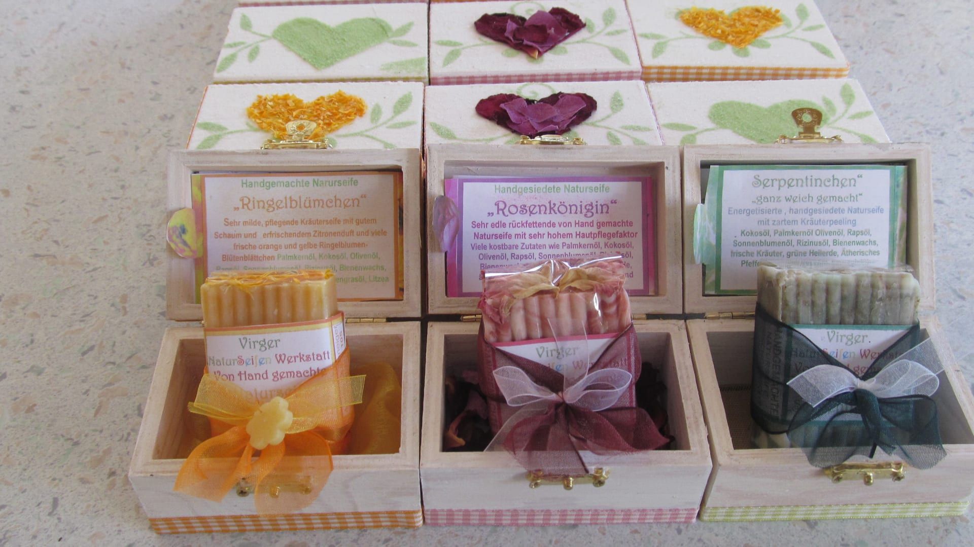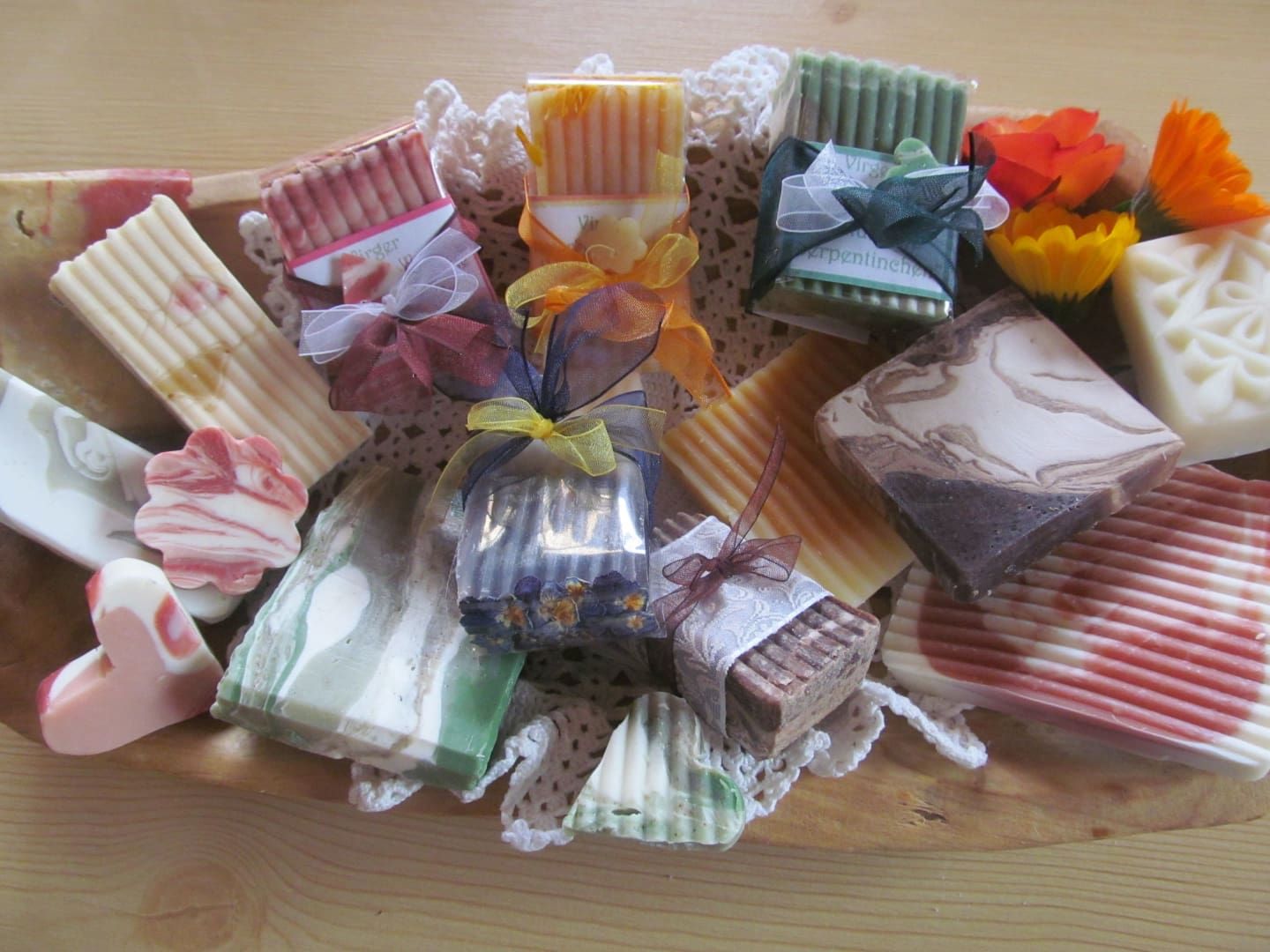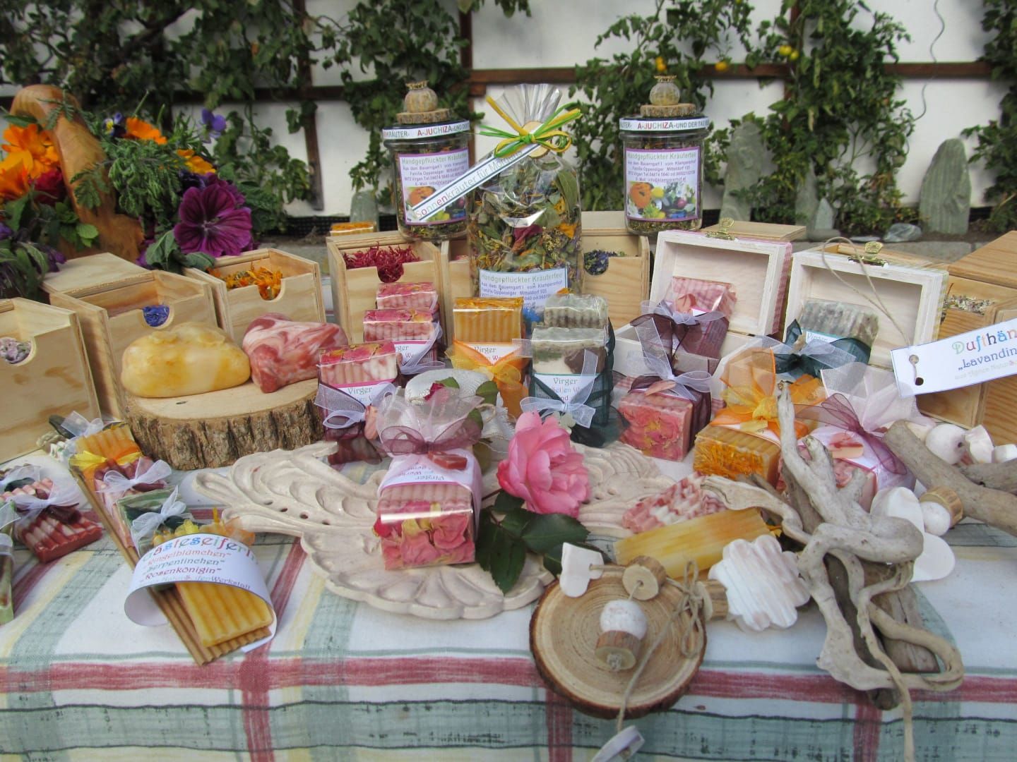 Sie heißen Serpentinchen, Rosenkönigin oder Kaffeeseife. Und sie verbreiten betörende Düfte. Naturseifen sind unsere große Spezialität. Im Sommer bieten wir unseren Gästen einmal pro Woche einen Seifensieden-Workshop an. Die Zutaten kommen aus unserem Kräutergarten hinterm Haus. Wir geben gerne einen Einblick in unser über Generationen aufgebautes Wissen.