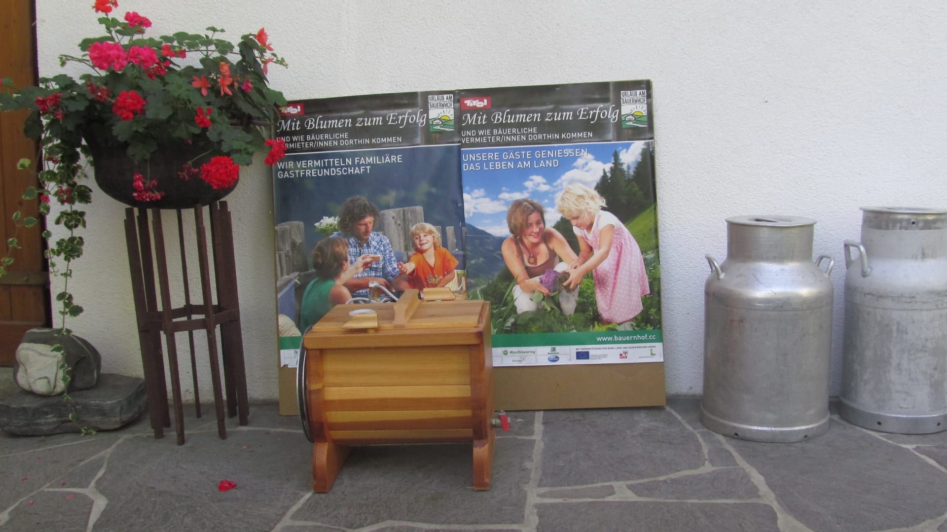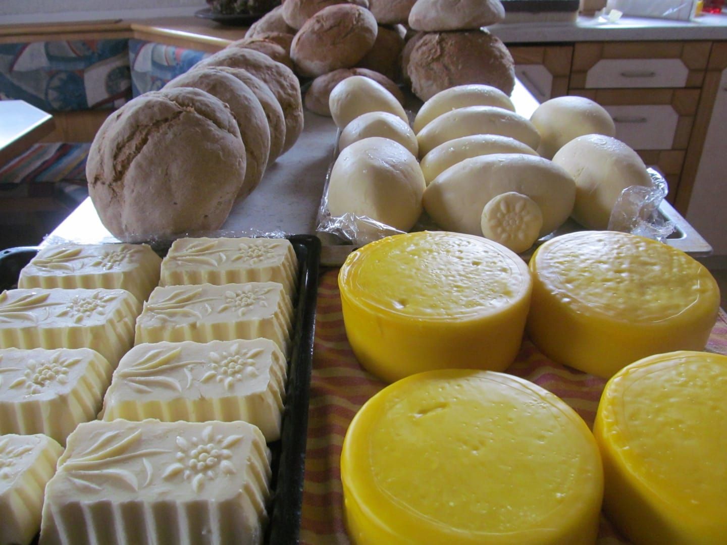 Direkt im Haus können Sie durch ein Fenster die Tiere im Stall beobachten und auch gerne aktiv im Stall oder auf dem Feld mithelfen. Bei der Herstellung unserer hofeigenen Köstlichkeiten (Butter, Joghurt, Mozzarella, Schnitt- und Weichkäse, Marmeladen usw..) kann gerne über die Schulter von Agnes geblickt werden.