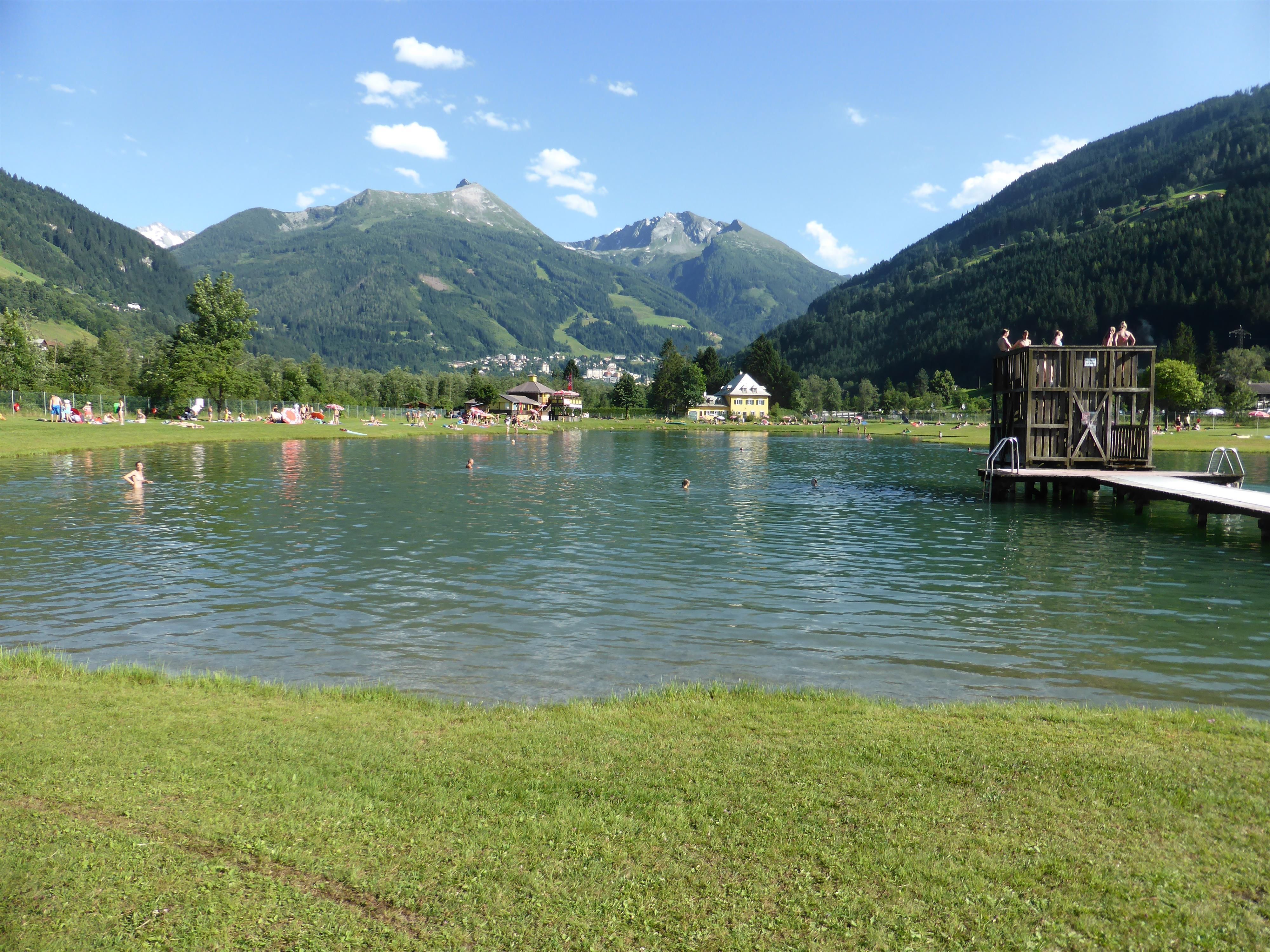 • der Gasteiner Badesee, Wald und Wanderwege zu Fuß erreichbar
