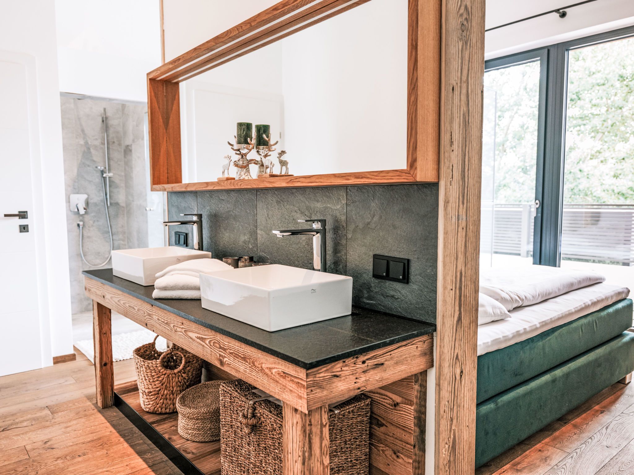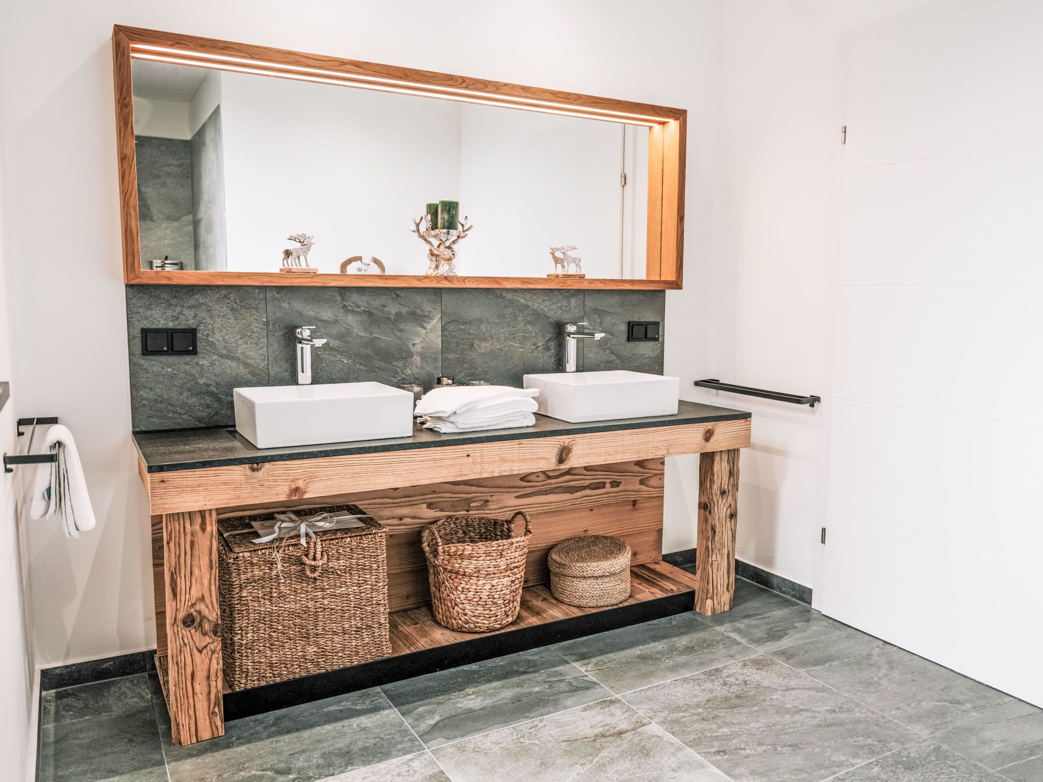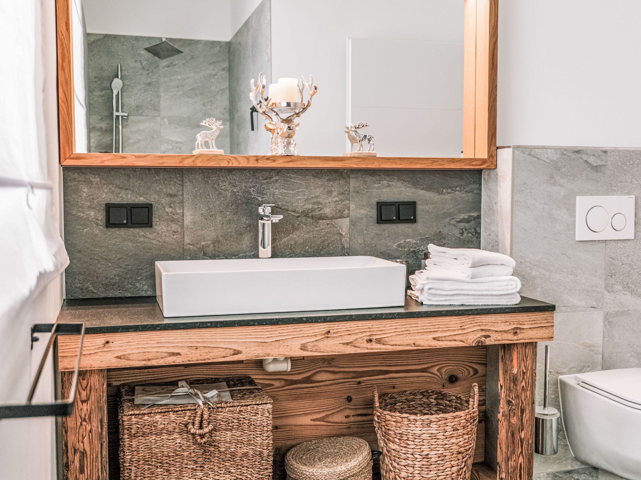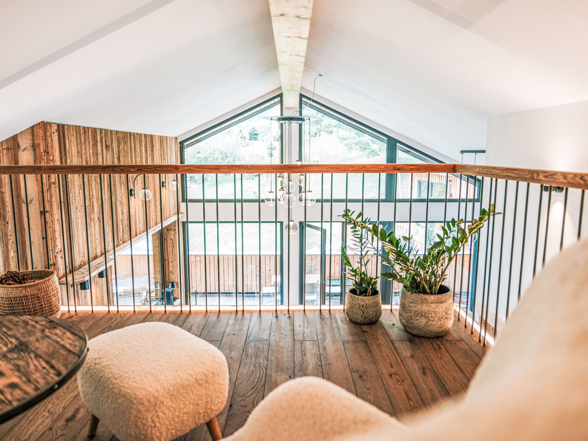 Haus am Kogl, 6-Zimmer-Landhaus 300 m2 auf 2 Stockwerken. Objekt geeignet für 10 Erwachsene + 3 Kinder. Hell, teilweise abgeschrägt, komfortabel und mit viel Holz eingerichtet: grosses Wohn-/Esszimmer mit Esstisch, Sat-TV und Internationale TV-Sender (Flachbildschirm), Kachelofen. Ausgang zum Balkon. 1 Zimmer mit Panoramafenster mit 1 Doppeldiwanbett (1 x 140 cm, Länge 200 cm), 1 Doppelbett, Dusche/WC, Sat-TV und Internationale TV-Sender (Flachbildschirm). Offene Küche (Backofen, Geschirrspüler, 4 Induktionskochplatten, Toaster, Wasserkocher, Grill, elektrische Kaffeemaschine, Racletteofen) mit Bar. Sep. WC. Fussbodenheizung. Unteres Geschoss: 3 Doppelzimmer, jedes Zimmer mit Dusche/WC, Sat-TV und Internationale TV-Sender (Flachbildschirm). Ausgang zur Terrasse. Obergeschoss: 1 abgeschrägtes Zimmer mit Schiebetür mit 1 Diwanbett (90 cm, Länge 200 cm), 1 Doppelbett, Sat-TV und Internationale TV-Sender (Flachbildschirm). Offene Galerie. Parkettboden. Terrasse. Terrassenmöbel, Gartengrill, Liegestühle. Sehr schöne Panoramasicht auf die Landschaft. Zur Verfügung: Waschmaschine, Wäschetrockner, Bügeleisen, Kinderhochstuhl, Babybett bis 2 Jahre, Haartrockner, Holz (gratis). Internet (WLAN, gratis). E-Ladestation. Bitte beachten: Nichtraucher-Haus. Rauchmelder, Feuerlöscher. Der ausgeschriebene Pool ist zur alleinigen Nutzung.