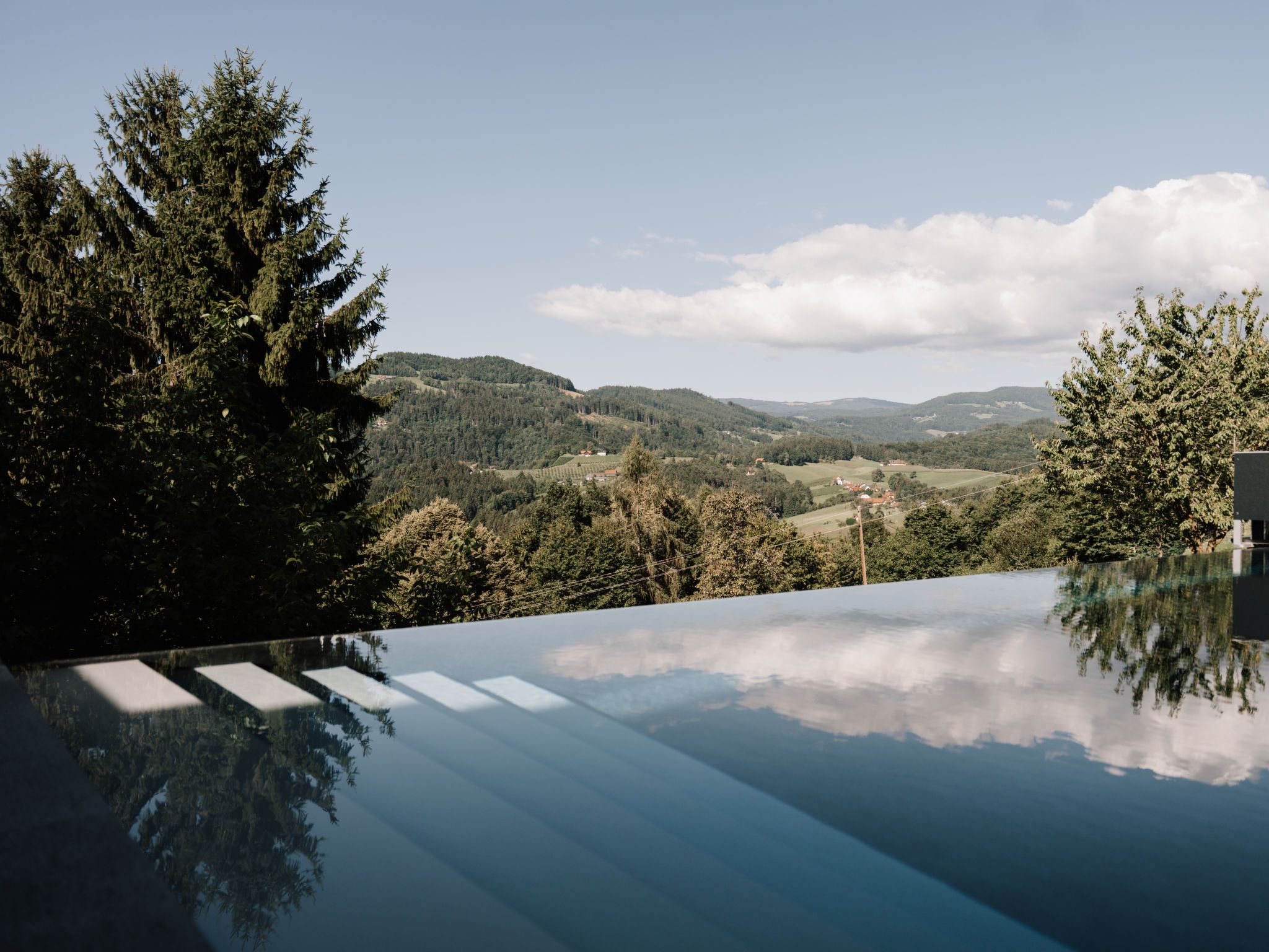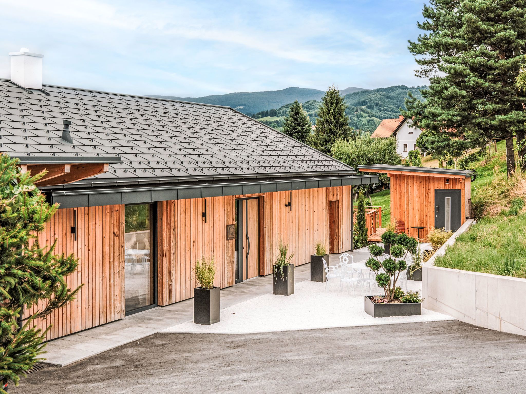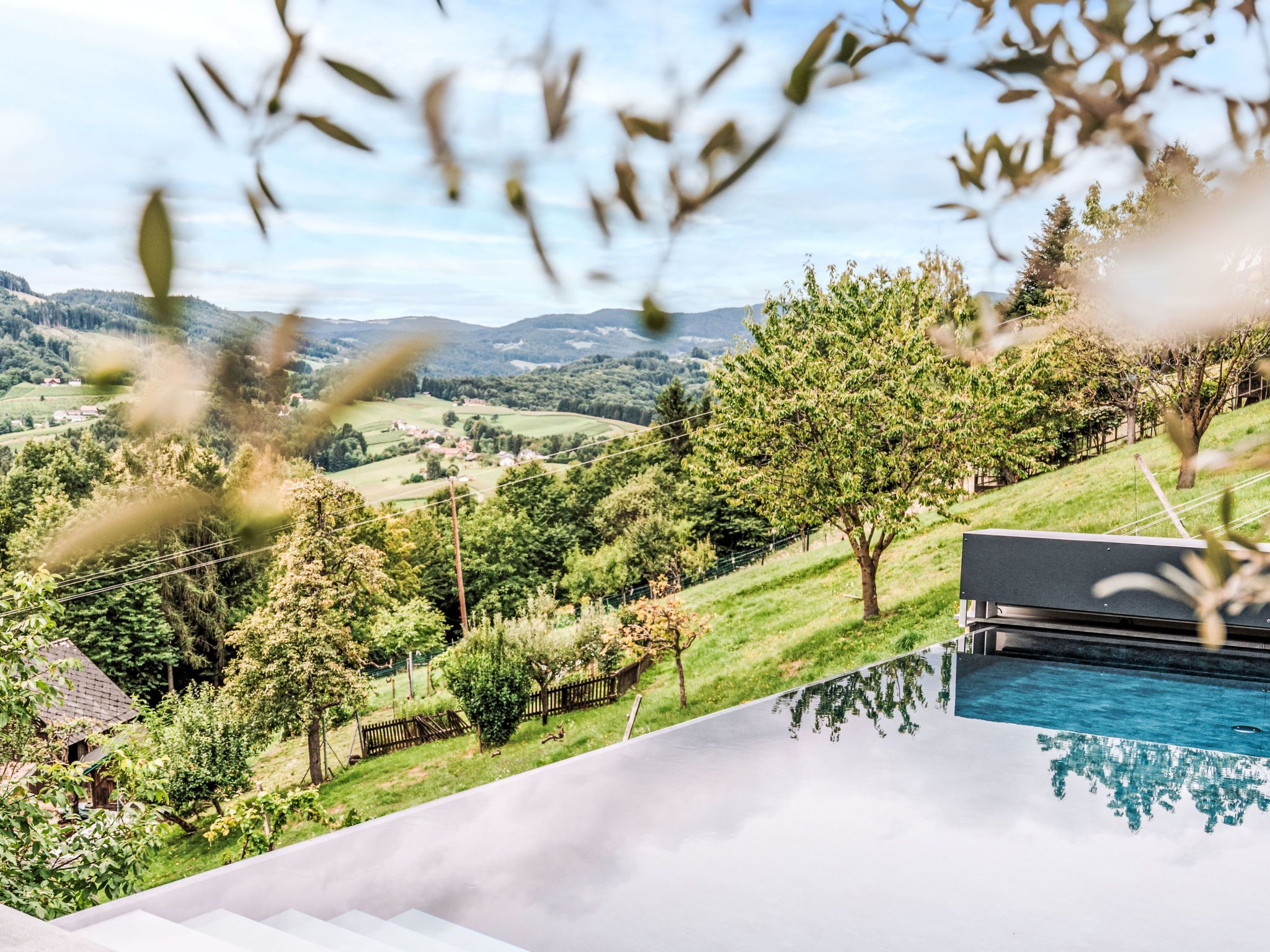 Süd-Weststeiermark 20 km von Deutschlandsberg: Modernes Landhaus Haus am Kogl, auf 2 Stockwerken, umgeben von Feldern und Weinbergen. Im Ortsteil Oberer Kogl, 5 km vom Zentrum von Wies, ruhige, sonnige Lage. Zur Alleinbenutzung: Grundstück 1'000 m2, wunderschöner Garten zum Entspannen, Schwimmbad (8 x 4 m, 32 m2, saisonale Verfügbarkeit: 01.Mai. - 31.Okt.) mit Rollladenabdeckung. WC im Poolbereich, Aussendusche, Poolhaus mit Kühlschrank und Kochherd, Sitzplatz, Gartenmöbel, Grill. Im Hause: Wireless LAN, Sauna, Einstellraum für Fahrräder, Zentralheizung, Waschmaschine, Wäschetrockner. Koch (extra). Brötchenservice und Getränkeservice möglich (extra). Abstellraum vorhanden. Parkplatz (für 5 Autos). Carport. E-Ladestation. Lebensmittelgeschäft 1.6 km, Supermarkt 5 km, Restaurant 300 m, Bushaltestelle Wernersdorf Ort 1.5 km, Bahnstation Wies-Eibiswald 5 km. Nahe gelegene Sehenswürdigkeiten: Wasserfall der weißen Sulm 12 km. Wandergebiete: Wasserfall Hadernigg 11 km. Objekt geeignet für 10 Erwachsene + 3 Kinder. Der Besitzer akzeptiert keine Jugendgruppen. Residenz ist 24 Std. überwacht. Wellness: Panoramasauna: 15 m² (im Garten, inkl. Dusche und WC im Saunahaus) und Infinity-Pool (8 x 4 m) mit atemberaubendem Blick auf die Weinberge mit Massagefunktion.