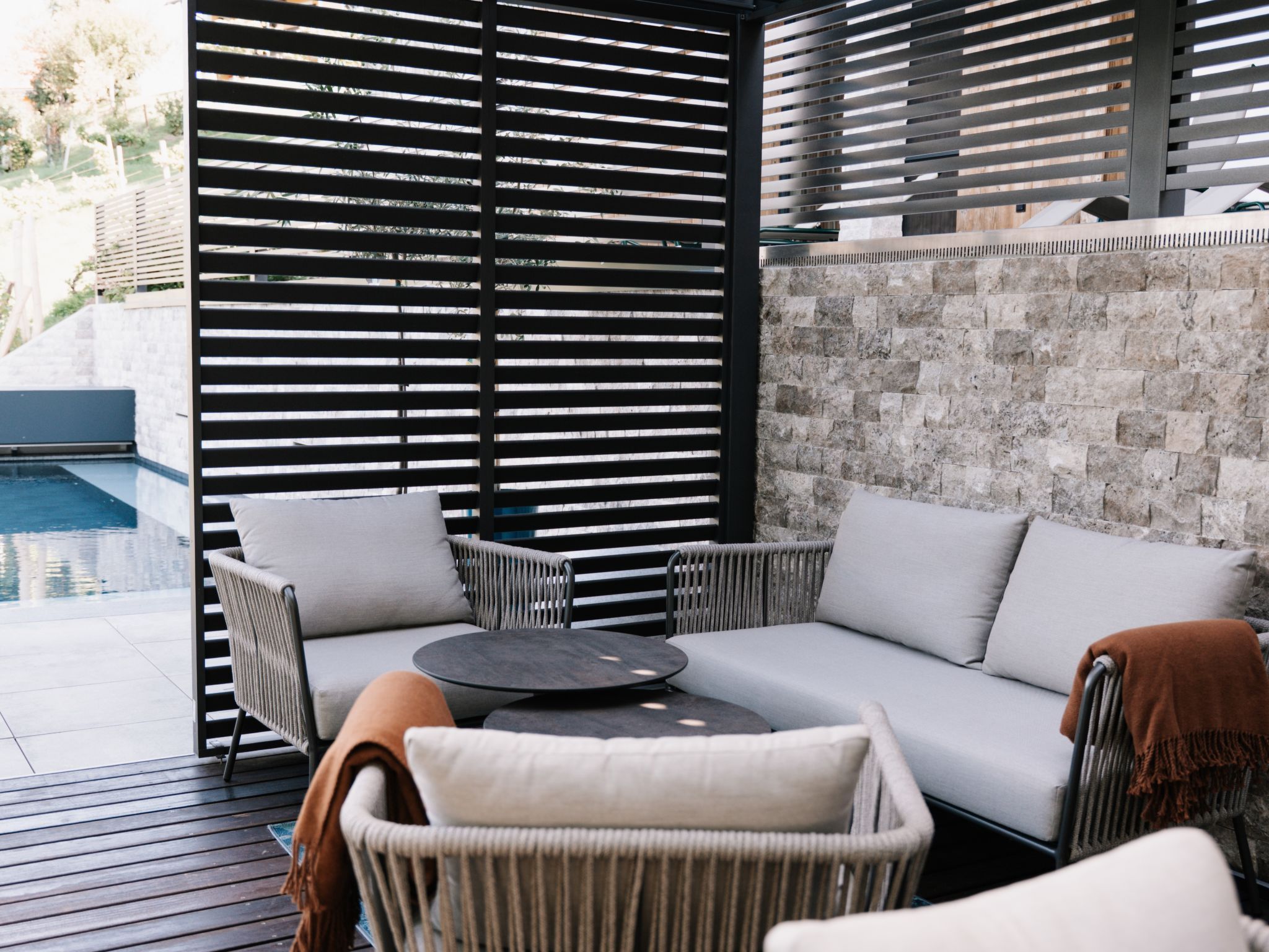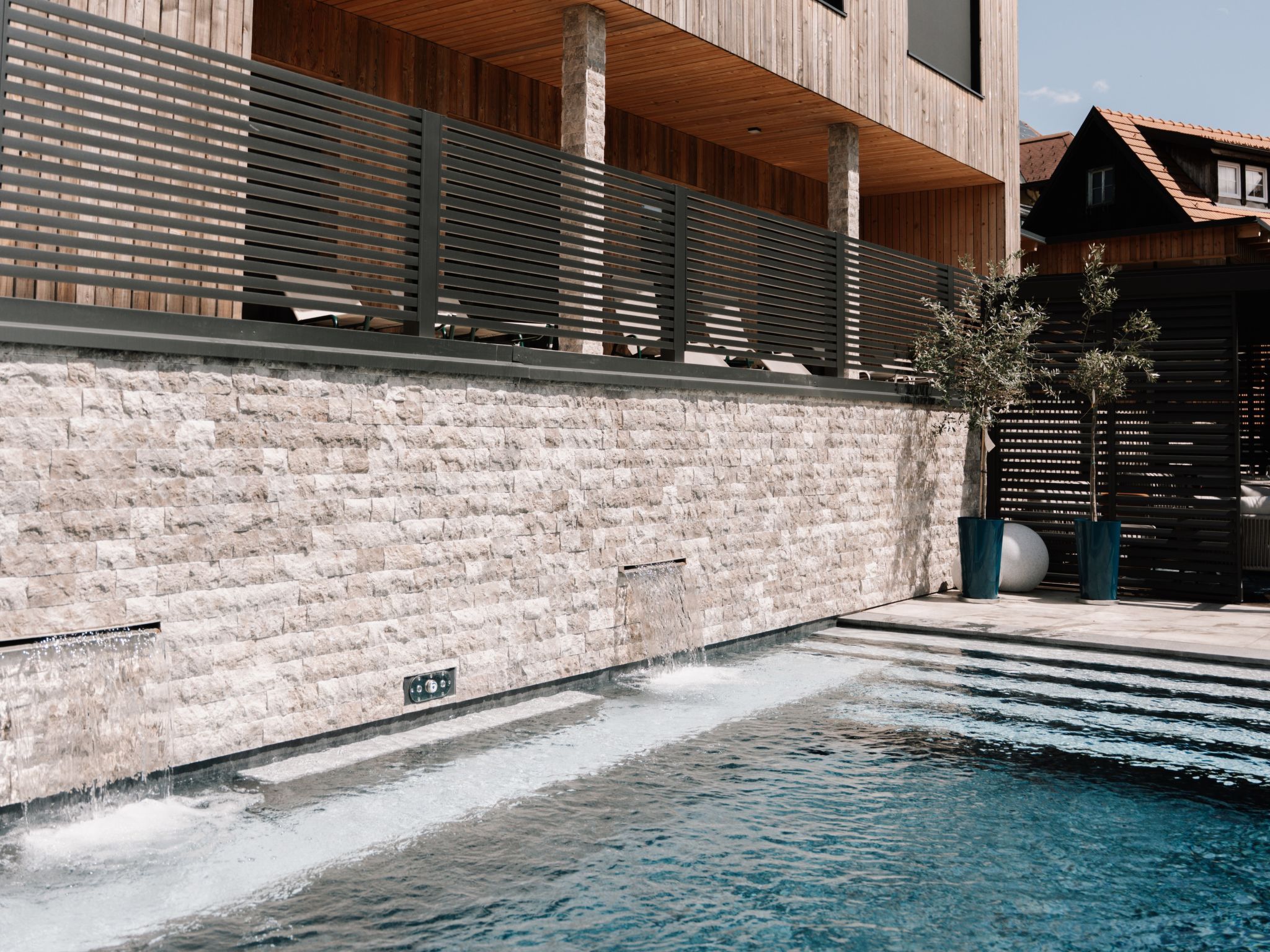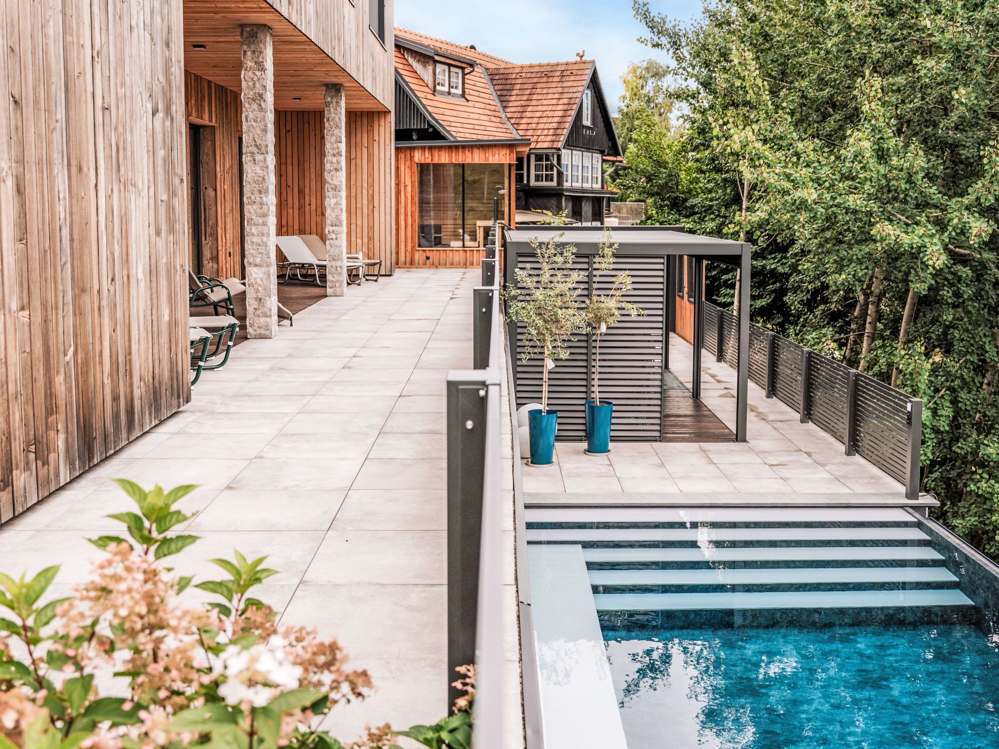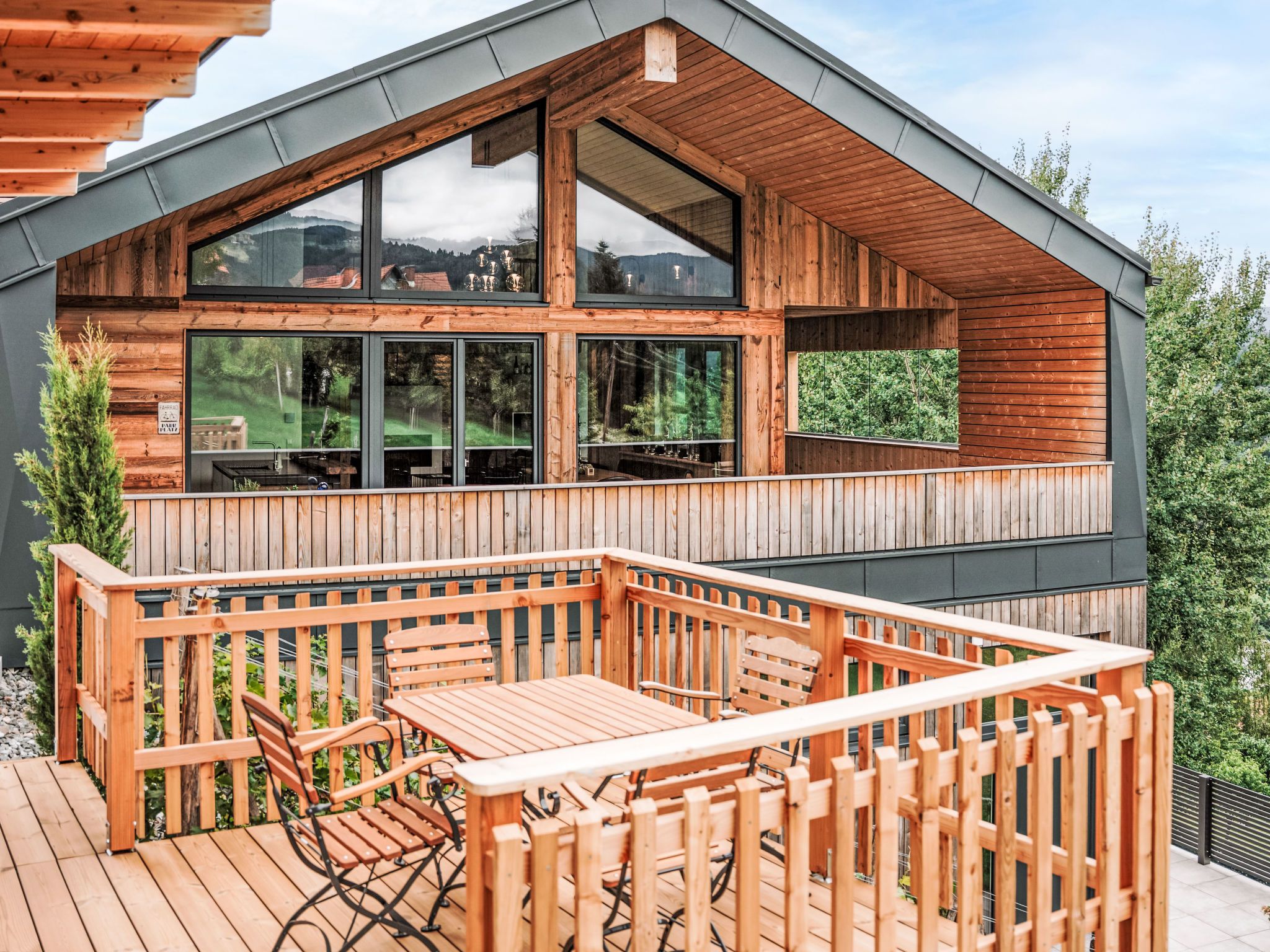 Süd-Weststeiermark 20 km von Deutschlandsberg: Modernes Landhaus Haus am Kogl, auf 2 Stockwerken, umgeben von Feldern und Weinbergen. Im Ortsteil Oberer Kogl, 5 km vom Zentrum von Wies, ruhige, sonnige Lage. Zur Alleinbenutzung: Grundstück 1'000 m2, wunderschöner Garten zum Entspannen, Schwimmbad (8 x 4 m, 32 m2, saisonale Verfügbarkeit: 01.Mai. - 31.Okt.) mit Rollladenabdeckung. WC im Poolbereich, Aussendusche, Poolhaus mit Kühlschrank und Kochherd, Sitzplatz, Gartenmöbel, Grill. Im Hause: Wireless LAN, Sauna, Einstellraum für Fahrräder, Zentralheizung, Waschmaschine, Wäschetrockner. Koch (extra). Brötchenservice und Getränkeservice möglich (extra). Abstellraum vorhanden. Parkplatz (für 5 Autos). Carport. E-Ladestation. Lebensmittelgeschäft 1.6 km, Supermarkt 5 km, Restaurant 300 m, Bushaltestelle Wernersdorf Ort 1.5 km, Bahnstation Wies-Eibiswald 5 km. Nahe gelegene Sehenswürdigkeiten: Wasserfall der weißen Sulm 12 km. Wandergebiete: Wasserfall Hadernigg 11 km. Objekt geeignet für 10 Erwachsene + 3 Kinder. Der Besitzer akzeptiert keine Jugendgruppen. Residenz ist 24 Std. überwacht. Wellness: Panoramasauna: 15 m² (im Garten, inkl. Dusche und WC im Saunahaus) und Infinity-Pool (8 x 4 m) mit atemberaubendem Blick auf die Weinberge mit Massagefunktion.