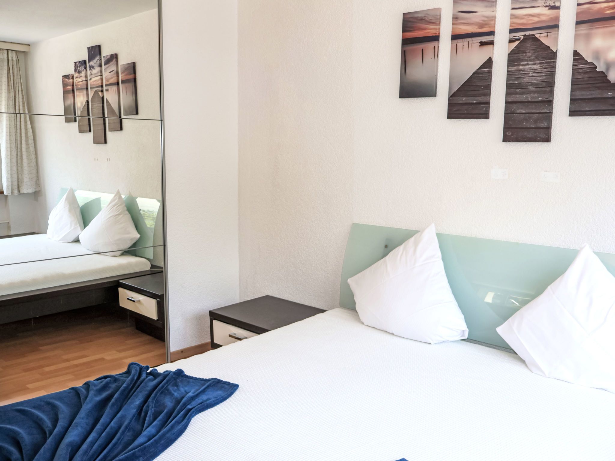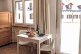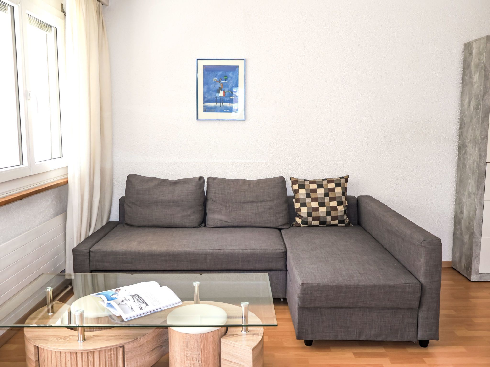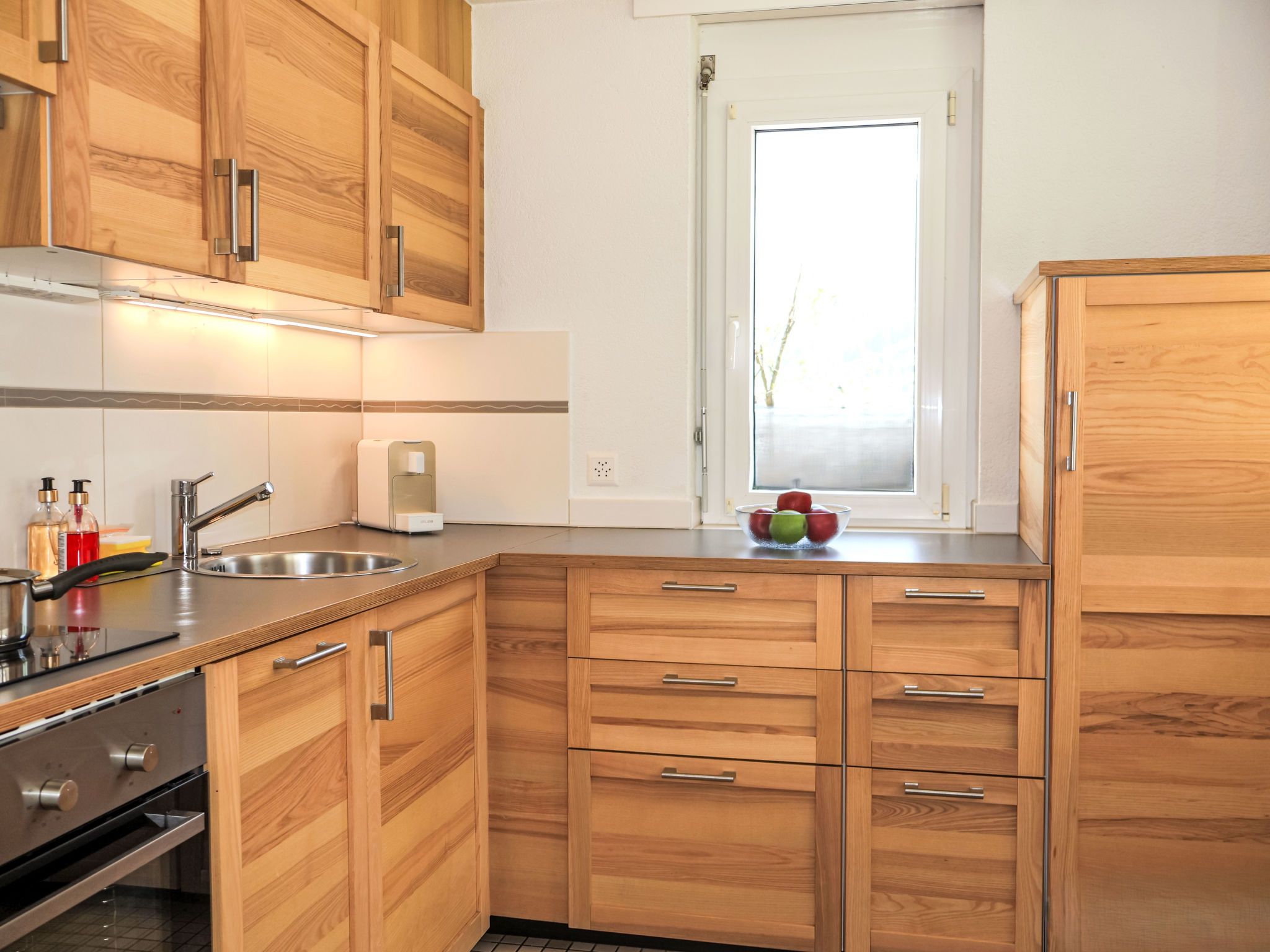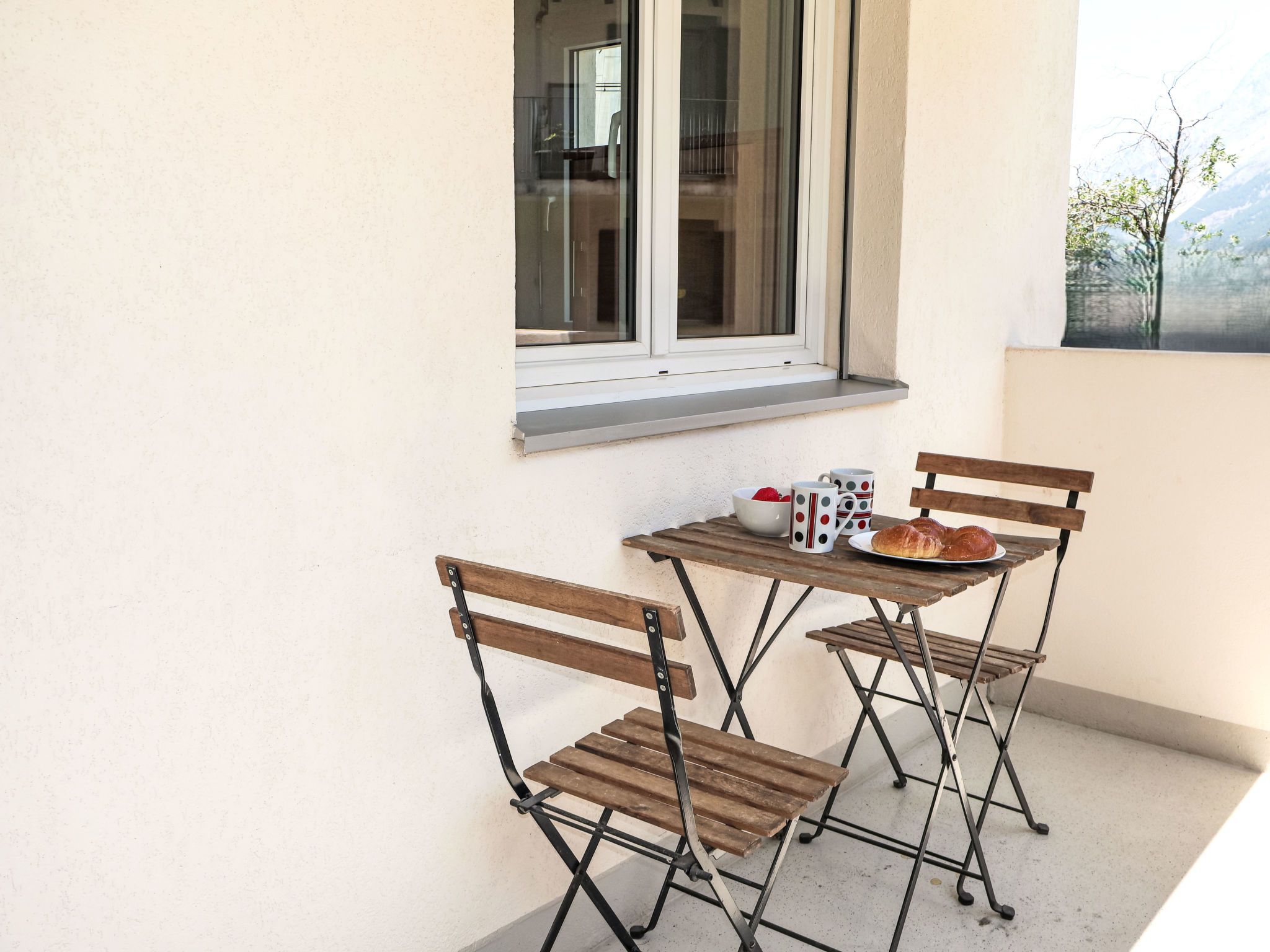 Rubin, 2-Zimmer-Wohnung 60 m2, unteres Geschoss. Hell, komfortabel und geschmackvoll eingerichtet: Wohn-/Esszimmer mit Digital-TV. Ausgang zum Balkon. 1 Doppelzimmer mit 1 Doppelbett (180 cm, Länge 200 cm). Grosse, offene Küche (Backofen, Geschirrspüler, 4 Glaskeramikplatten, Toaster, Wasserkocher, Tiefkühler, elektrische Kaffeemaschine) mit Esstisch. Dusche/WC. Grosser Balkon. Balkonmöbel. Seitliche Sicht auf die Berge. Zur Verfügung: Haartrockner. Internet (WLAN, gratis). Bitte beachten: Nichtraucher-Unterkunft.