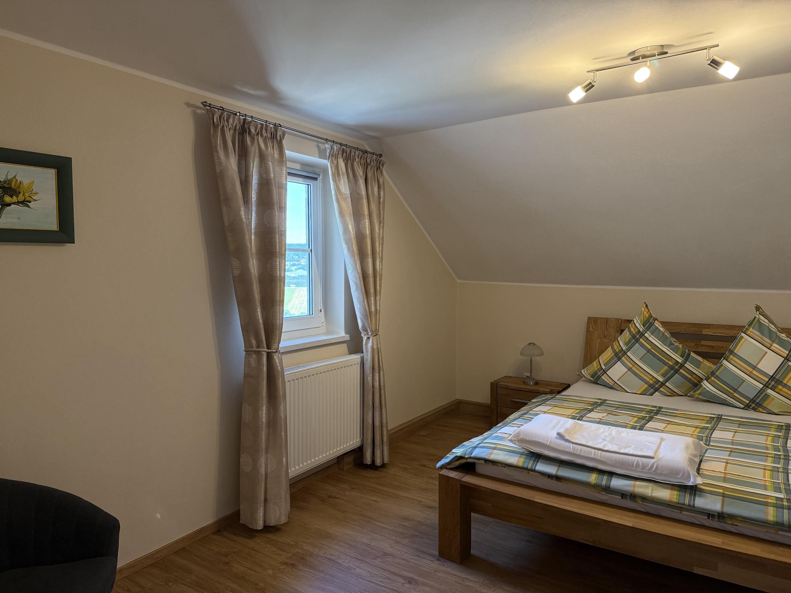Unsere liebevoll eingerichtete Dachgeschoss-Ferienwohnung bietet auf 51 Quadratmetern den perfekten Rückzugsort für Paare, kleine Familien oder Freunde. Der charmante Mix aus Komfort und Funktionalität sorgt für entspannte Urlaubstage in heimeliger Atmosphäre. Die Wohnung verfügt über ein separates Schlafzimmer mit einem bequemen Doppelbett für erholsamen Schlaf. Im großzügigen Wohn-/Schlafraum lädt ein gemütliches Schlafsofa zum Entspannen ein – ideal als zusätzliche Schlafgelegenheit für die dritte Person. Die voll ausgestattete Küche lässt keine Wünsche offen: Kühlschrank, Gefrierfach, Spülmaschine sowie ein praktischer Essplatz stehen Ihnen zur Verfügung – perfekt für gemeinsame Mahlzeiten. Das moderne Badezimmer ist mit Dusche, WC, Waschbecken und einem Fön ausgestattet.