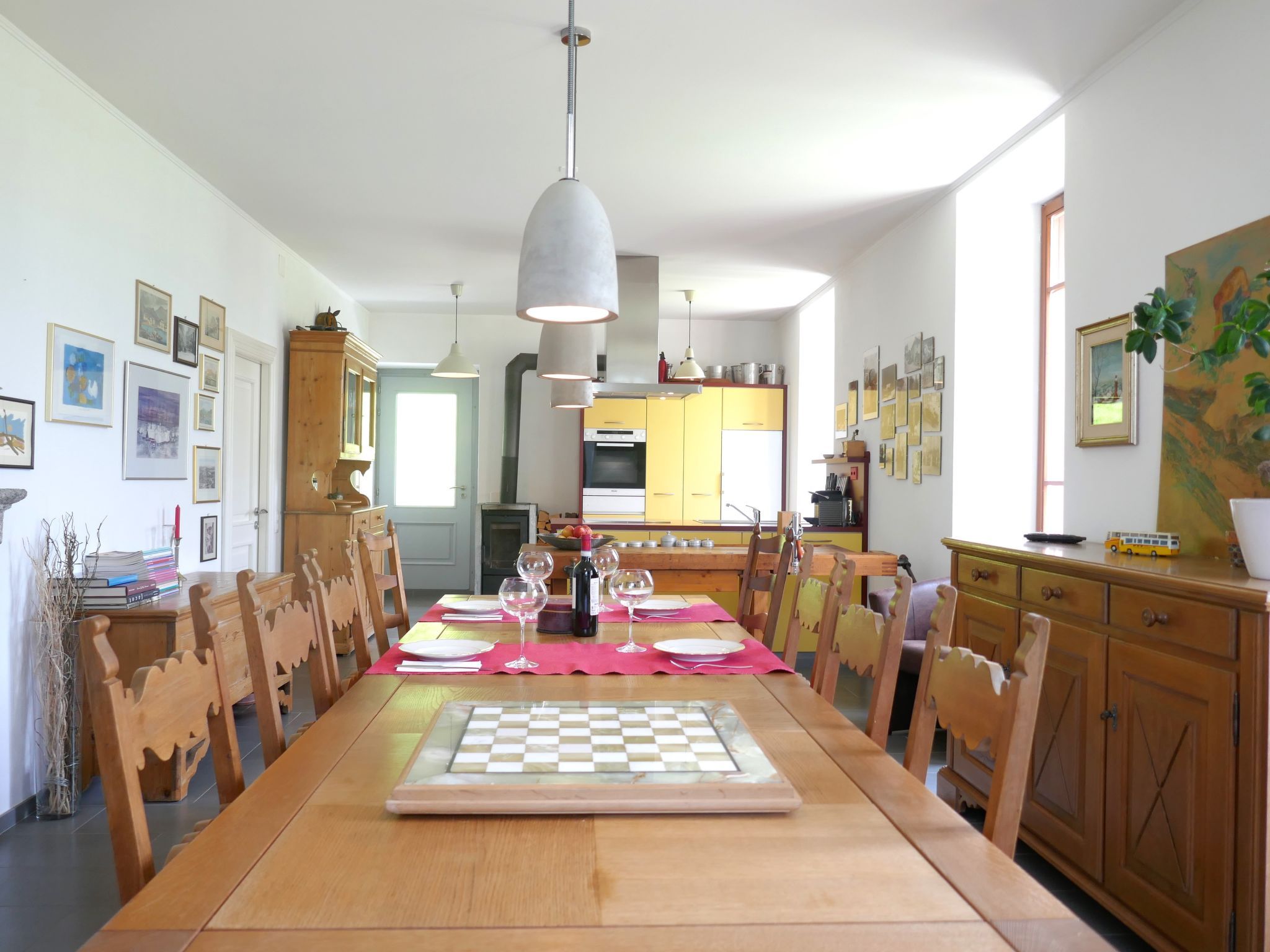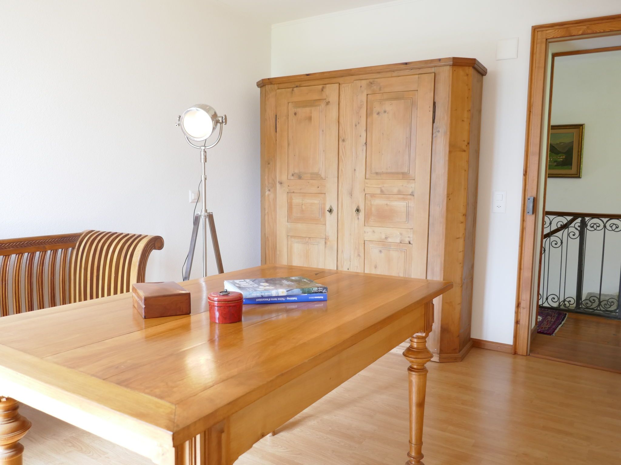 La Monda, 6-Zimmer-Haus 280 m2 auf 4 Stockwerken. Geräumig, teilweise abgeschrägt, geschmackvoll und gemütlich eingerichtet: offenes Esszimmer mit TV, Radio und Holzofen. Offene Küche (Backofen, Geschirrspüler, 4 Glaskeramikplatten, Toaster, Wasserkocher, Tiefkühler, elektrische Kaffeemaschine, Kapseln für die Kaffeemaschine (Nespresso) extra, Racletteofen, Fondue Set (Käse)) mit Holzofen. Sep. WC. Holzheizung. Obergeschoss: Wohnzimmer mit TV, Stereoanlage und Holzofen. Studio. Bad/WC. 2. Obergeschoss: 1 Doppelzimmer mit 1 Doppelbett (1 x 160 cm, Länge 200 cm), TV. Ausgang zum Balkon. Gepäckraum. Ausgang zum Balkon. Dusche/WC. 3. Obergeschoss: abgeschrägt, offen gross mit 1 Doppelbett (1 x 160 cm, Länge 200 cm). Holzdielenboden, Natursteinboden. Komfortable Einrichtung im Landhausstil. Grosser Balkon, kleiner Balkon, Gartensitzplatz, grosser Garten, Rasen. Balkonmöbel, Gartengrill (mobil), Liegestühle (2), Sitzplatz. Sehr schöne Sicht auf die Berge, das Tal, den Garten und die Ortschaft. Zur Verfügung: Waschmaschine, Bügeleisen, Kinderhochstuhl, Babybett bis 2 Jahre (extra), Haartrockner. Internet (WLAN). Bitte beachten: Nichtraucher-Haus. Maximal 1 Haustier/Hund erlaubt. NL-