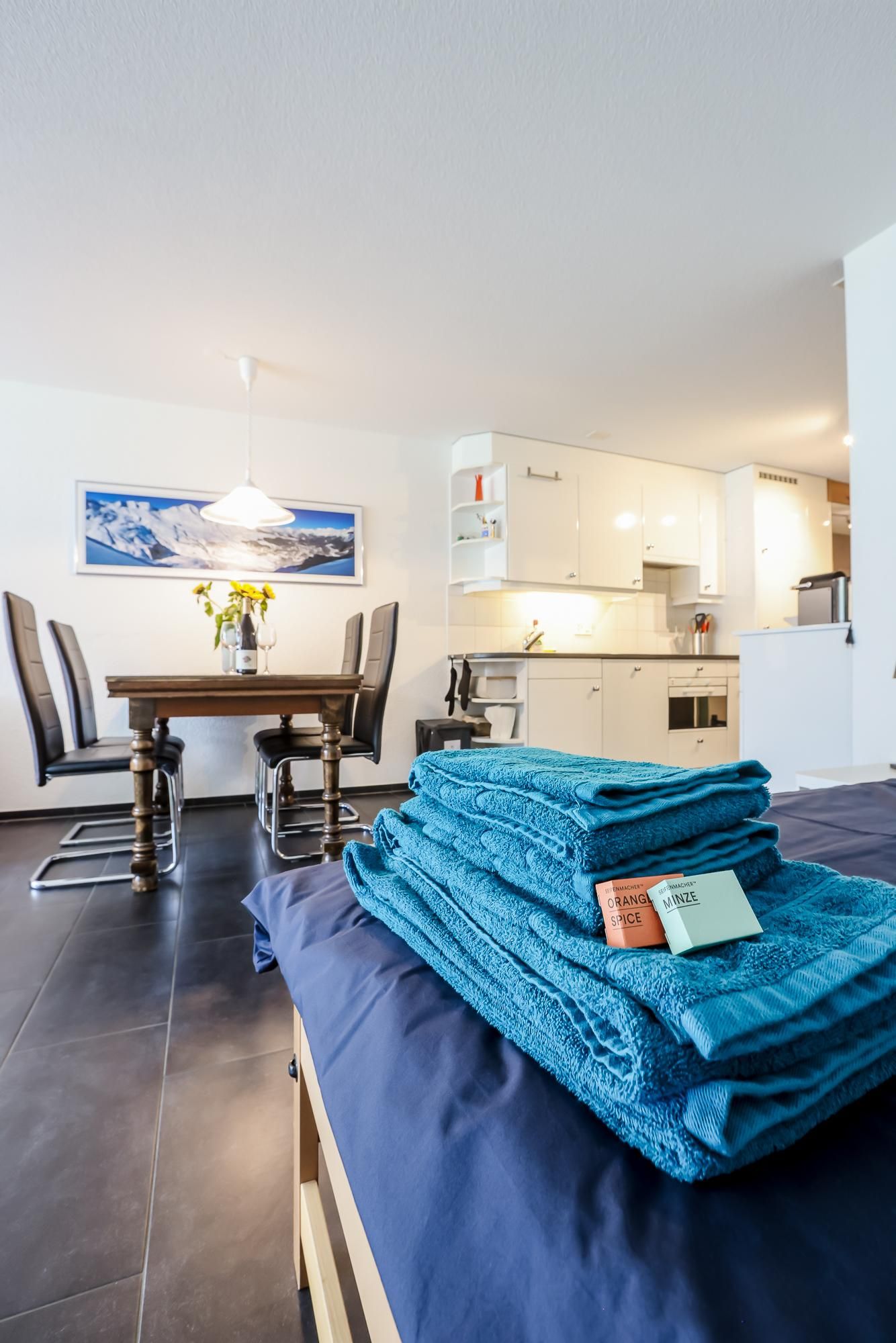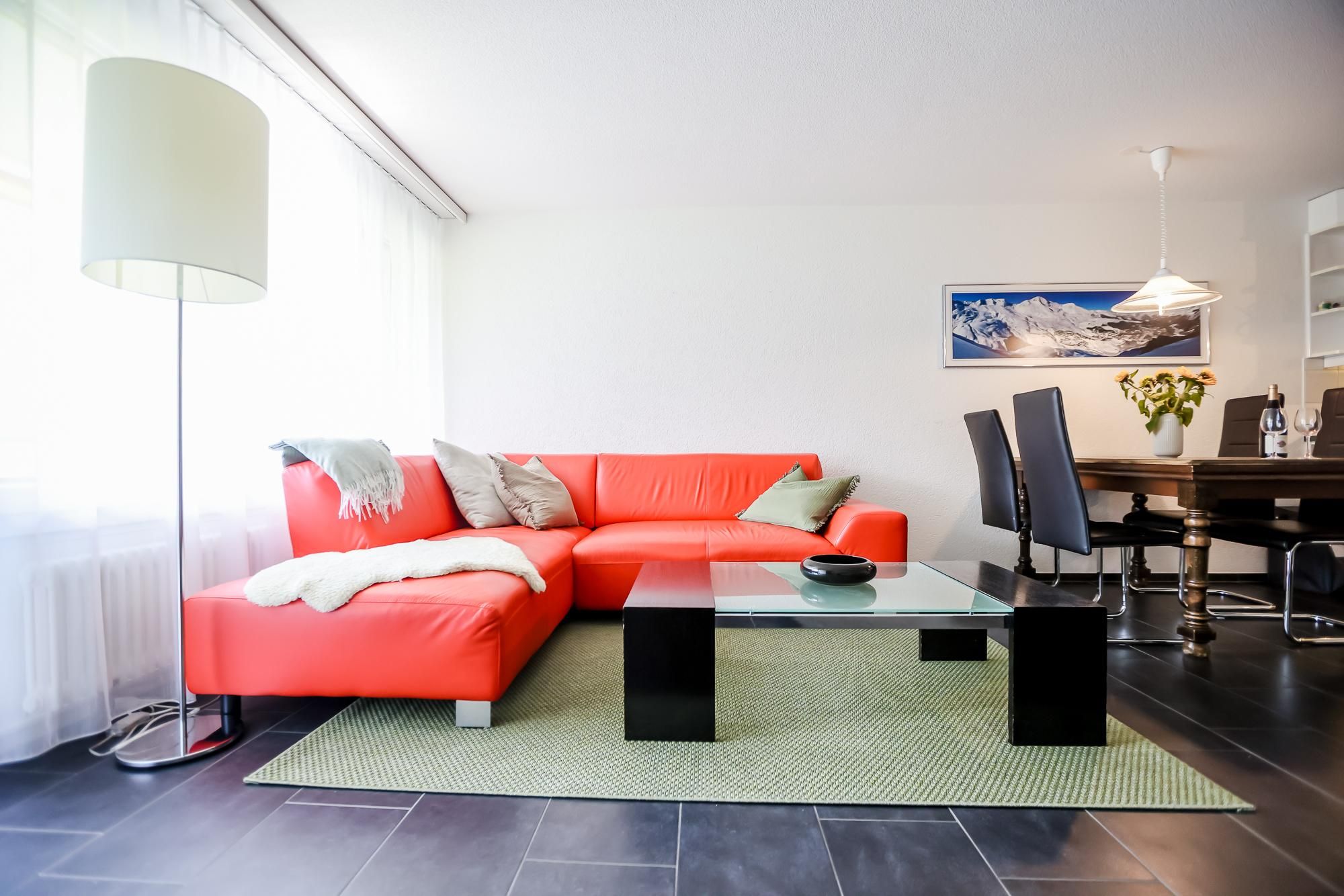 Apartment (54m2) mit voll ausgestatteter Küche inklusive Kaffeemaschine und Geschirrspüler. WLAN, Flachbild-TV. Im Gebäude besteht die Möglichkeit, Waschmaschine und Trockner gegen eine zusätzliche Gebühr zu nutzen. Hallenbad, Wellness, Skibus (WICHTIG: Nur im Winter, während der Arosa alpine Club geöffnet hat); im Sommer vier Gästekarten zur kostenlosen Benützung der Bergbahnen, Seilpark, Freibad und vergünstigter Eintritt ins Arosa Bärenland.