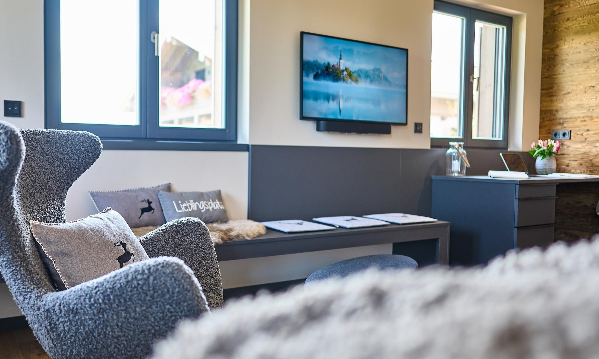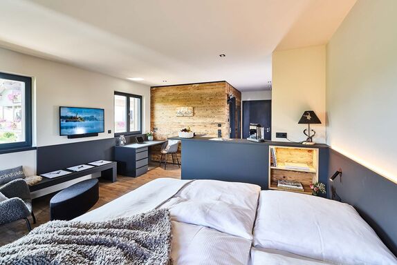 Unsere Apartments sind bestens ausgestattet: mit Flachbild-TV, Sonos, Schreibtisch (außer Apartments Hofidyll und Auszeit), Boxspringbetten, vollausgestatteter Küche, Kuscheldecken (auch für nette Stunden im Garten) sowie einem Safe. Alles komplett. Für Deinen komplett gelungenen Urlaub.