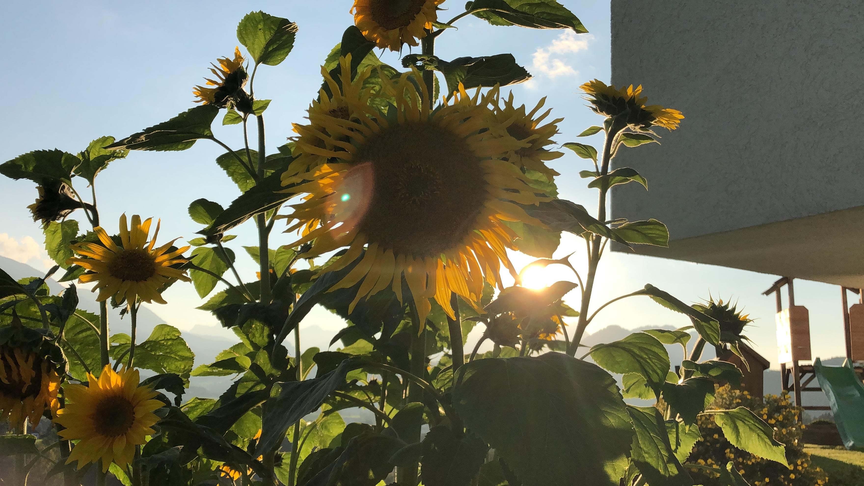 Vor der Eingangstür befindet sich die traumhafte Panorama-Sonnenterrasse mit Gartenmöbeln (Liegen, Sonnenschirm) und lädt zum Verweilen & Träumen ein!