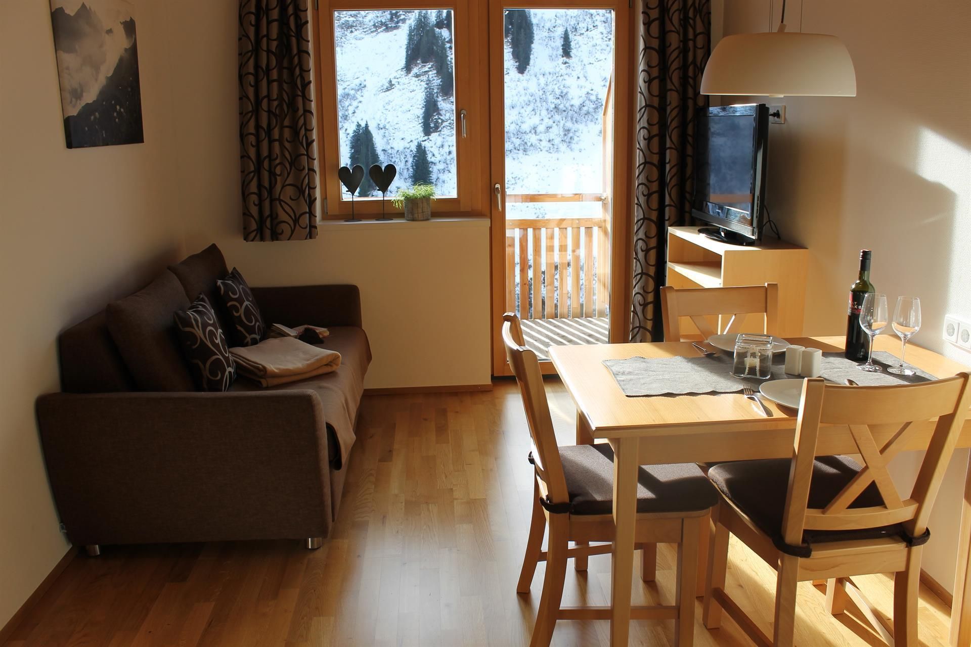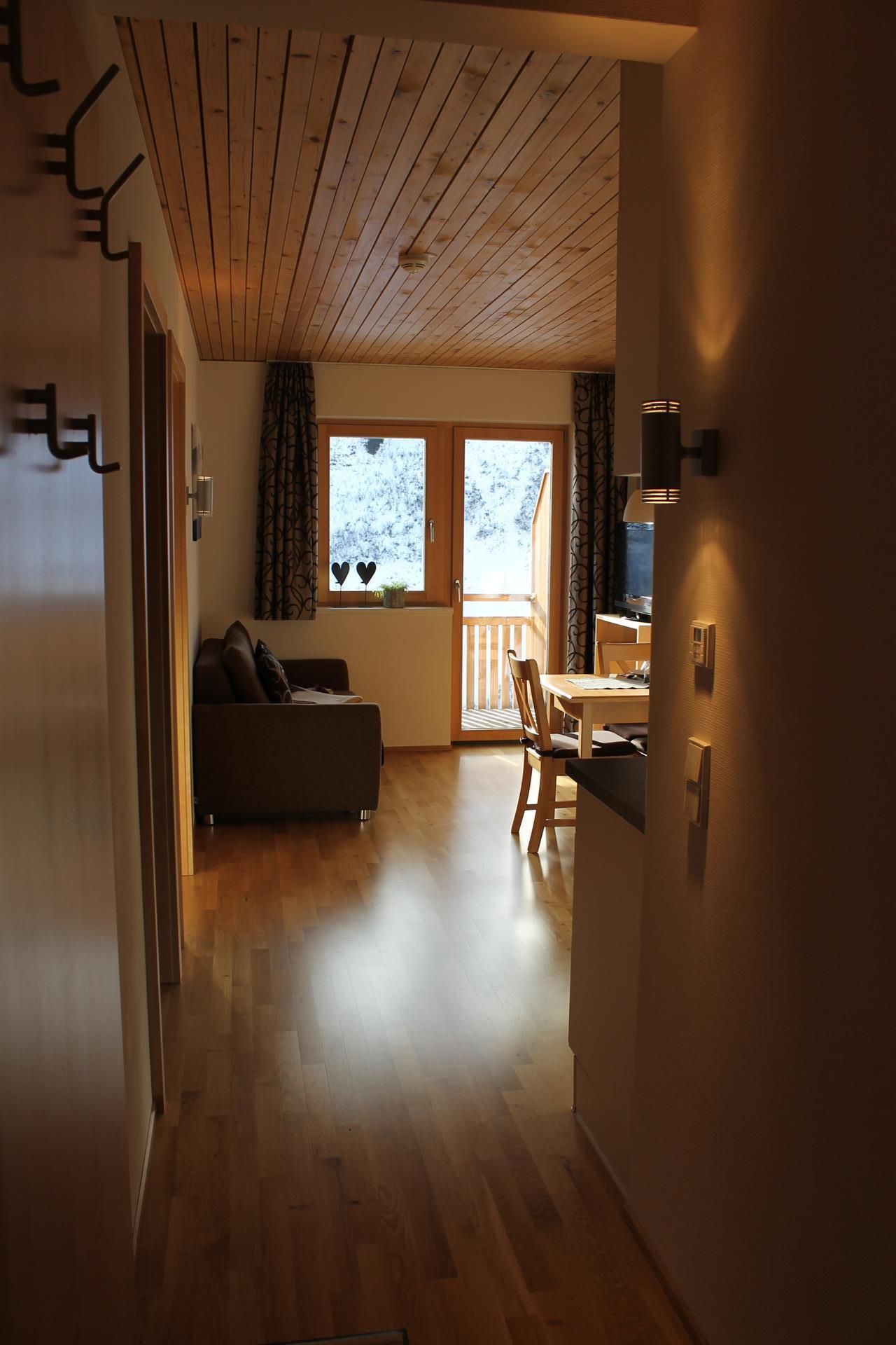 Unser Appartement berg.welt lädt zu behaglichem Wohnen und Entspannung vom Alltag ein. Heimische Tischlerarbeit aus Birkenholz, ein Eichenparkettboden und warme Farben bestimmen die Atmosphäre des Appartements und machen die berg.welt zu Ihrem Urlaubszuhause. Die Wohnung befindet sich auf der zweiten Etage und bietet Platz für 1 - 4 Personen. Sie verfügt über 1 Schlafzimmer mit Doppelbetten, einen gemütlichen Wohn-Essbereich mit ausziehbarer Schlafcouch, eine voll ausgestattete Küche mit Spülmaschine, Tiefkühlschrank, Mikrowelle, Backrohr, Kaffeemaschine, Wasserkocher etc., Badezimmer mit Dusche/WC, Safe und einen sonnigen Südbalkon. Wohlfühlen garantiert, lautet die Devise in Ihrer berg.welt. Schließen Sie die Tür, lassen Sie den Alltag draußen und genießen Sie!