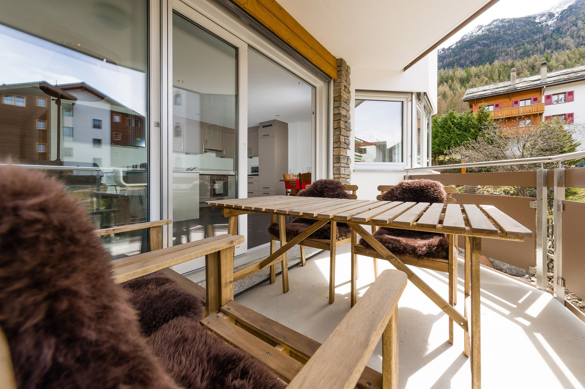 Neue 3,5 Zimmerwohnung (100 m2) im autofreien Teil, 150m zur Talstation. Die Wohnung liegt im 2. Stock und ist mit Lift erreichbar. Sie verfügt über 2 Schlafzimmer mit je 1 Bad/WC und DU/WC, sowie 2 sonnige Balkone. Modern und komfortabel eingerichtet (Cheminée, Skiraum, Wellness im Haus, Waschmaschine). Nichtraucher-Wohnung.