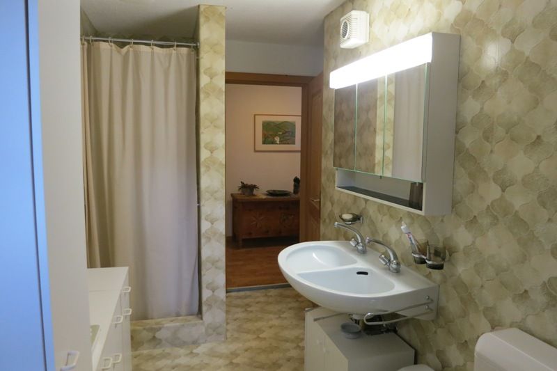 Das Badezimmer beinhaltet nebst dem WC und Lavabo eine Badewanne sowie eine separate Dusche. Frotteewäsche bitte selber mitbringen.