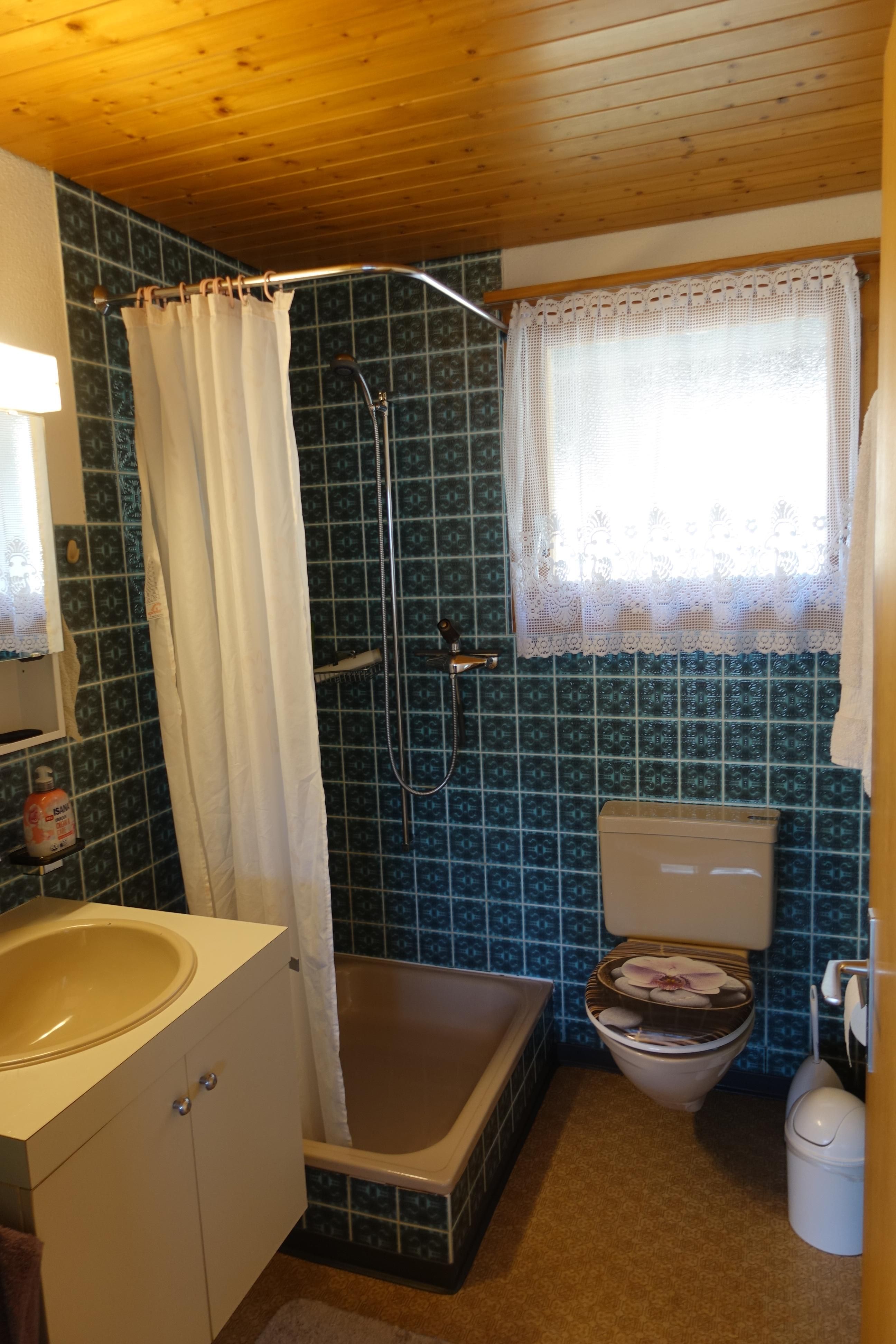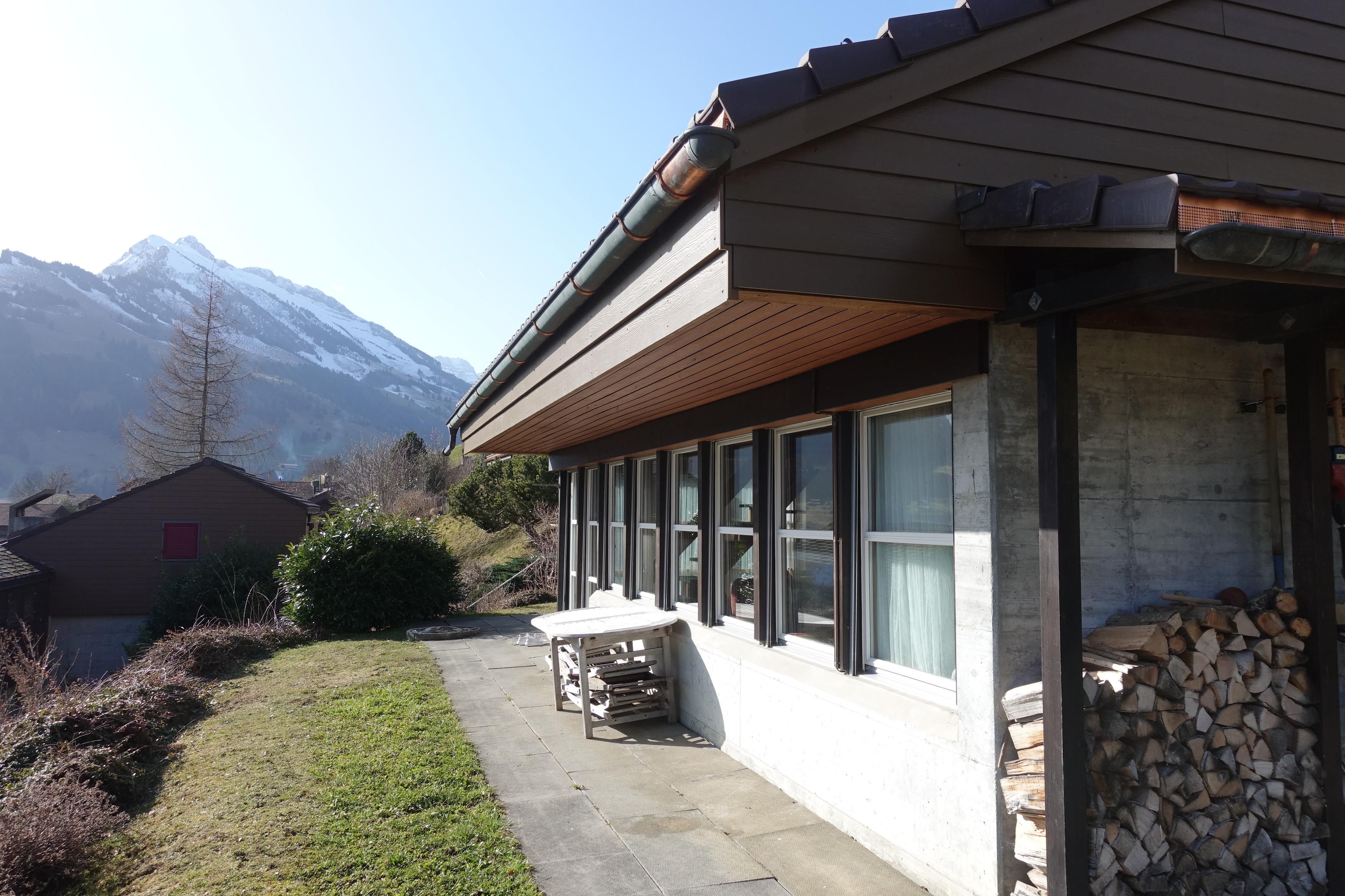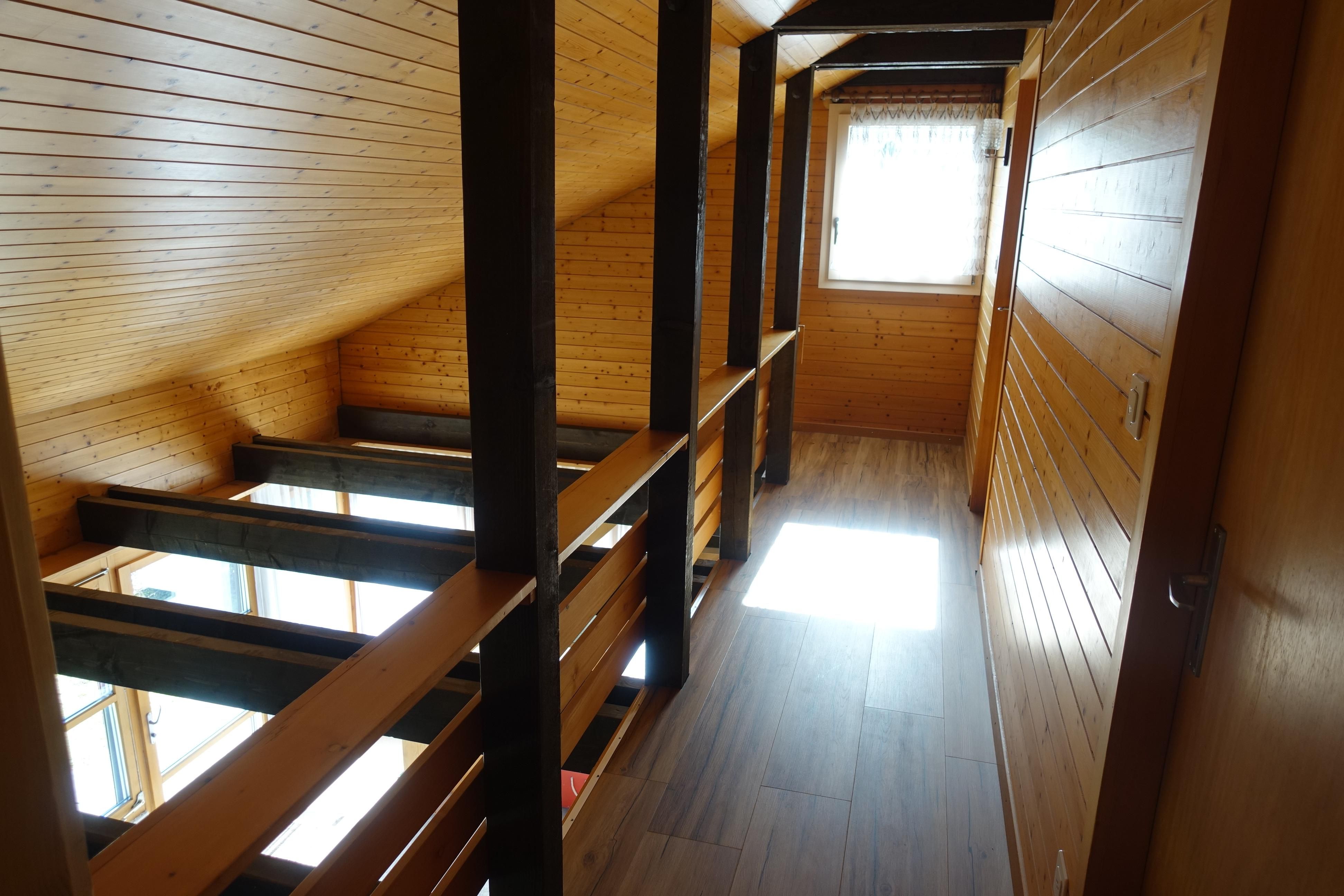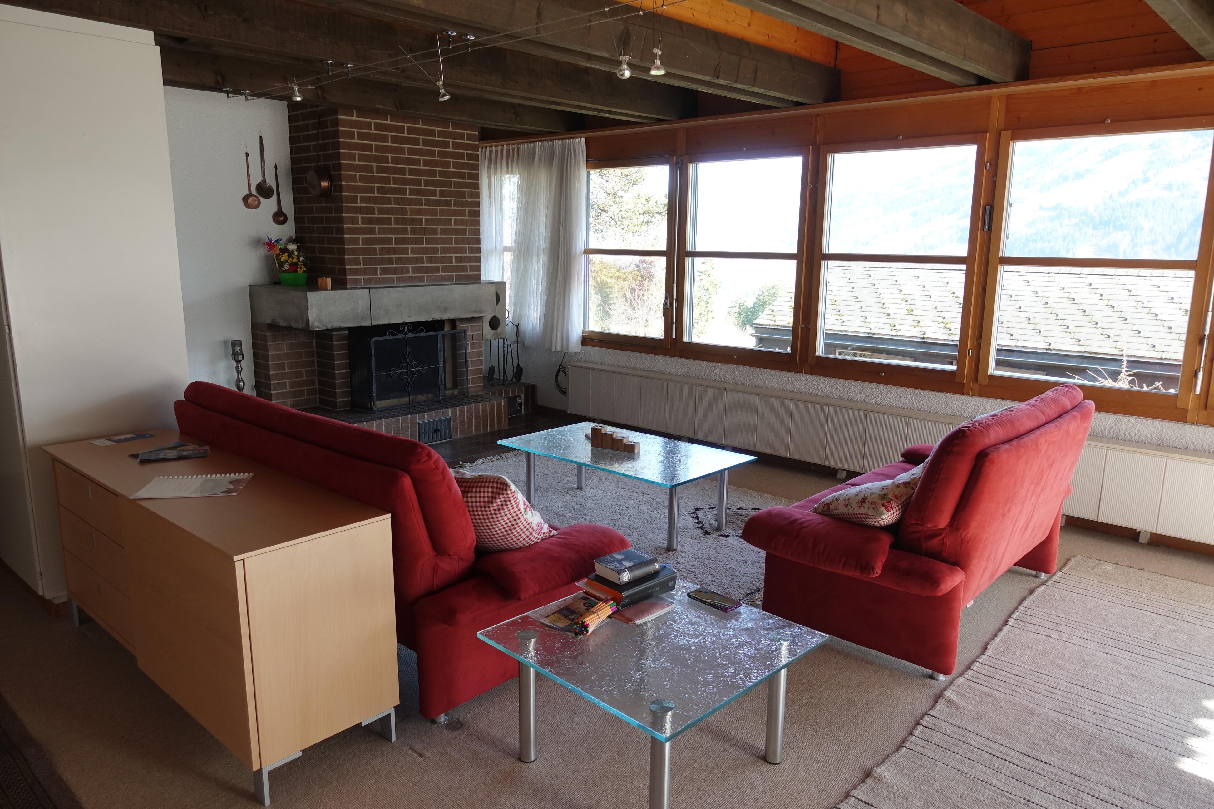 Das Haus, zu dem auch ein gemeinschaftlicher Pool gehört, hat durch die große Glasfensterfront im Wohnzimmer einen fantastischen Blick auf die Bergwelt und besteht aus einem großzügigen Wohn- und Essraum mit Küchenzeile, aus drei Schlafzimmern, davon das erste mit einem Doppelbett mit Blick auf die Berge, eines mit einem Stockbett und das dritte besteht aus einem Französischen Bett und einem Einzelbett (ein Zustellbett ist möglich). Außerdem verfügt das Haus über einen Wasch- und Abstellraum und einem Bad (Dusche, Toilette, Waschbecken). Zum Haus gehört, in Richtung Südost, eine großzügige Terrasse und eine schöne Liegewiese. Nicht nur vom Wohnraum aus, sondern auch von der Terrasse/Liegewiese, haben Sie einen fantastischen Ausblick auf die Berner Bergwelt. Unser Haus ist ein Nichtraucherhaus und auch auf dem gesamten Grundstück darf nicht geraucht werden. Zum Haus selber kommen sie über 100 Treppenstufen, da es ganz oben auf Lohmatte liegt. Sie werden mit traumhaftem Blick und Ruhe belohnt.