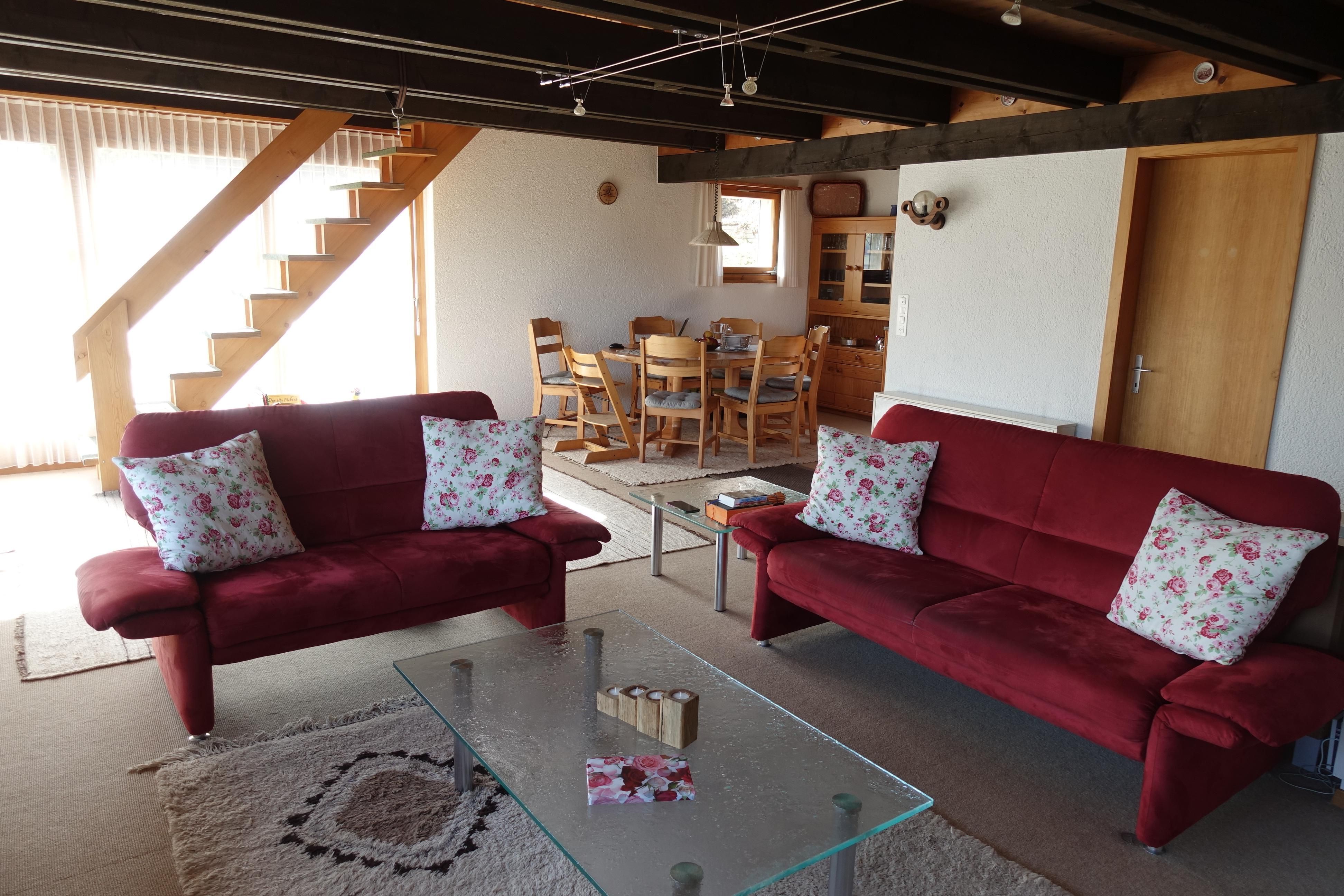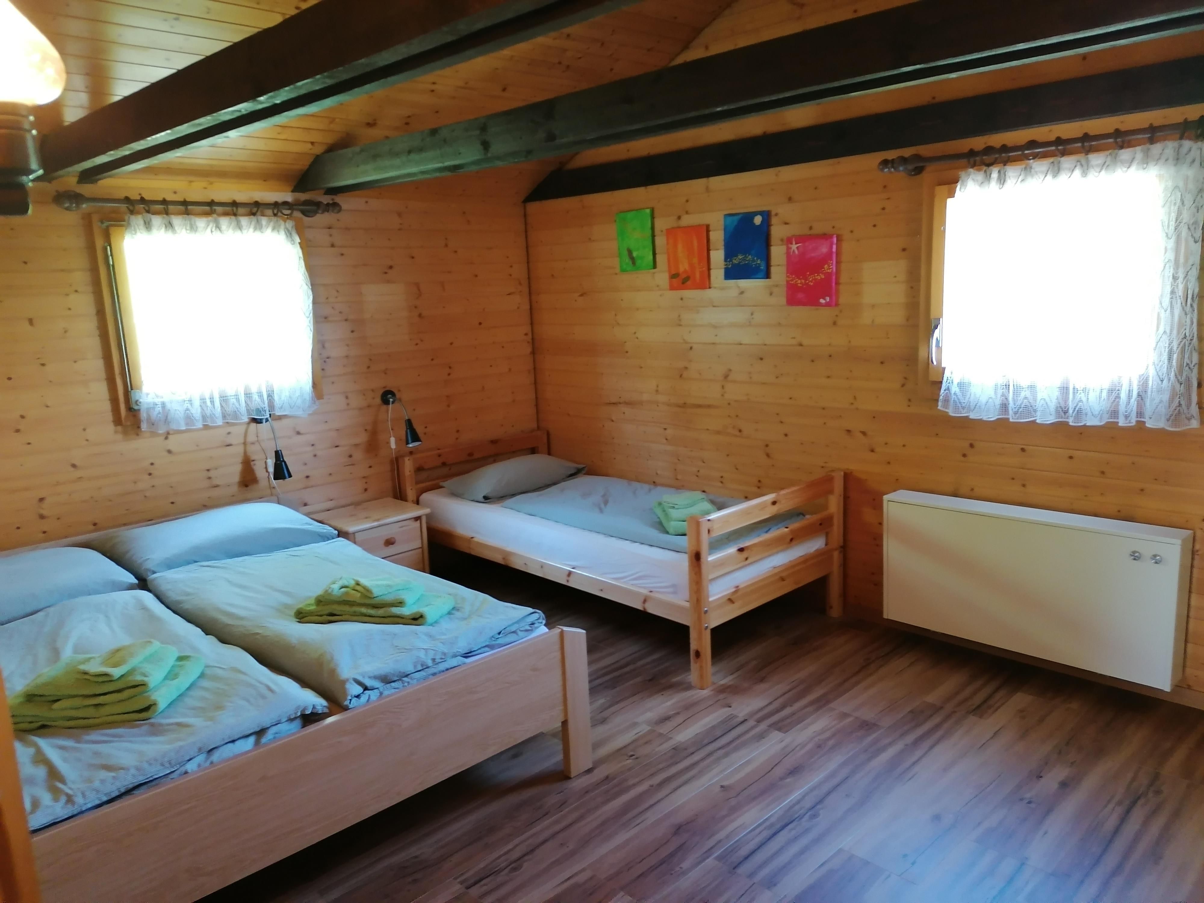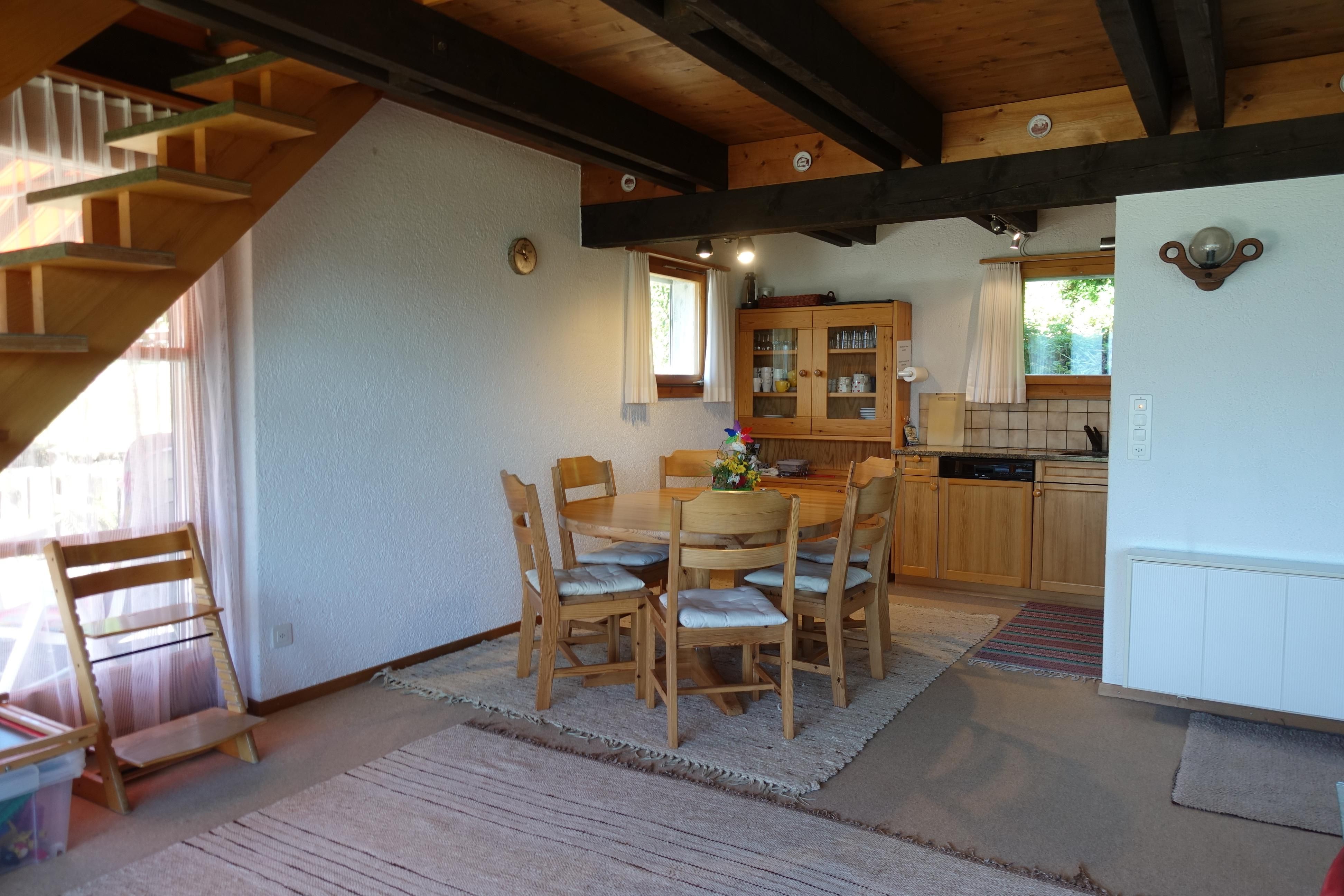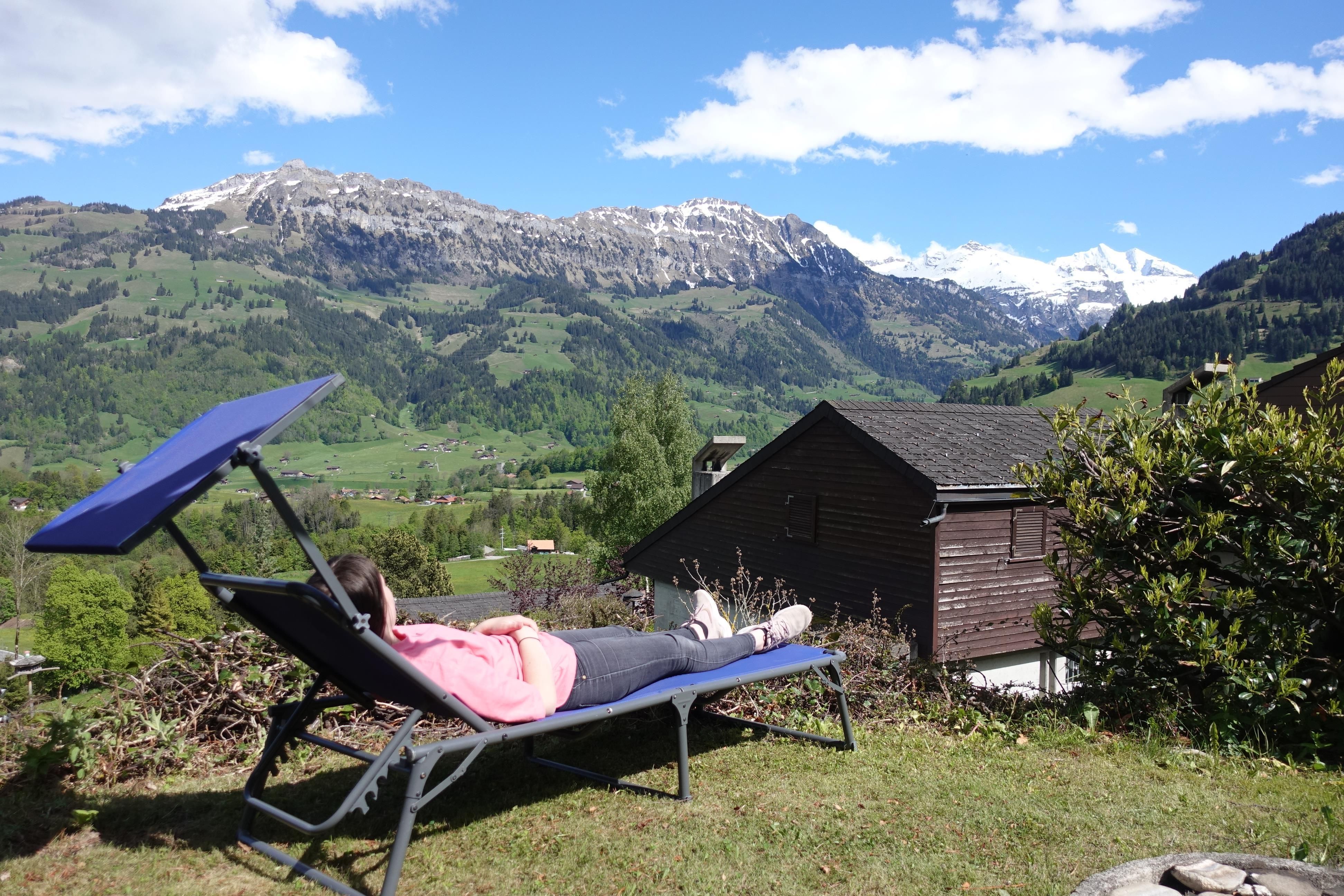 Das Haus, zu dem auch ein gemeinschaftlicher Pool gehört, hat durch die große Glasfensterfront im Wohnzimmer einen fantastischen Blick auf die Bergwelt und besteht aus einem großzügigen Wohn- und Essraum mit Küchenzeile, aus drei Schlafzimmern, davon das erste mit einem Doppelbett mit Blick auf die Berge, eines mit einem Stockbett und das dritte besteht aus einem Französischen Bett und einem Einzelbett (ein Zustellbett ist möglich). Außerdem verfügt das Haus über einen Wasch- und Abstellraum und einem Bad (Dusche, Toilette, Waschbecken). Zum Haus gehört, in Richtung Südost, eine großzügige Terrasse und eine schöne Liegewiese. Nicht nur vom Wohnraum aus, sondern auch von der Terrasse/Liegewiese, haben Sie einen fantastischen Ausblick auf die Berner Bergwelt. Unser Haus ist ein Nichtraucherhaus und auch auf dem gesamten Grundstück darf nicht geraucht werden. Zum Haus selber kommen sie über 100 Treppenstufen, da es ganz oben auf Lohmatte liegt. Sie werden mit traumhaftem Blick und Ruhe belohnt.