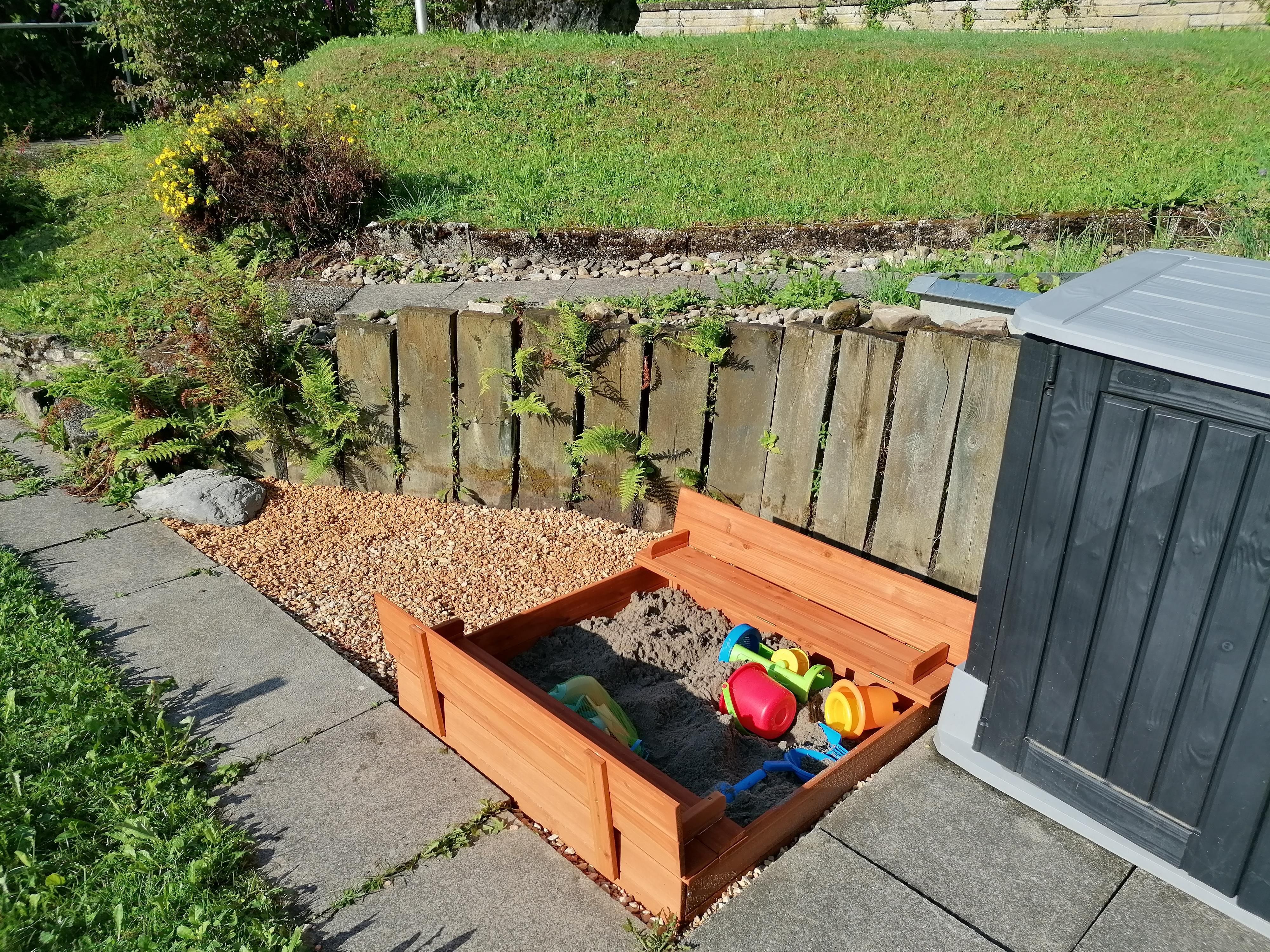 Familienfreundlich, Gitterbett / Babybett, Kinderausstattung, Kinderfreundlich, Kinderhochstuhl, Sandkasten, Spiele für drinnen