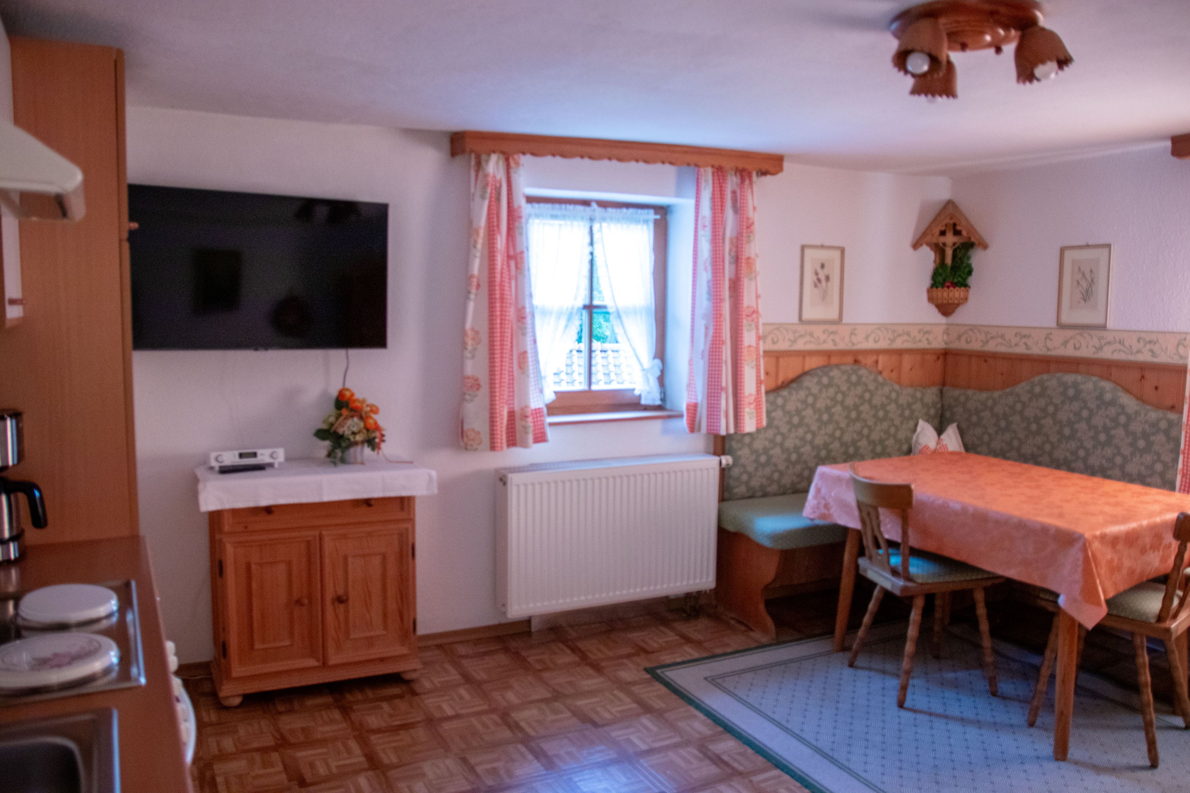 Schön das Sie sich für unsere Ferienwohnung interessieren. Das alte Denkmalgeschützte Haus hat einige besonderheiten,Orginale Holzdecken, Deckengewölbe und einen Überdachten Balkon auf dem Sie auch bei Regentagen die Seele baumeln lassen kör Balkon ist mit Eckbank und Sofa ausgestattet ,wie ein zweites Wohnzimmer im freien, und bietet einen freien Bergblick.Auch in einen alten Bauernhaus brauchen Sie auf Konfort nicht verzichten.