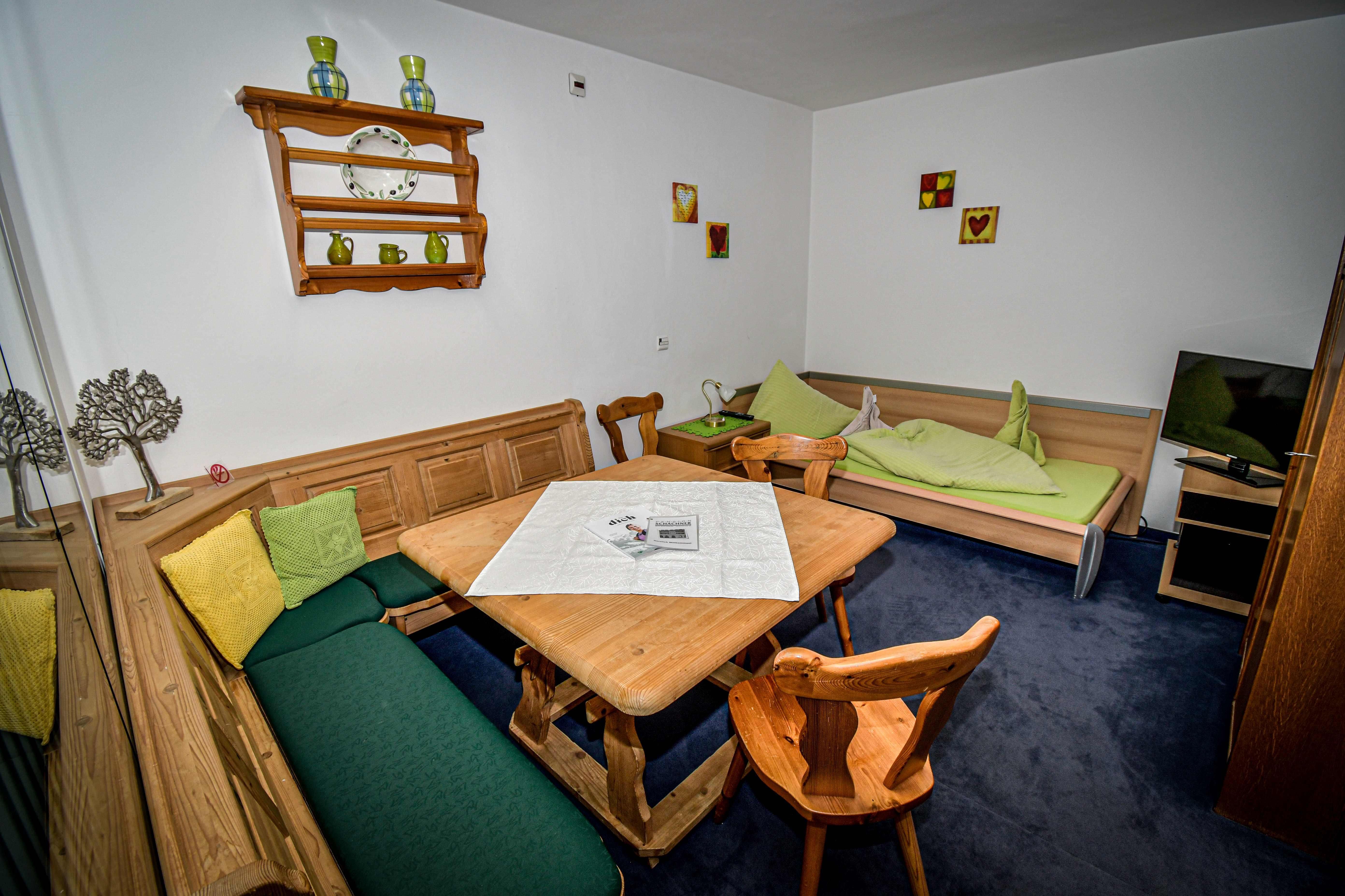 In unserer Pension erwarten Sie freundlich und farbenfroh eingerichtete Einzel-, Doppel- und Dreibettzimmer sowie komfortable Appartements. Von den Zimmern aus genießen Sie einen herrlichen Ausblick – entweder auf das idyllische Rohrmoos oder den lebhaften Hauptplatz von Schladming. Morgens stärken Sie sich an unserem reichhaltigen und liebevoll zubereiteten Frühstücksbuffet, das Ihnen einen energiereichen Start in den Tag ermöglicht.