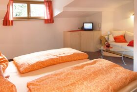 im 2. Stock mit niedrigen Mansarden und Dachfenster | Doppelbett | Flachbild TV | Safe | kostenlose W-Lan Verbindung | Sitzecke zum gemütlichen Lesen | kleines Badezimmer mit Dusche und WC | Haarfön | Wellnesstasche mit flauschigen Bademänteln | ohne Balkon | nicht renoviert