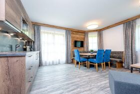 3-Raum Appartement mit Balkon oder Terrasse | im Erdgeschoss oder 1. Stock | 2 getrennte Schlafzimmer mit bequemen Doppelbetten | Wohn- und Schlafraum mit Essbereich und komfortabler Ausziehcouch für 2 Personen | Küchenzeile ausgestattet mit Ceranfeld, Mikrowelle, Kühlschrank, Kaffeemaschine, Wasserkocher und Geschirrspüler | Flachbild TV | Safe | kostenlose W-Lan Verbindung | Badezimmer mit Dusche | separates WC | Handtücher und Bettwäsche | Wellnesstasche mit flauschigen Bademänteln