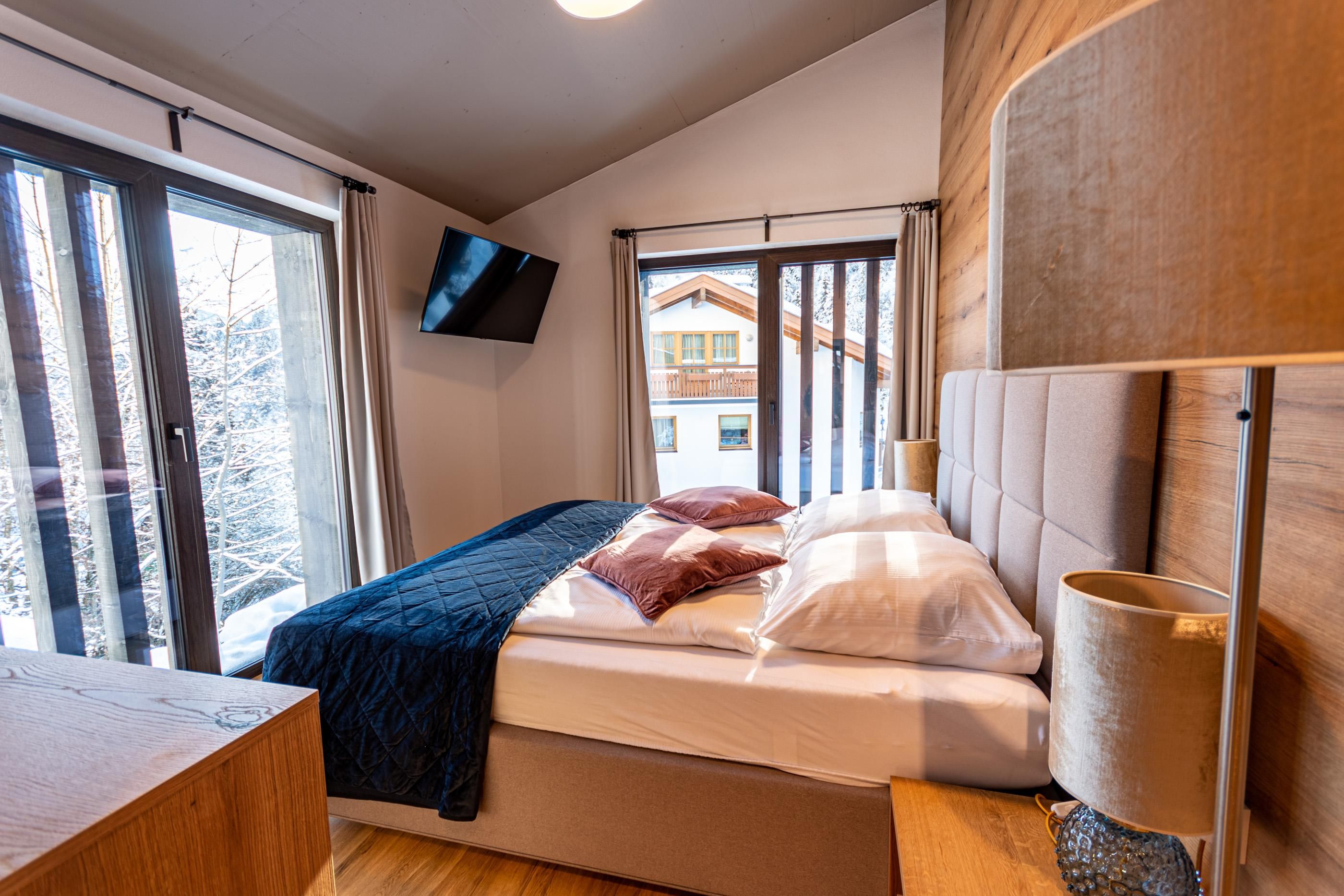• Modern und edel ausgestattete Wohn- und Schlafräume : Jedes Chalet hat 4 Zimmer mit Doppelbett