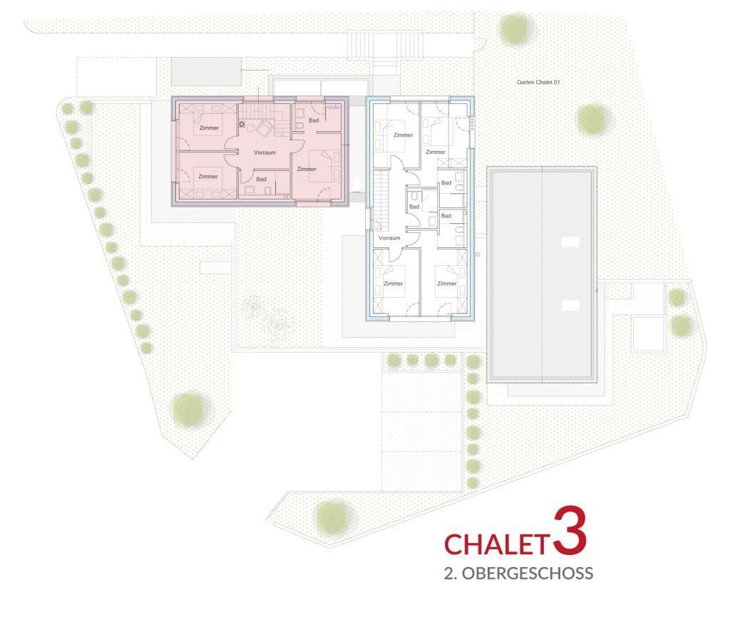 • Chalet 3 für Person 9, 10, 11 und 12 ein Stockbett in 2 von den Schlafzimmern