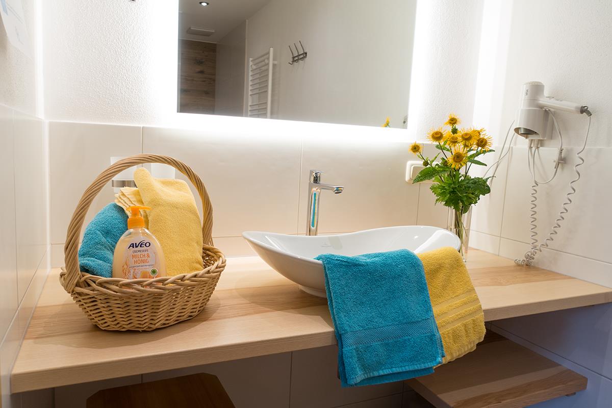 modernes Bad, sowie Balkon von 2 Seiten mit wunderbarem Bergpanorama.
