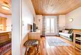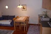 Komfortabel eingerichtetes Appartement mit vollwertiger Wohnküche, separatem Schlafzimmer für zwei Personen, mit Blick auf die umliegenden Berge. Bei Bedarf kann ein Zwei-Bettzimmer für Kinder zugemietet werden.