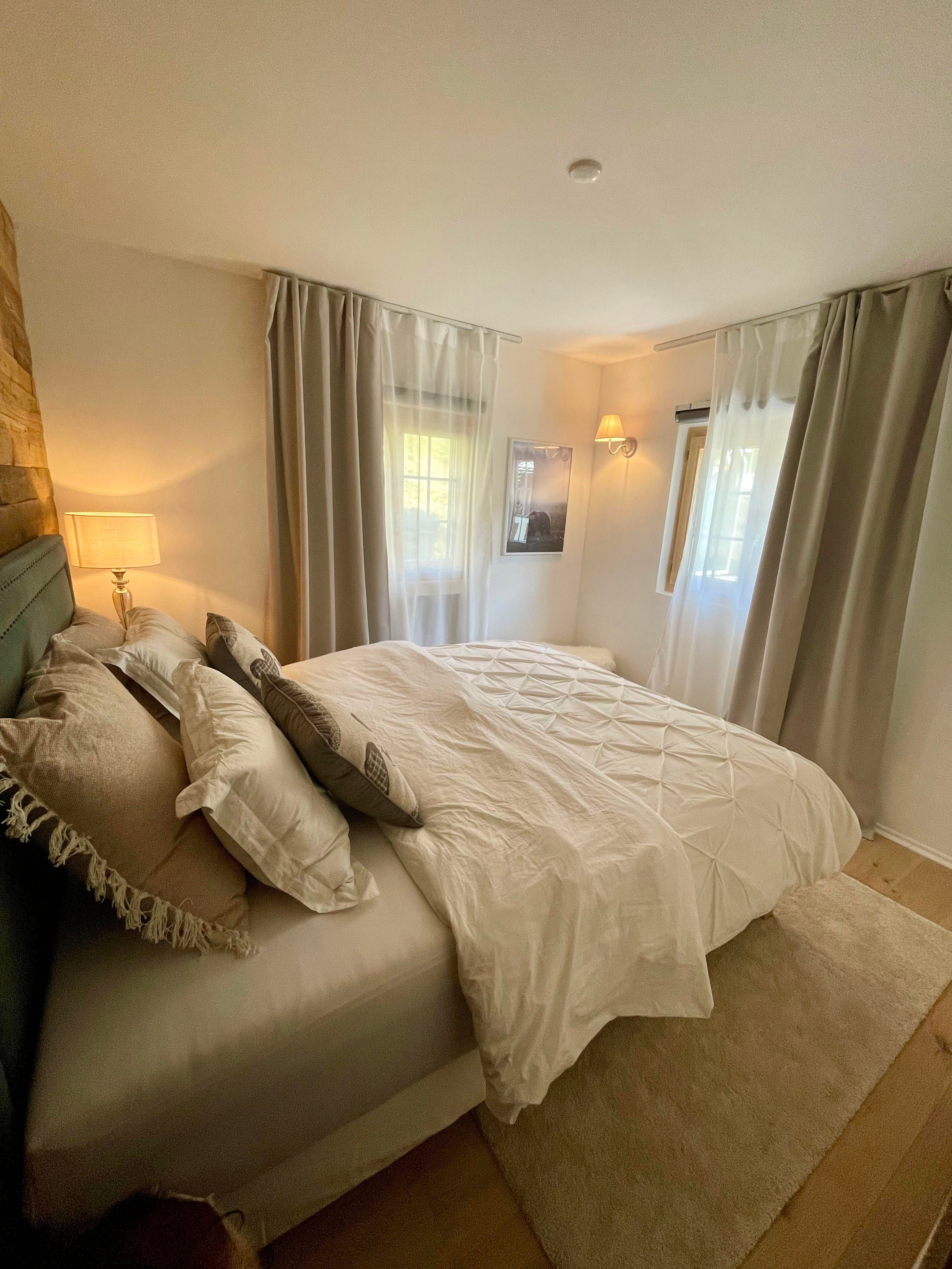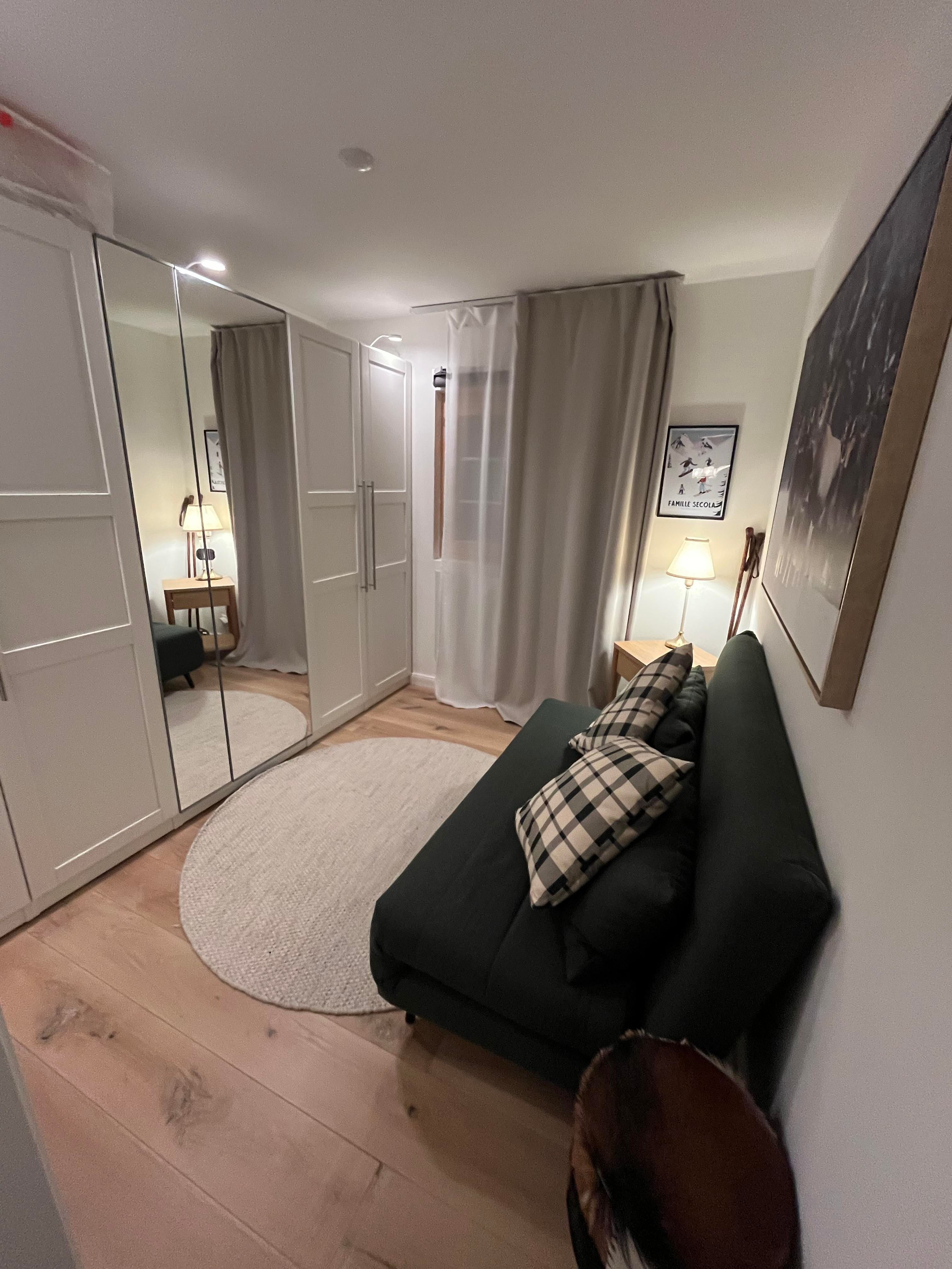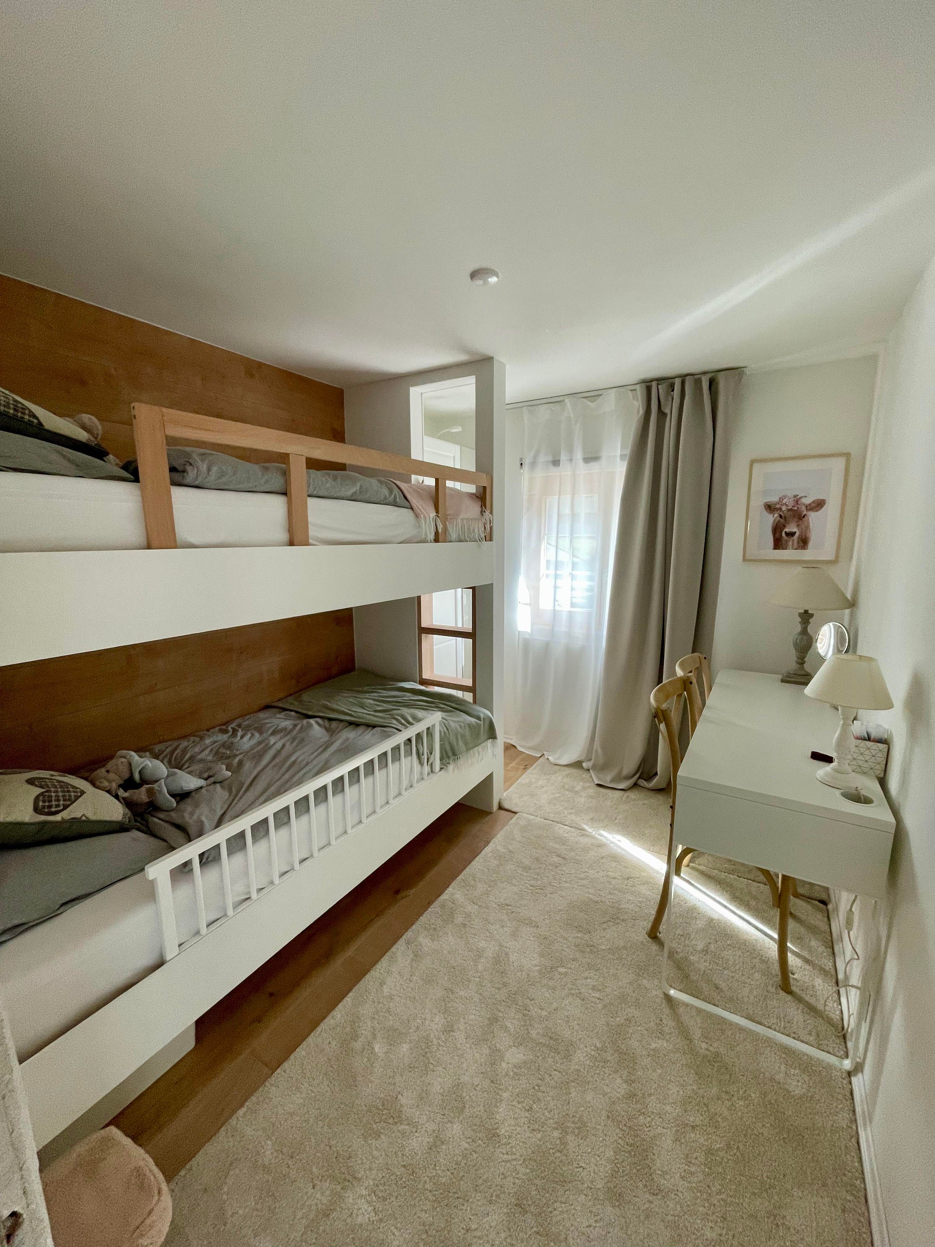 4-Zimmerwohnung (70m2) in Einzelchalet: Wohn-/Esszimmer mit Schwedenofen, gratis WiFi, Radio, TV, Spielekonsole, offene Küche mit Geschirrspüler, Mirkrowelle, Kaffeemaschine, u.v.m., 1 Schlafzimmer mit Doppelbett, 1 Schlafzimmer mit Etagenbett plus Unterstellbett, 1 Schlafzimmer mit Schlafsofa, Dusche/WC mit beheizbarem Handtuchhalter, Grosser Südbalkon mit Bergblick. 2 Aussenparkplätze vorhanden. Nichtraucherwohnung. Haustiere nicht erlaubt.