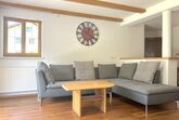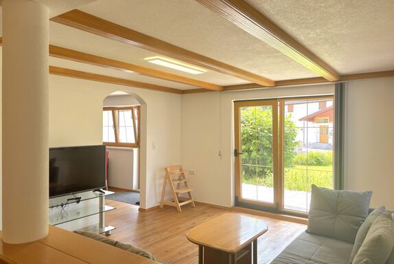Panoramablick, 4-Zimmer-Wohnung 125 m2, im Erdgeschoss. Geschmackvoll und gemütlich eingerichtet: Eingang mit Esstisch. Wohnzimmer mit Sat-TV (Flachbildschirm). 2 Doppelzimmer. Wohn-/Schlafzimmer mit 1 x 1 Etagenbetten (90 cm, Länge 200 cm). Grosse Küche (Backofen, Geschirrspüler, 4 Induktionskochplatten, Toaster, Wasserkocher, Mikrowelle, Tiefkühler, elektrische Kaffeemaschine). Bad/WC. Ölheizung. Terrasse. Terrassenmöbel. Schöne Panoramasicht auf die Berge und den Wald. Zur Verfügung: Internet (WLAN, gratis). Bitte beachten: Nichtraucher-Unterkunft. Maximal 1 Haustier/Hund erlaubt. Rauchmelder.
